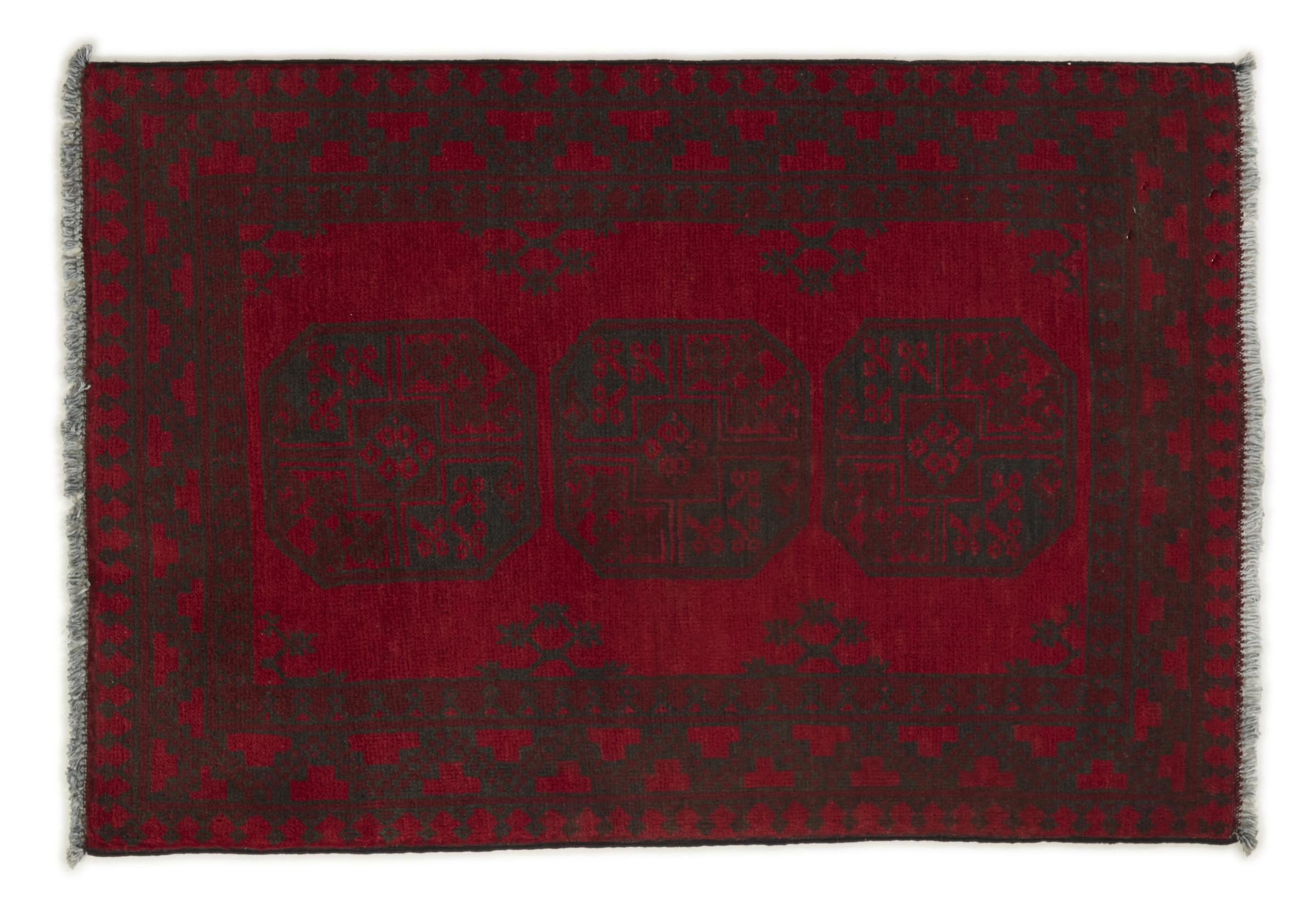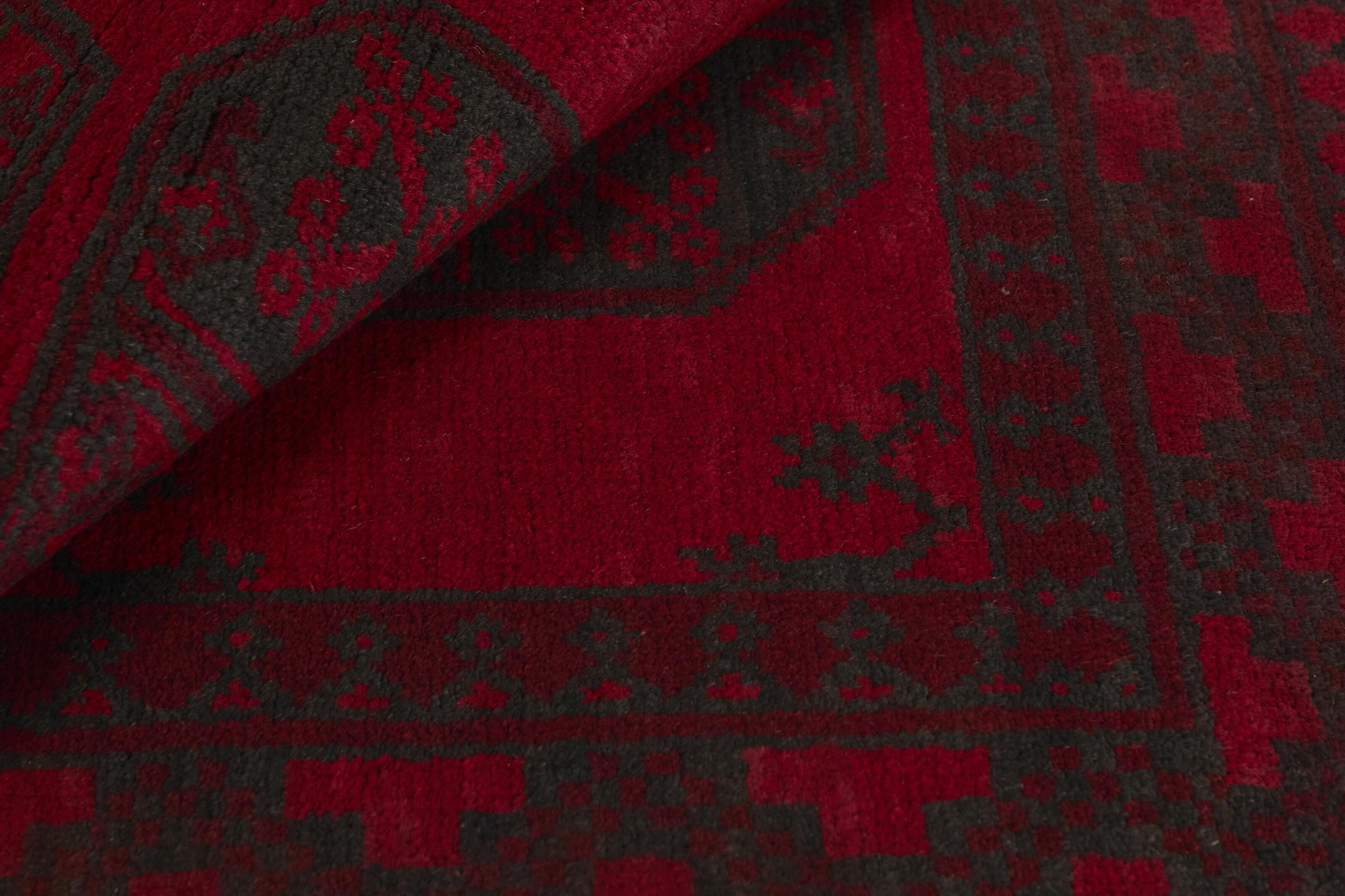 Dette afghansk-Akhche-tæppe ligger foran dig som en rød drøm. Det ser bedst ud i enkle rum. Dens kvalitet imponerer enhver elsker af orientalske tæpper. Håndknyttet fra Afghanistan.