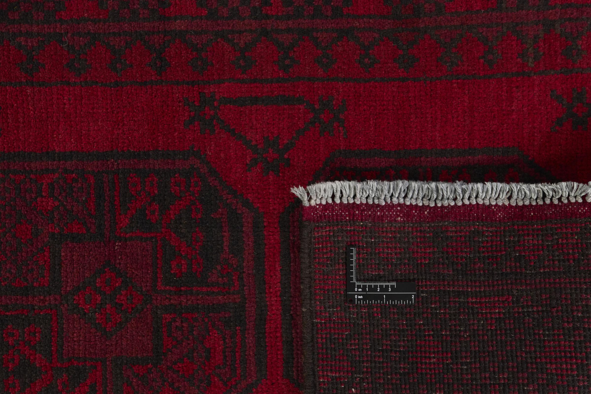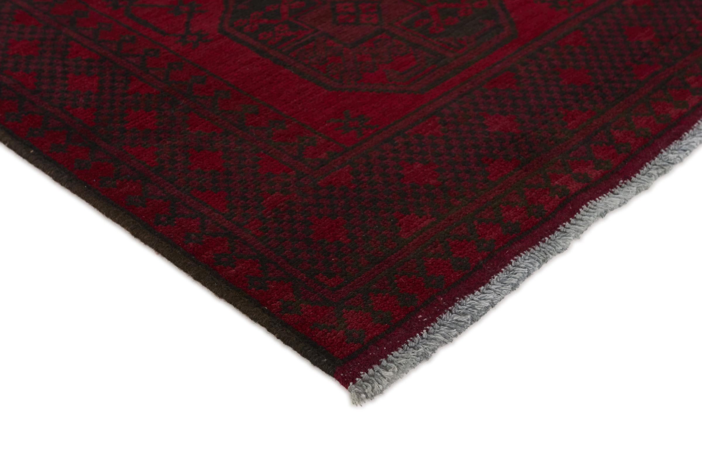 Dette afghansk-Akhche-tæppe ligger foran dig som en rød drøm. Det ser bedst ud i enkle rum. Dens kvalitet imponerer enhver elsker af orientalske tæpper. Håndknyttet fra Afghanistan.