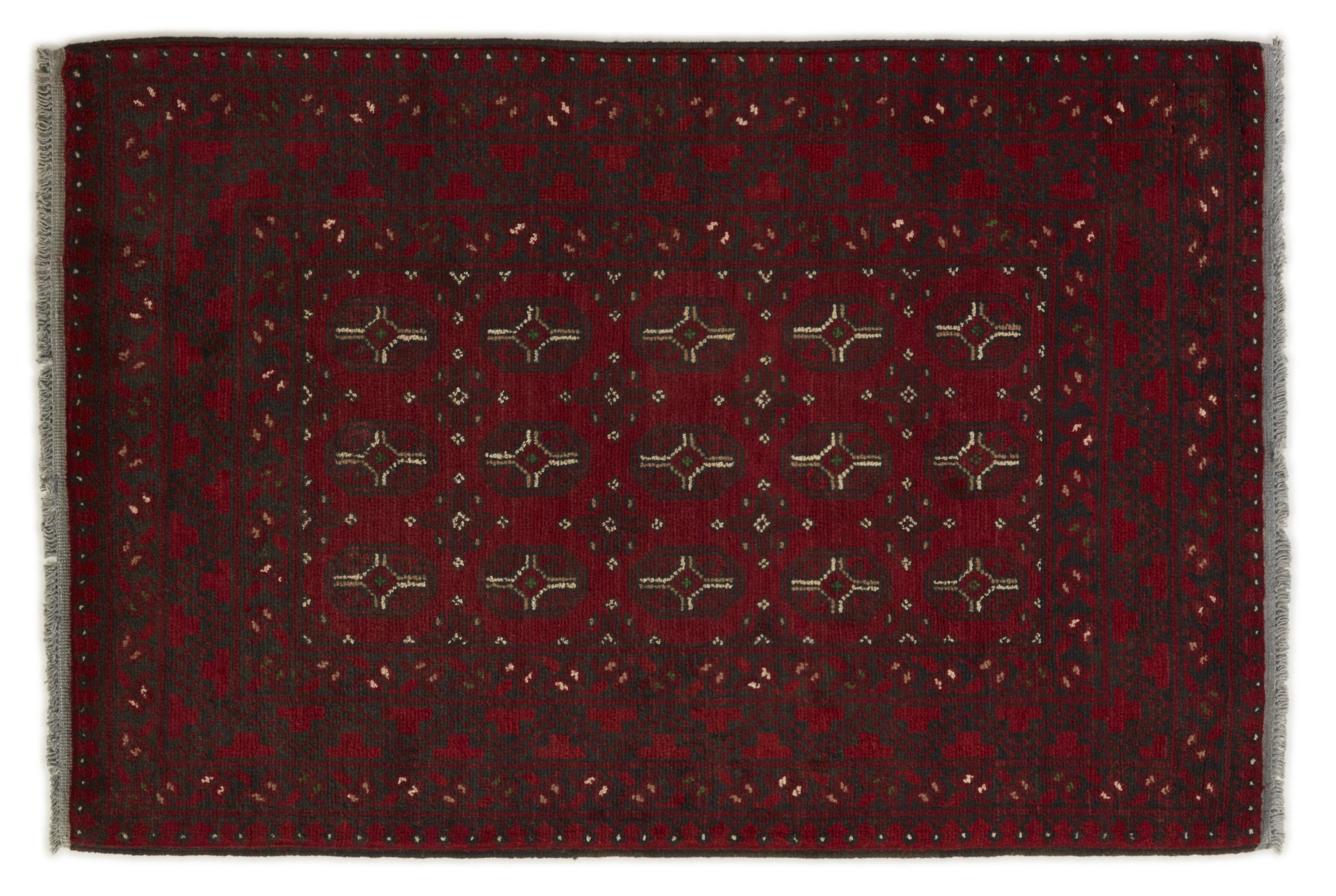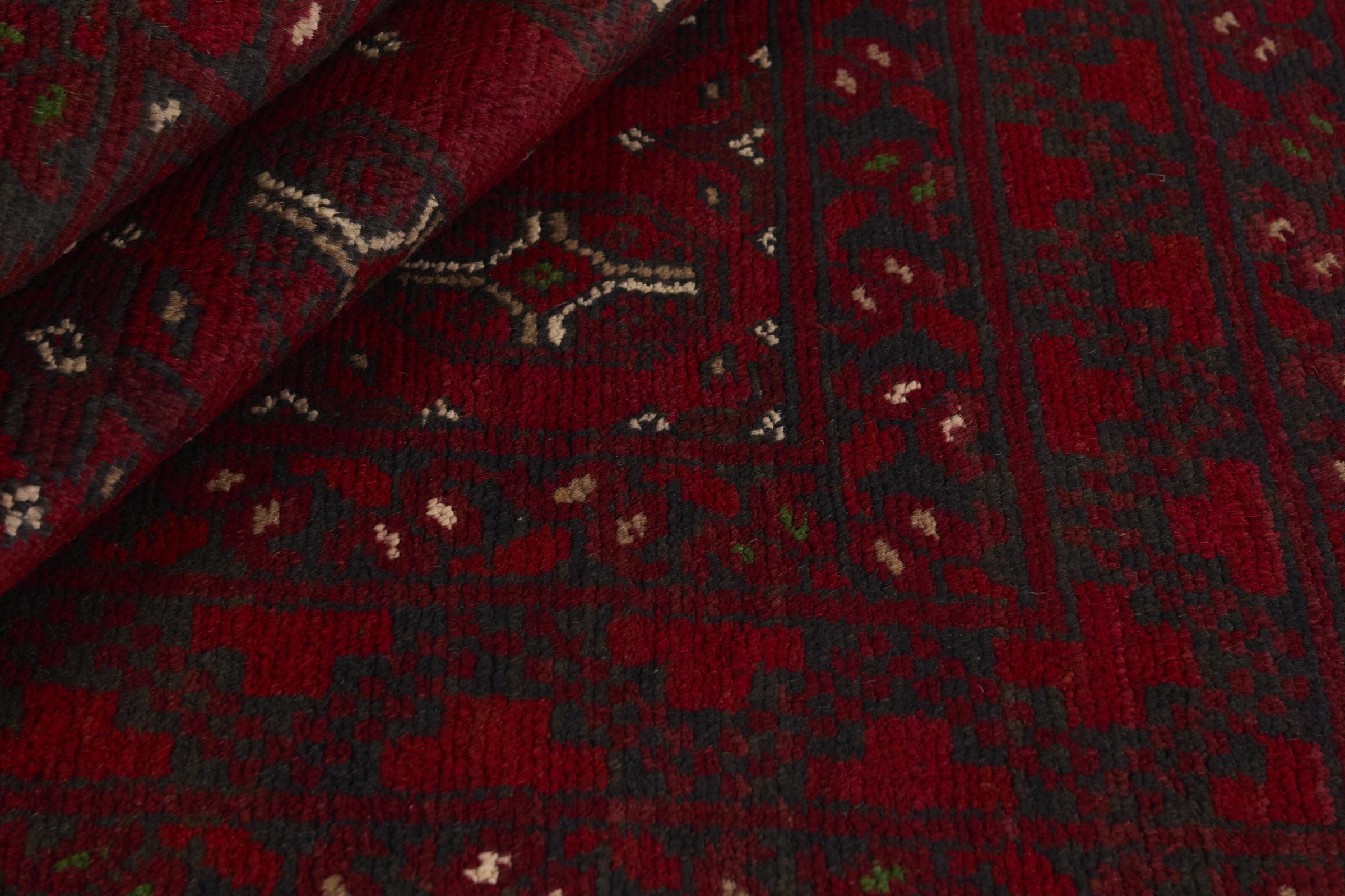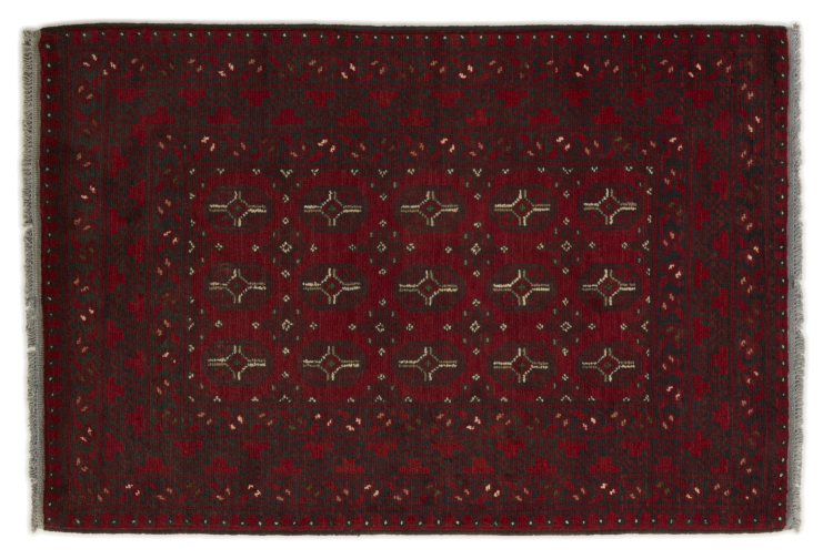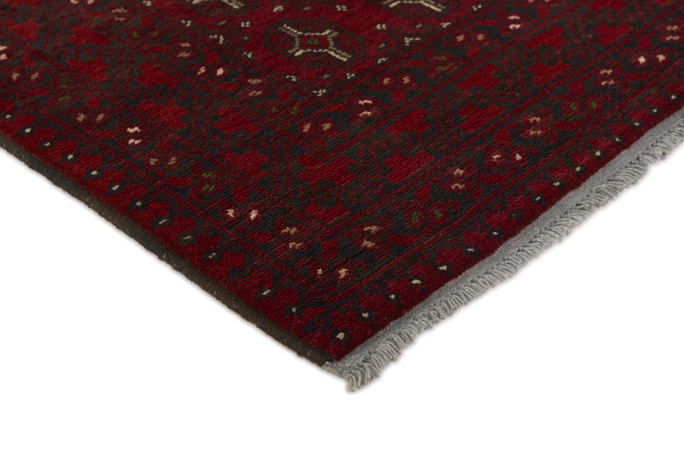 Dette afghansk-Akhche-tæppe ligger foran dig som en rød drøm. Det ser bedst ud i enkle rum. Dens kvalitet imponerer enhver elsker af orientalske tæpper. Håndknyttet fra Afghanistan.