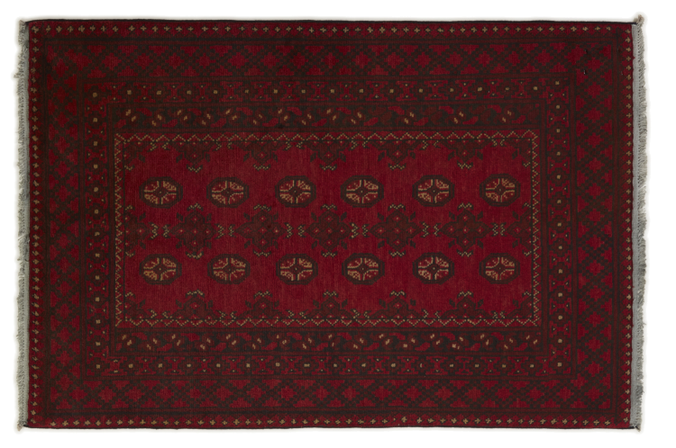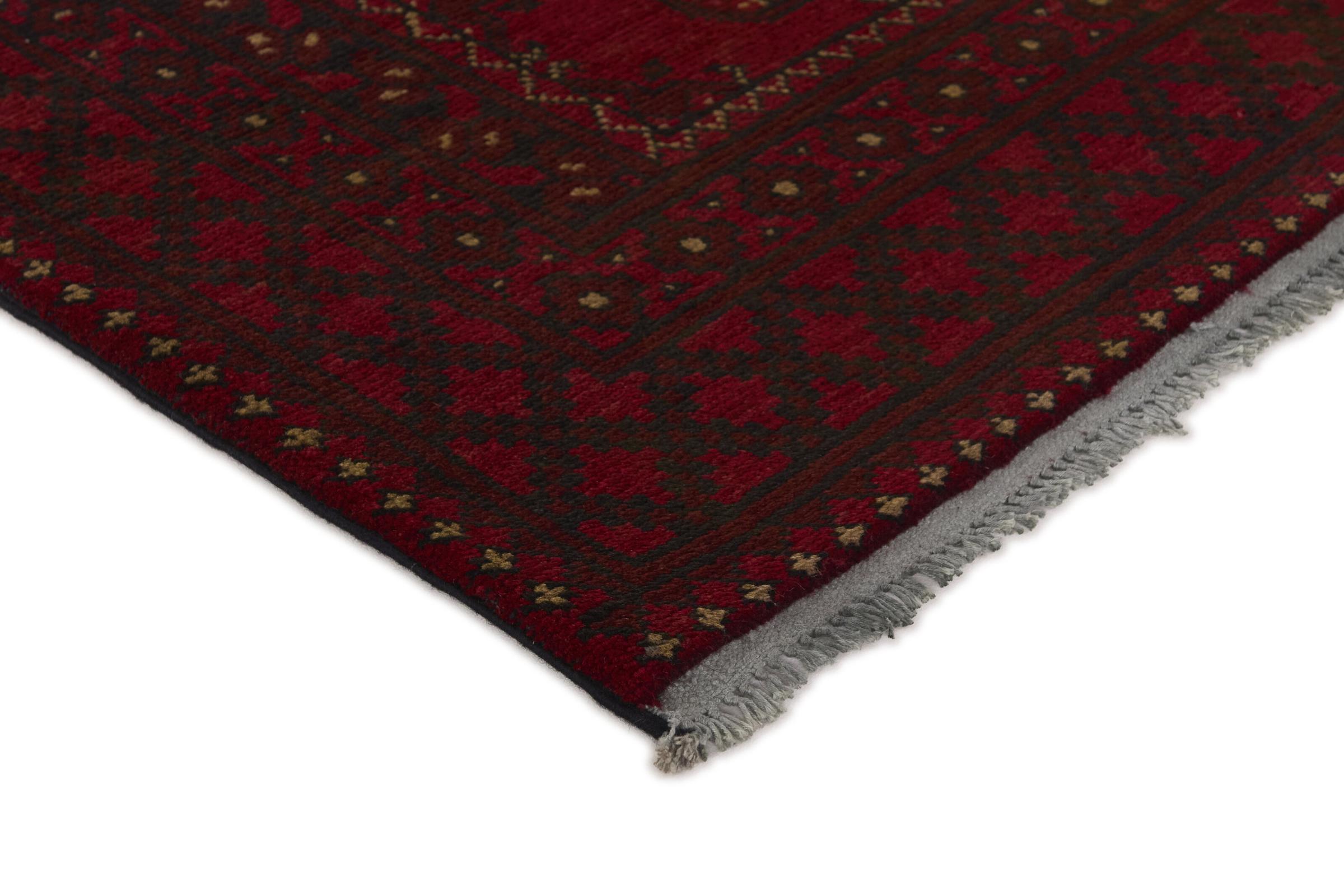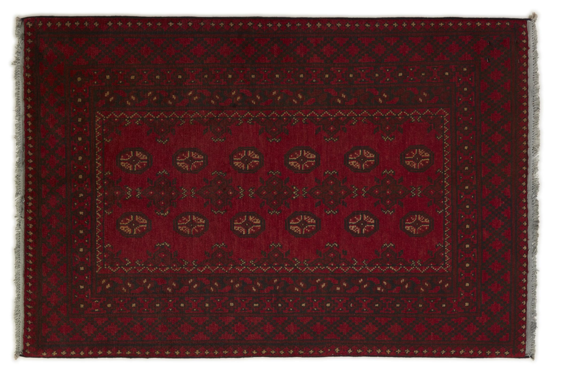 Dette afghansk-Akhche-tæppe ligger foran dig som en rød drøm. Det ser bedst ud i enkle rum. Dens kvalitet imponerer enhver elsker af orientalske tæpper. Håndknyttet fra Afghanistan.