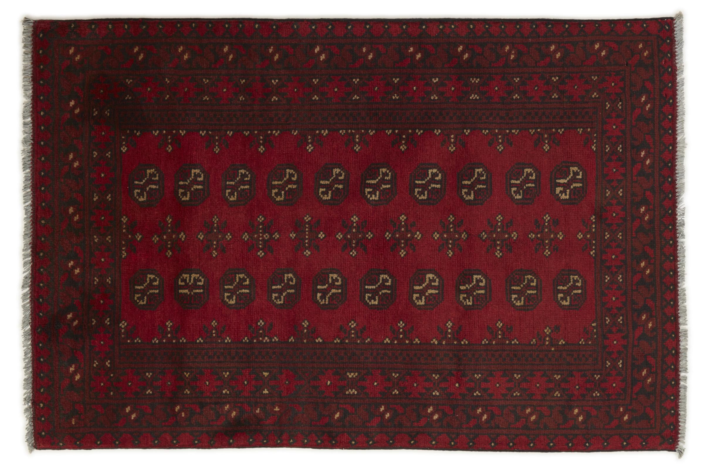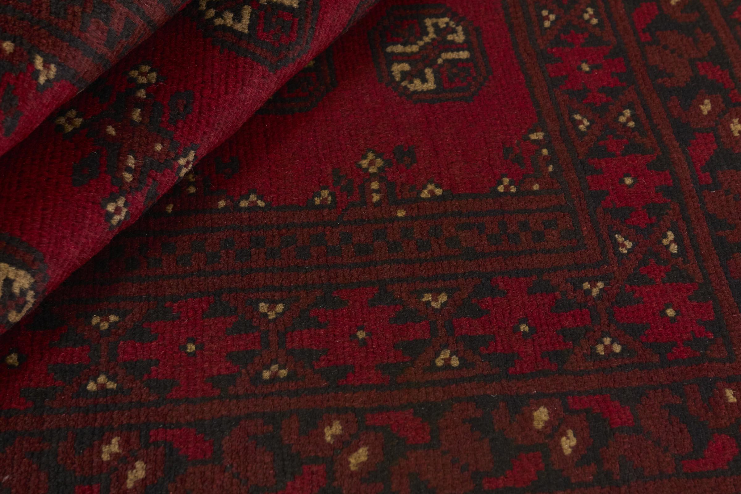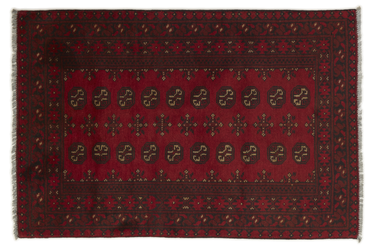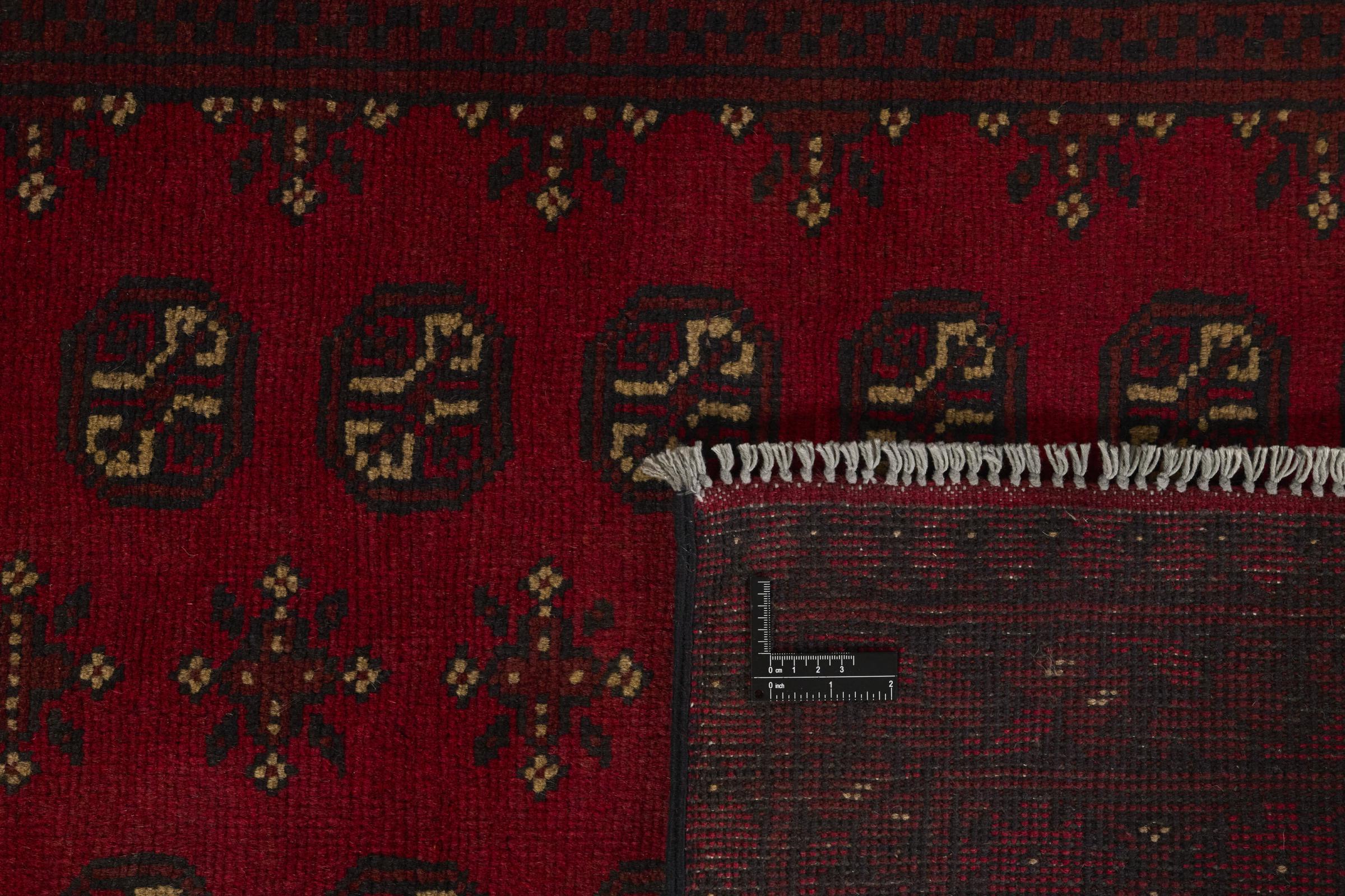 Dette afghansk-Akhche-tæppe ligger foran dig som en rød drøm. Det ser bedst ud i enkle rum. Dens kvalitet imponerer enhver elsker af orientalske tæpper. Håndknyttet fra Afghanistan.