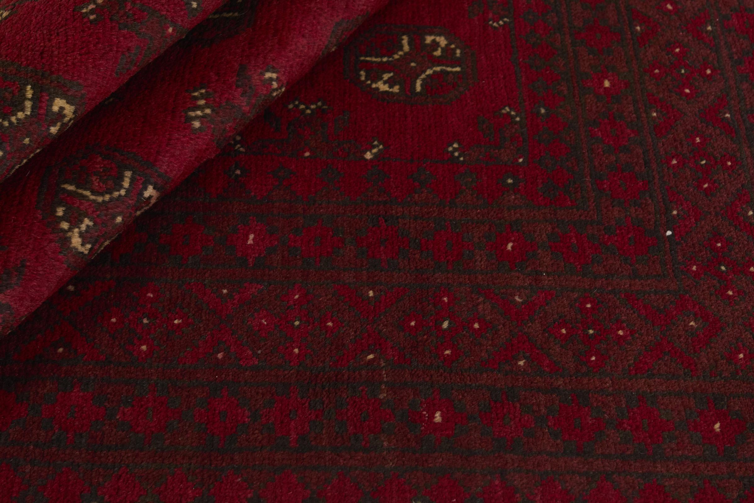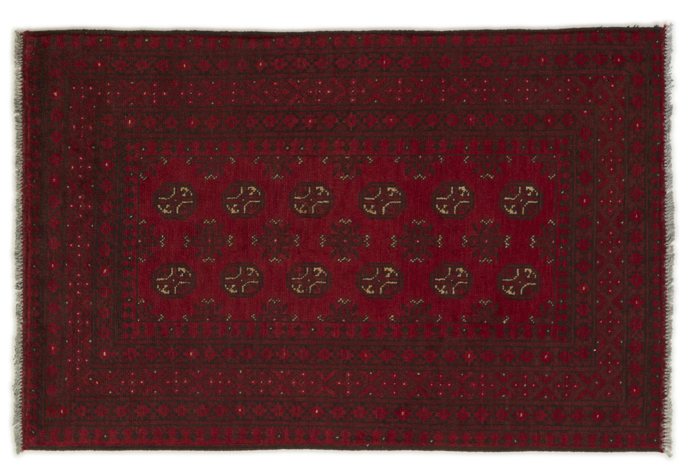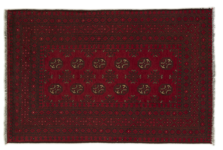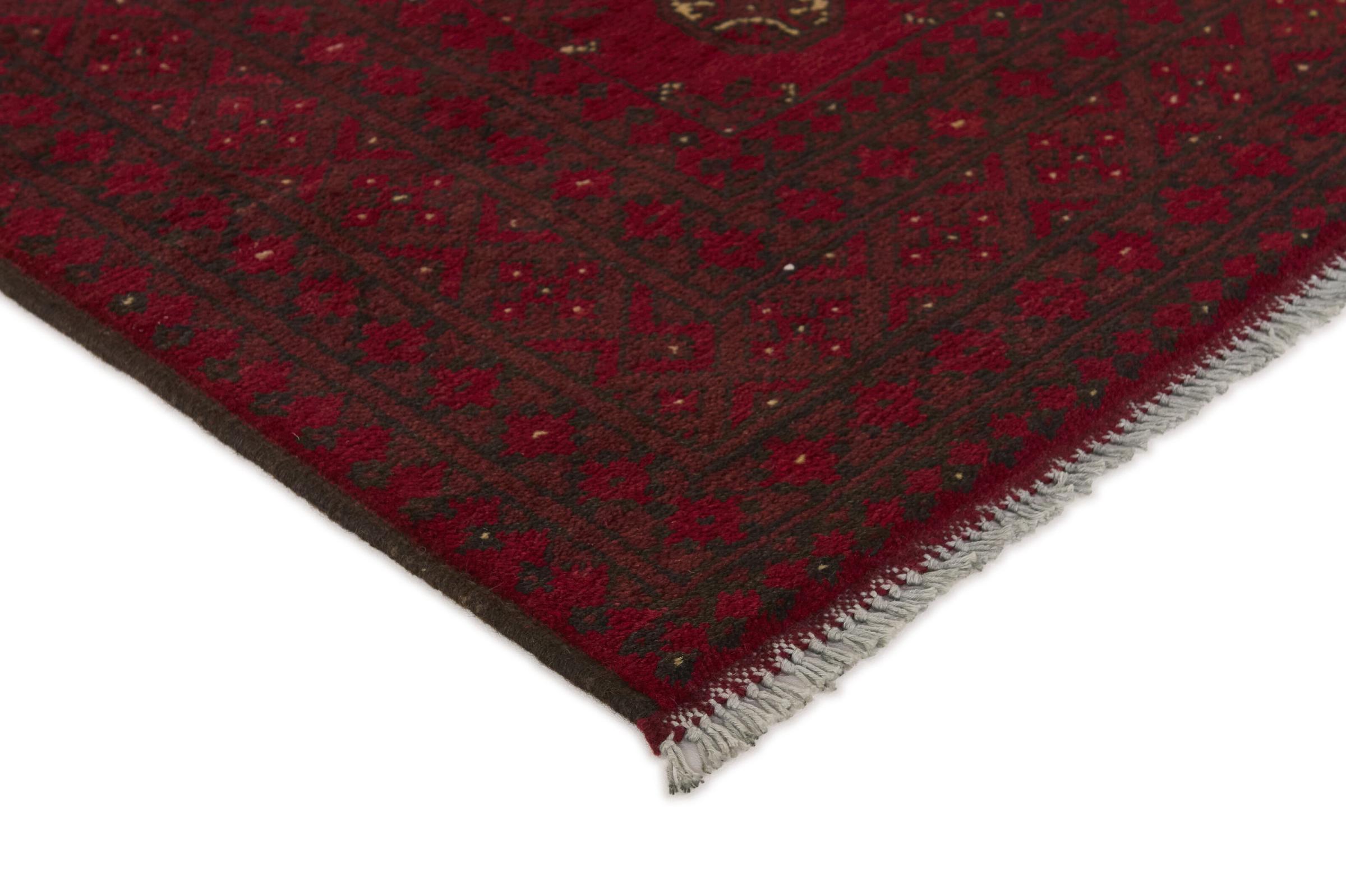 Dette afghansk-Akhche-tæppe ligger foran dig som en rød drøm. Det ser bedst ud i enkle rum. Dens kvalitet imponerer enhver elsker af orientalske tæpper. Håndknyttet fra Afghanistan.