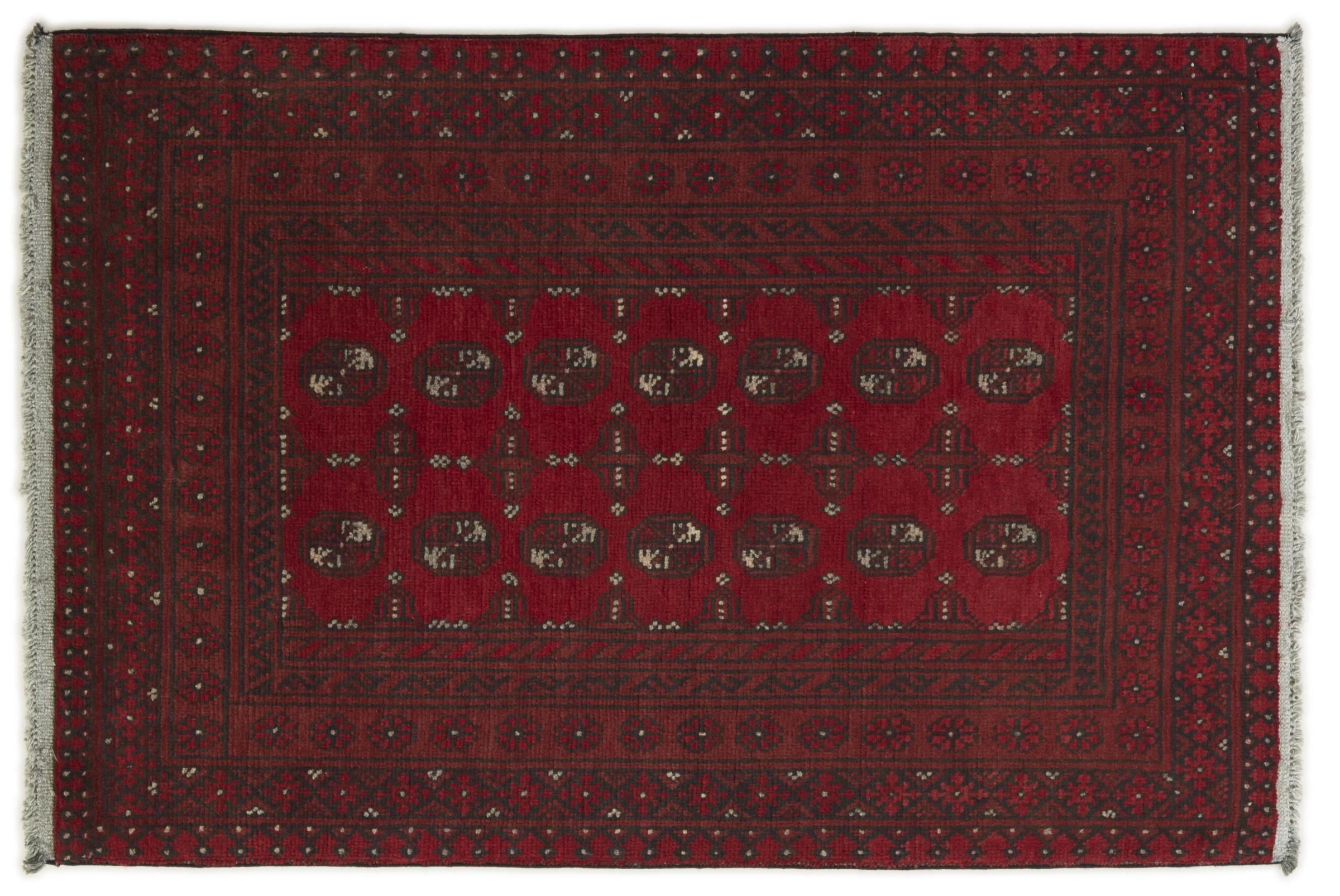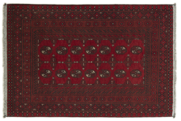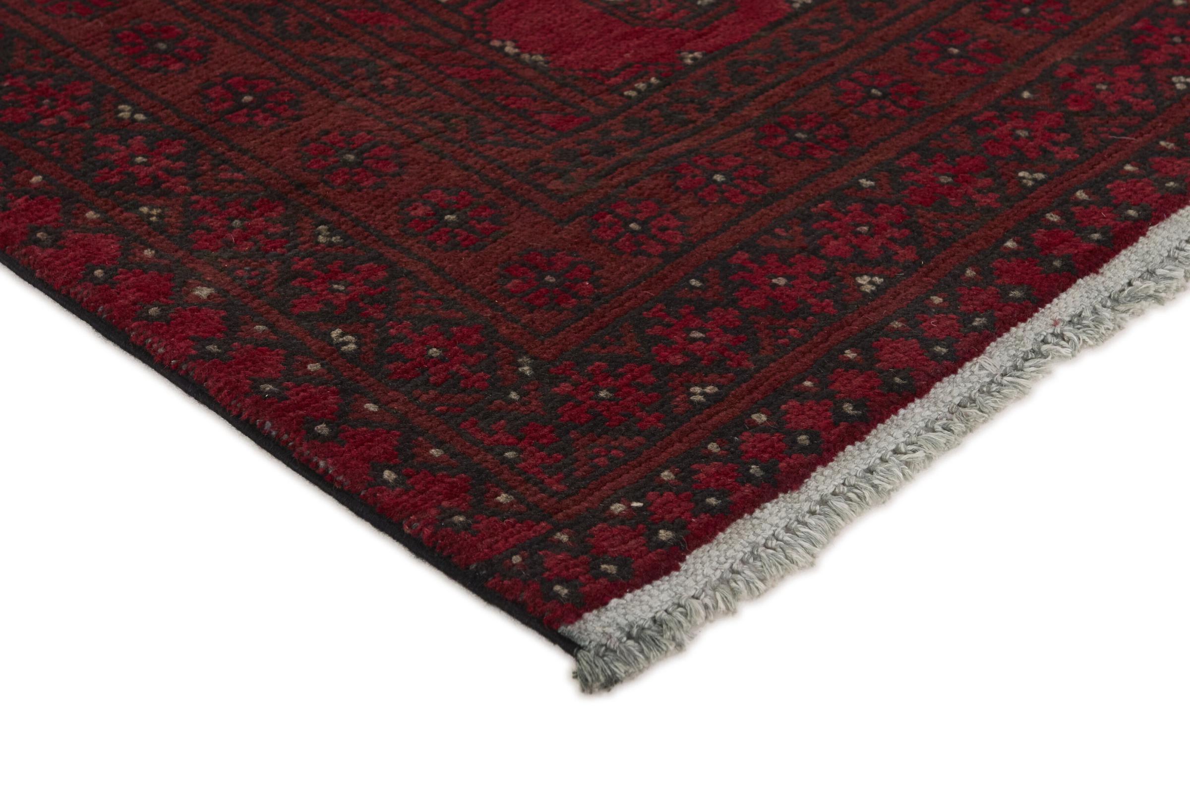 Dette afghansk-Akhche-tæppe ligger foran dig som en rød drøm. Det ser bedst ud i enkle rum. Dens kvalitet imponerer enhver elsker af orientalske tæpper. Håndknyttet fra Afghanistan.