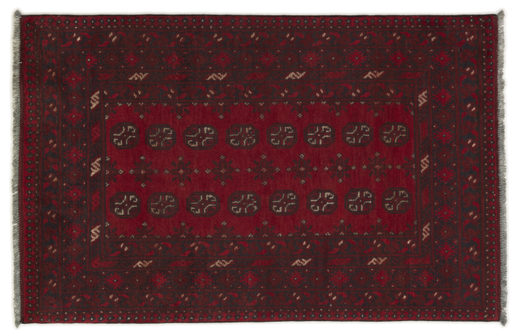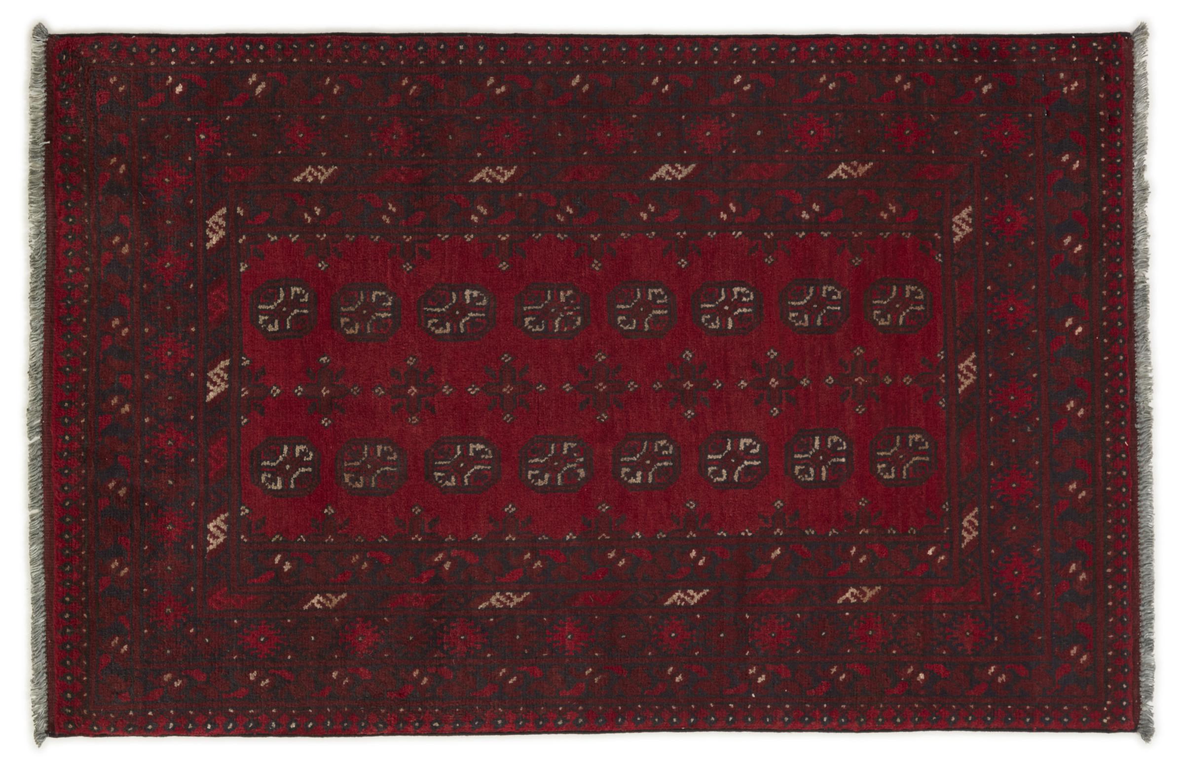 Dette afghansk-Akhche-tæppe ligger foran dig som en rød drøm. Det ser bedst ud i enkle rum. Dens kvalitet imponerer enhver elsker af orientalske tæpper. Håndknyttet fra Afghanistan.