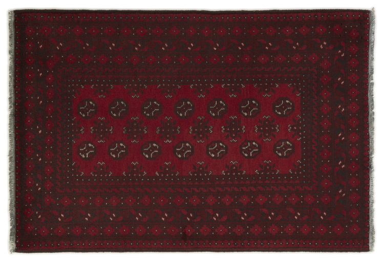 Dette afghansk-Akhche-tæppe ligger foran dig som en rød drøm. Det ser bedst ud i enkle rum. Dens kvalitet imponerer enhver elsker af orientalske tæpper. Håndknyttet fra Afghanistan.