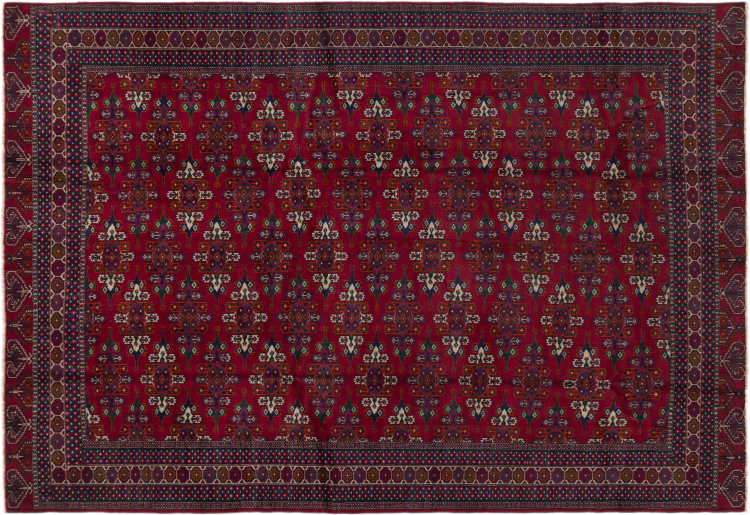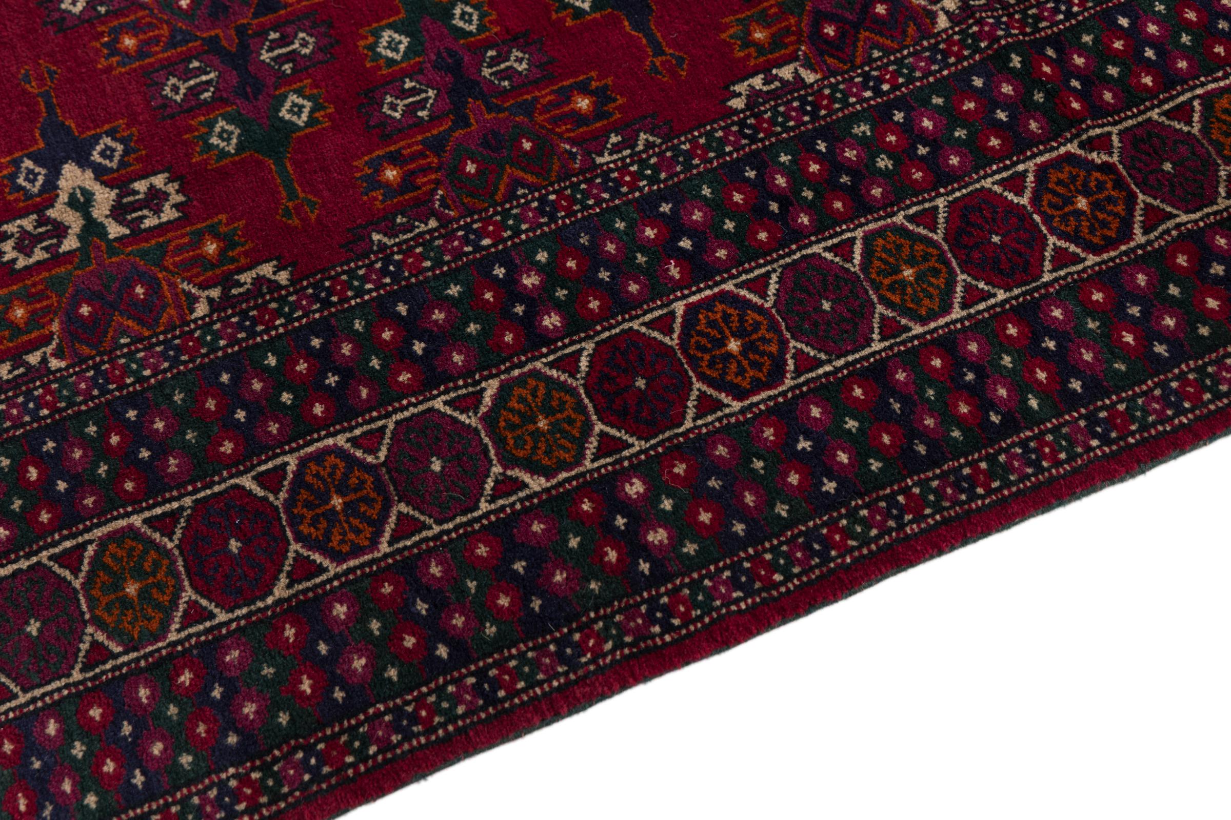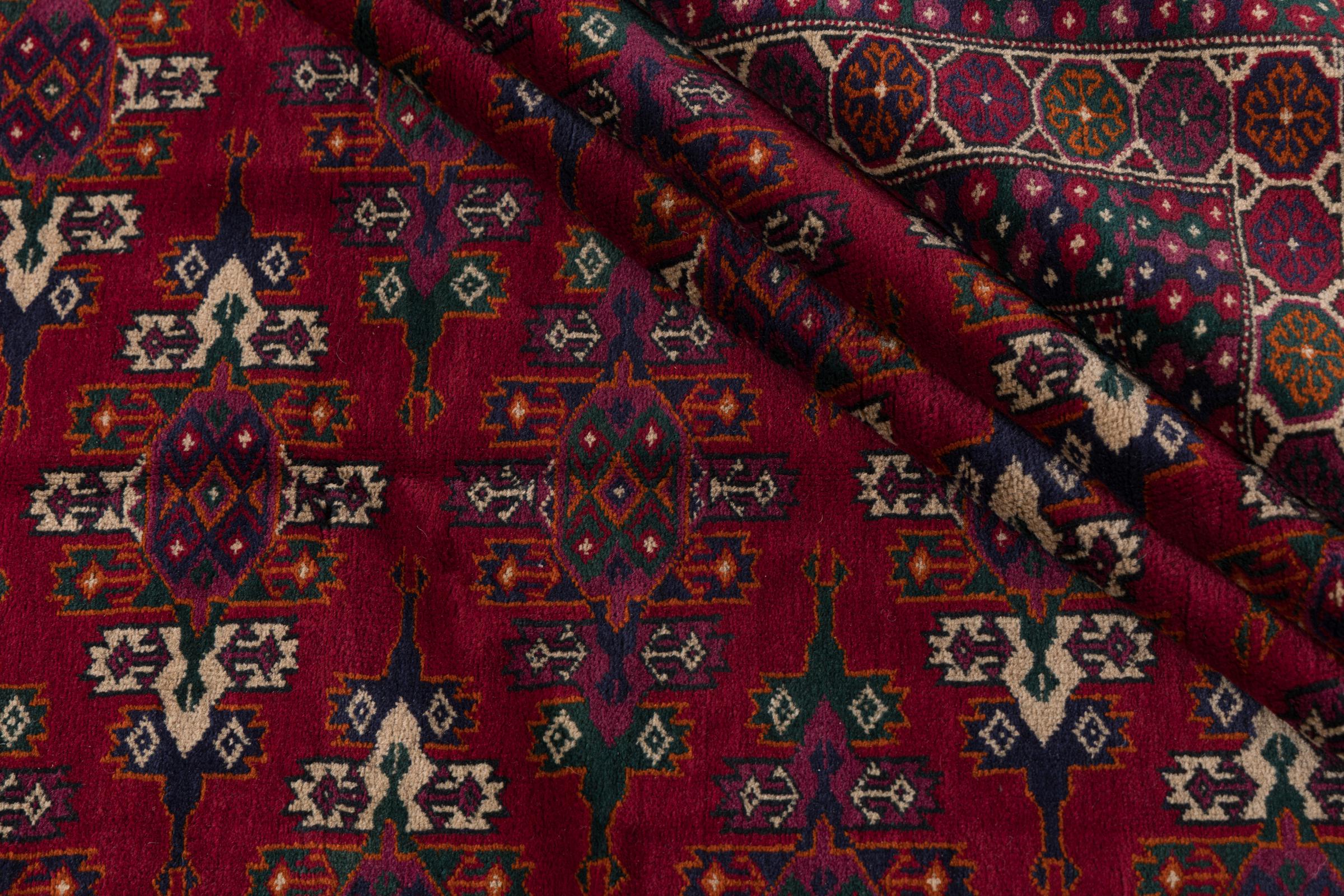 Dette Khal Mohammadi er eksemplarisk for den høje kvalitet af afghanske tæpper. Med sine dybe røde toner skaber det en smuk varme og hygge. Dette orientalske tæppe er knyttet i det nordlige Afghanistan med uld fra lokalt opdrættede får.