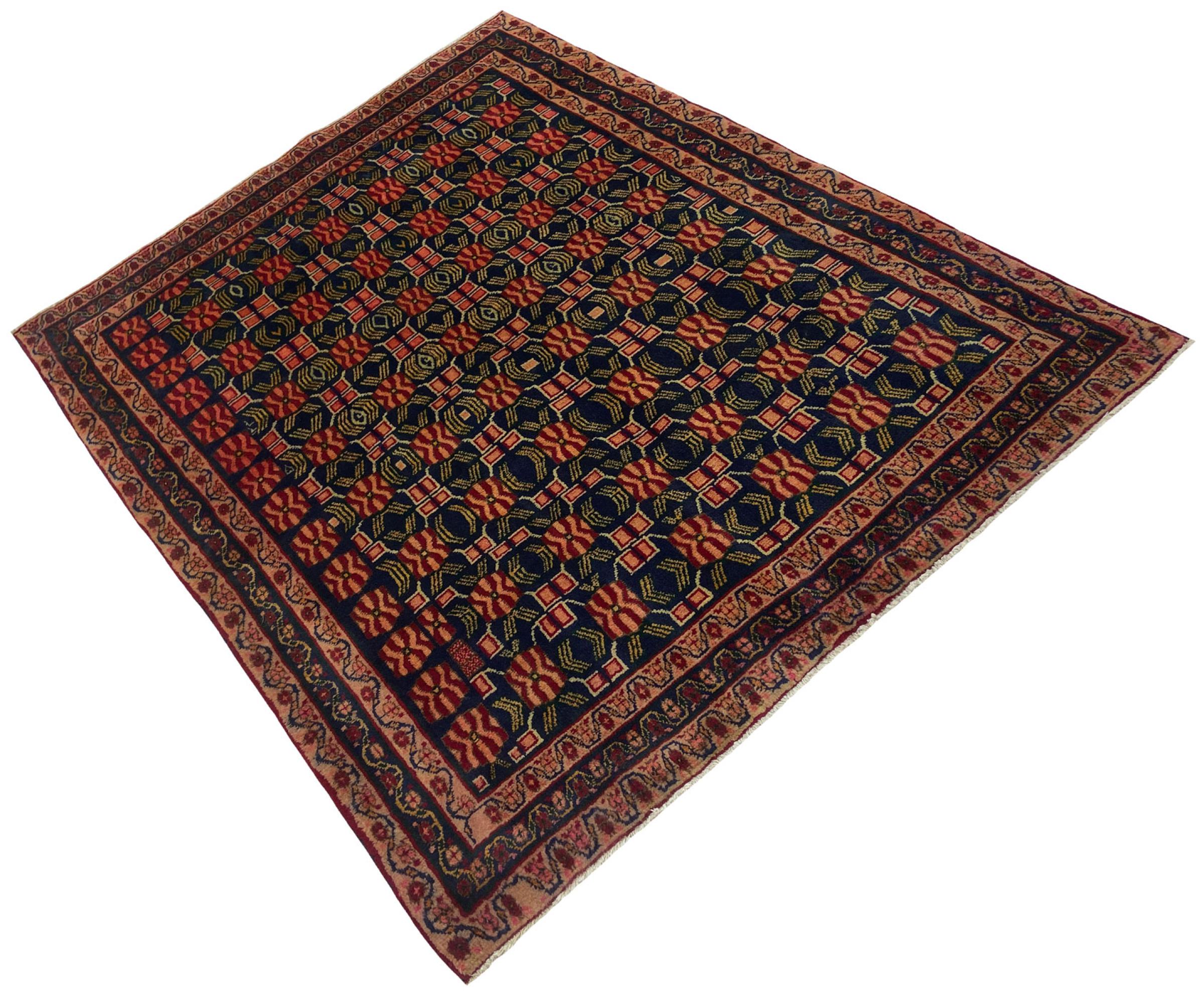 Dette tæppe hører til landsby- og nomadetæpper fra Iran, tidligere Persien. Denne type tæppe er håndknyttet i små byer og landsbyer i den gamle tradition. Nomader fremstiller også persiske tæpper under den åbne himmel. Tæpperne er knudt helt fra hovedet uden en skabelon. De er kendetegnet ved klassiske ornamenter, der er opstillet i lineære og geometriske mønstre. Takket være deres kulturelle og traditionelle oprindelse har disse tæpper en unik karakter, der udgør det gamle Persien.