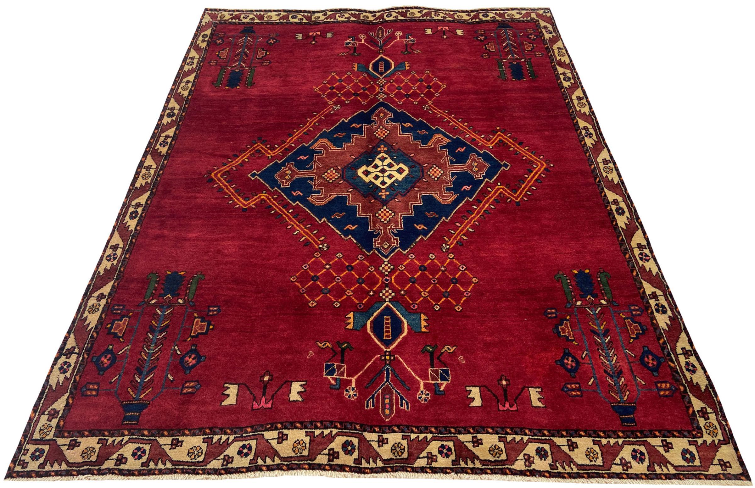 Dette tæppe hører til landsby- og nomadetæpper fra Iran, tidligere Persien. Denne type tæppe er håndknyttet i små byer og landsbyer i den gamle tradition. Nomader fremstiller også persiske tæpper under den åbne himmel. Tæpperne er knudt helt fra hovedet uden en skabelon. De er kendetegnet ved klassiske ornamenter, der er opstillet i lineære og geometriske mønstre. Takket være deres kulturelle og traditionelle oprindelse har disse tæpper en unik karakter, der udgør det gamle Persien.