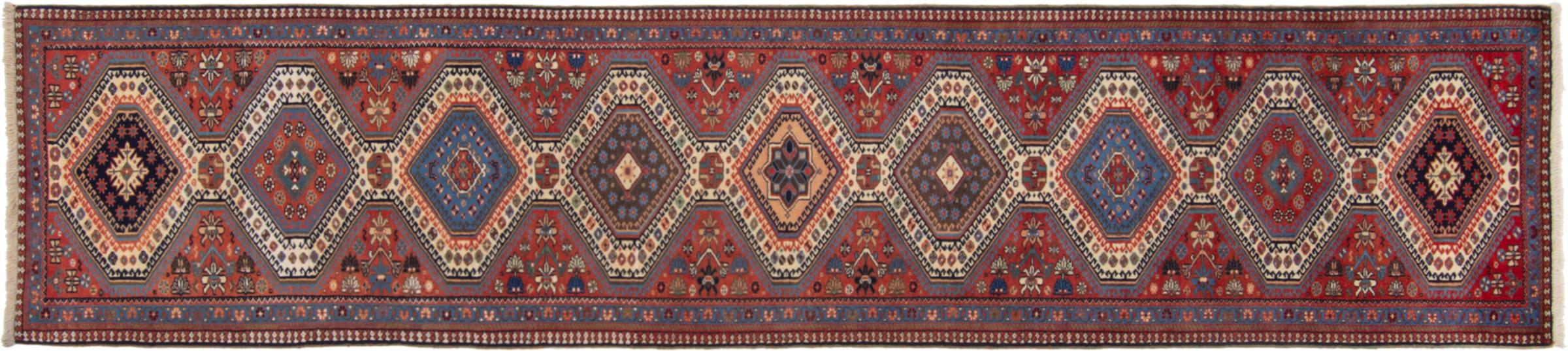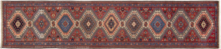 Tæppe-nr.: 292802003142959 Størrelse: 298x62 cm Tykkelse: ca. 12 mm Knuder: 128 000 - 160 000 / m² Forarbejdelse: Knyttet i hånden Luv: Håndspunden uld Kæde: Uld Oprindelse: Persien / Iran Alder: Ny Vægt: ca. 6 kg Også kendt som Qashqai, Gaschgai, Gashghai, Kashgai Antal på lager: Unik - Kun 1 tilbage på lager