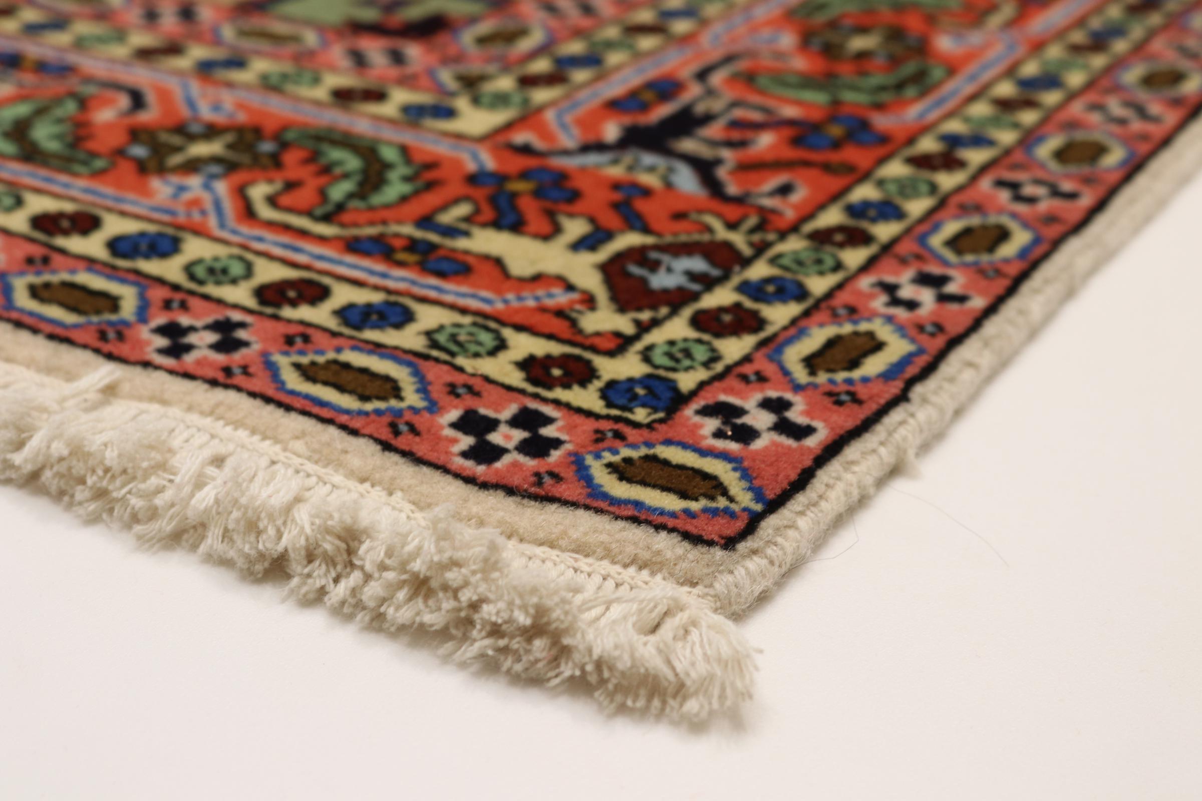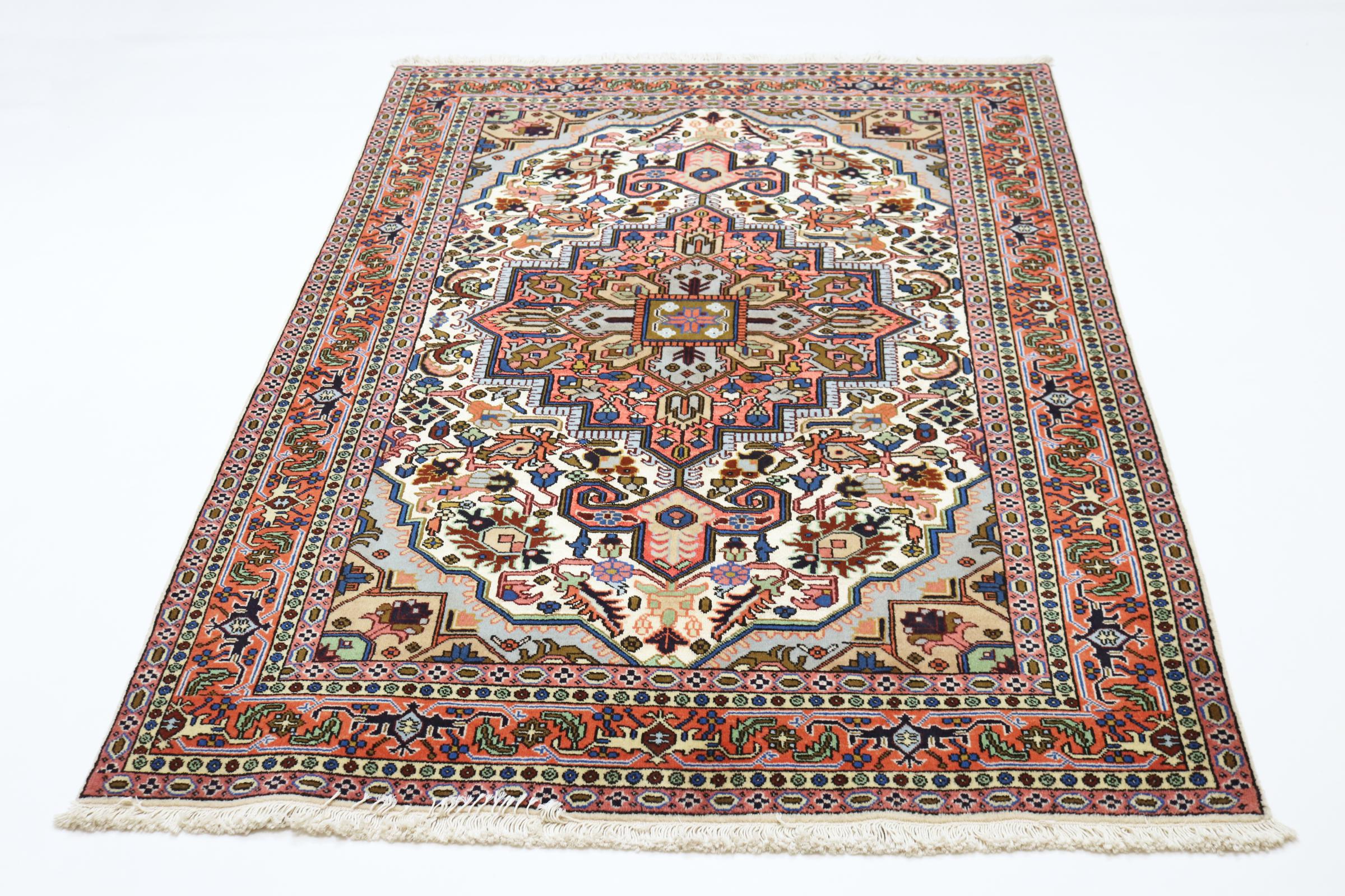 Tæppe-nr.: 31918003347492 Størrelse: 195x132 cm Tykkelse: ca. 10 mm Knuder: 72 000 - 90 000 / m² Forarbejdelse: Knyttet i hånden Luv: Uld med silke Kæde: Bomuld Oprindelse: Persien / Iran Alder: Ny Vægt: ca. 9 kg Antal på lager: Unik - Kun 1 tilbage på lager