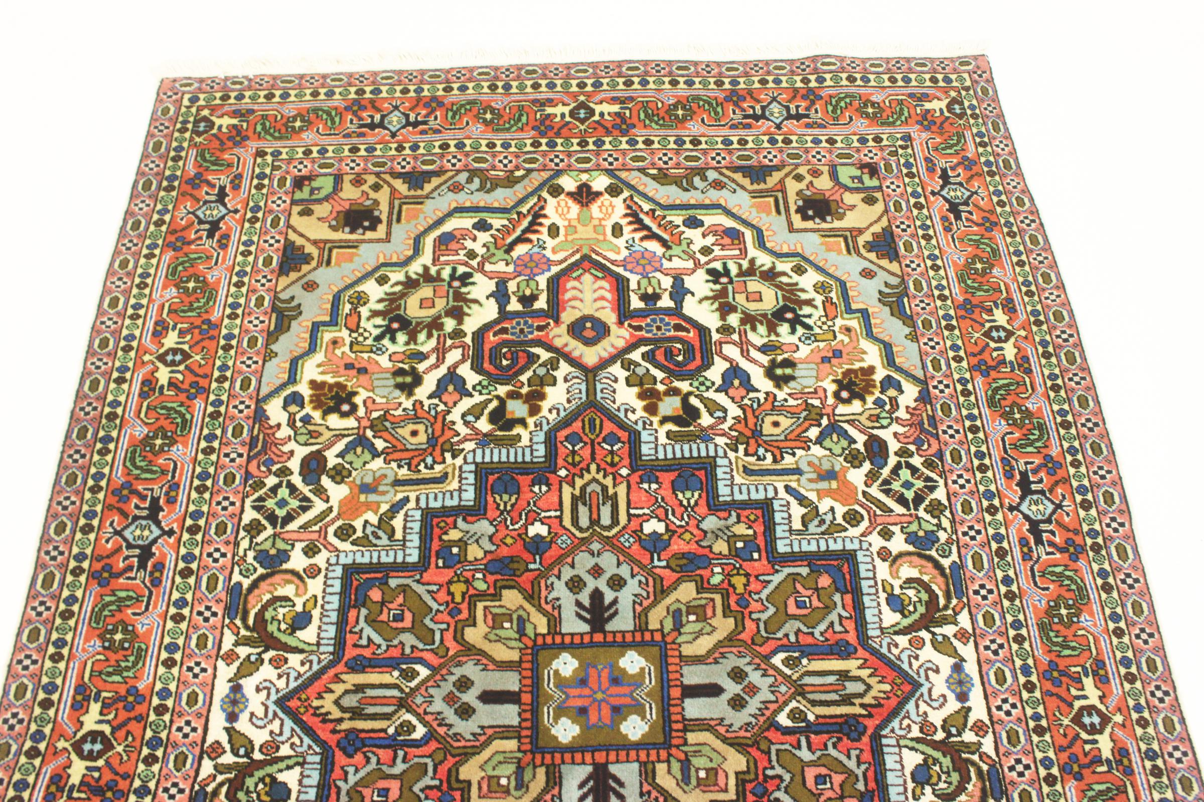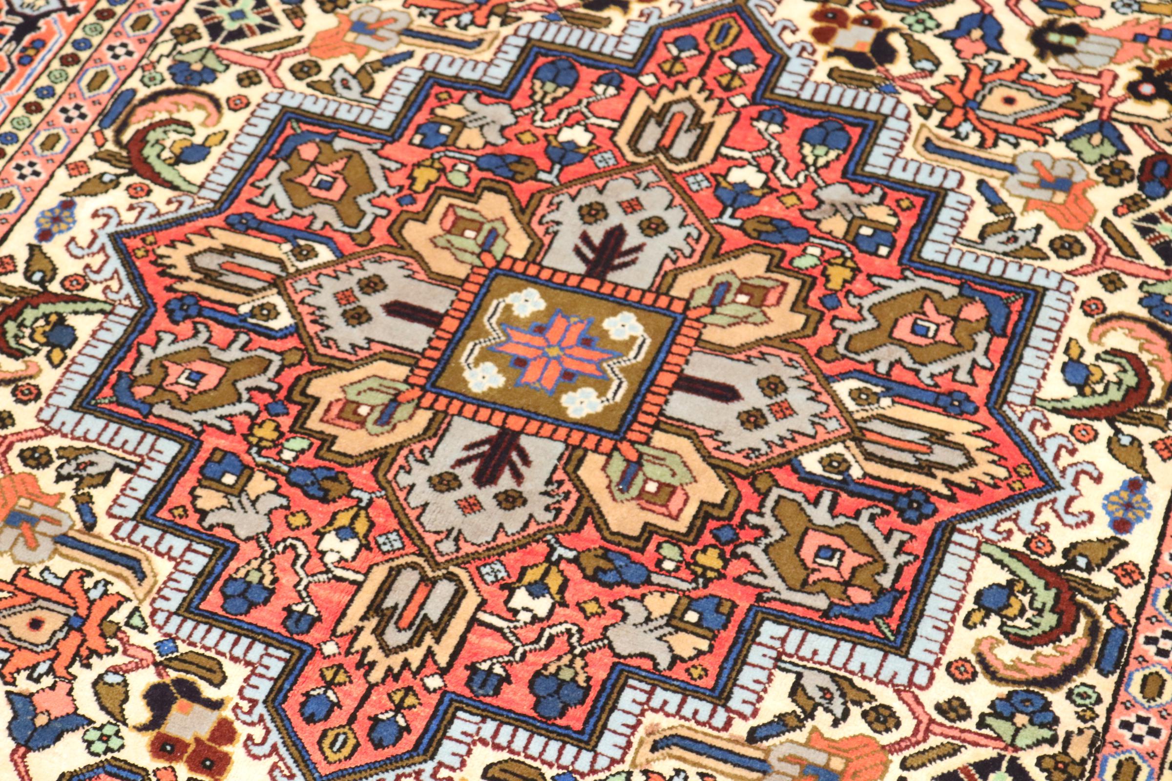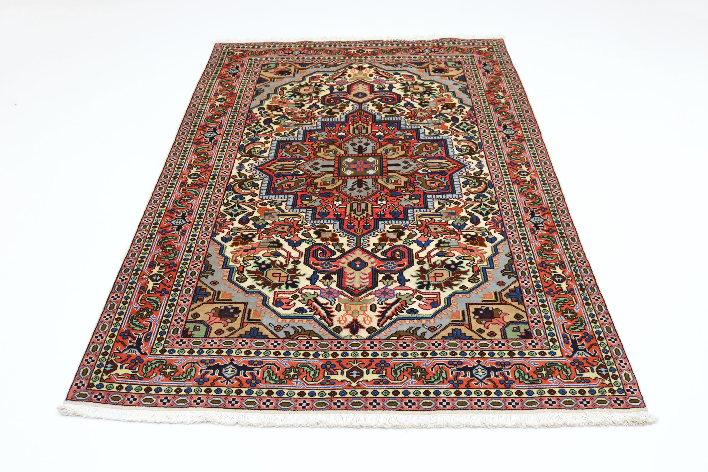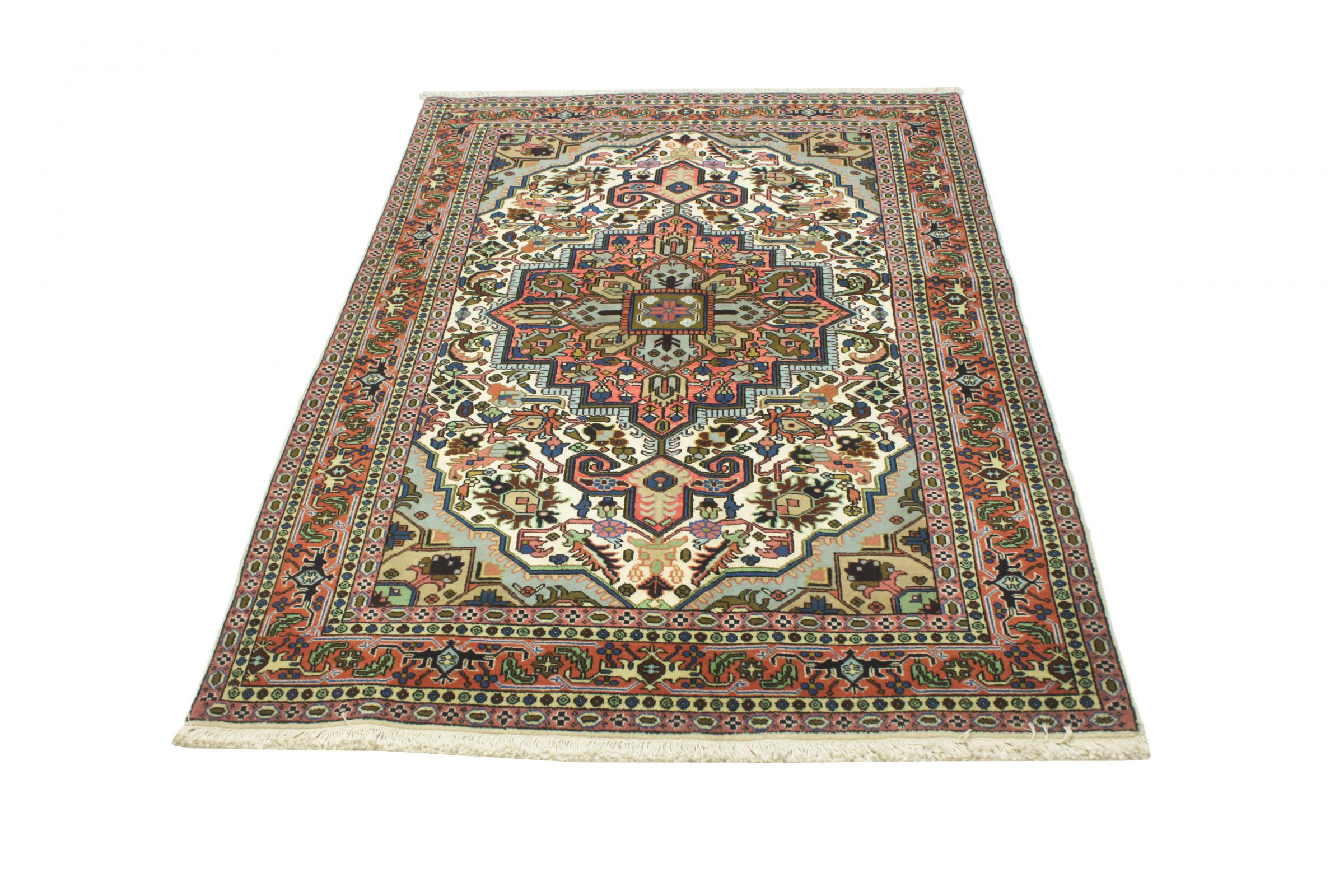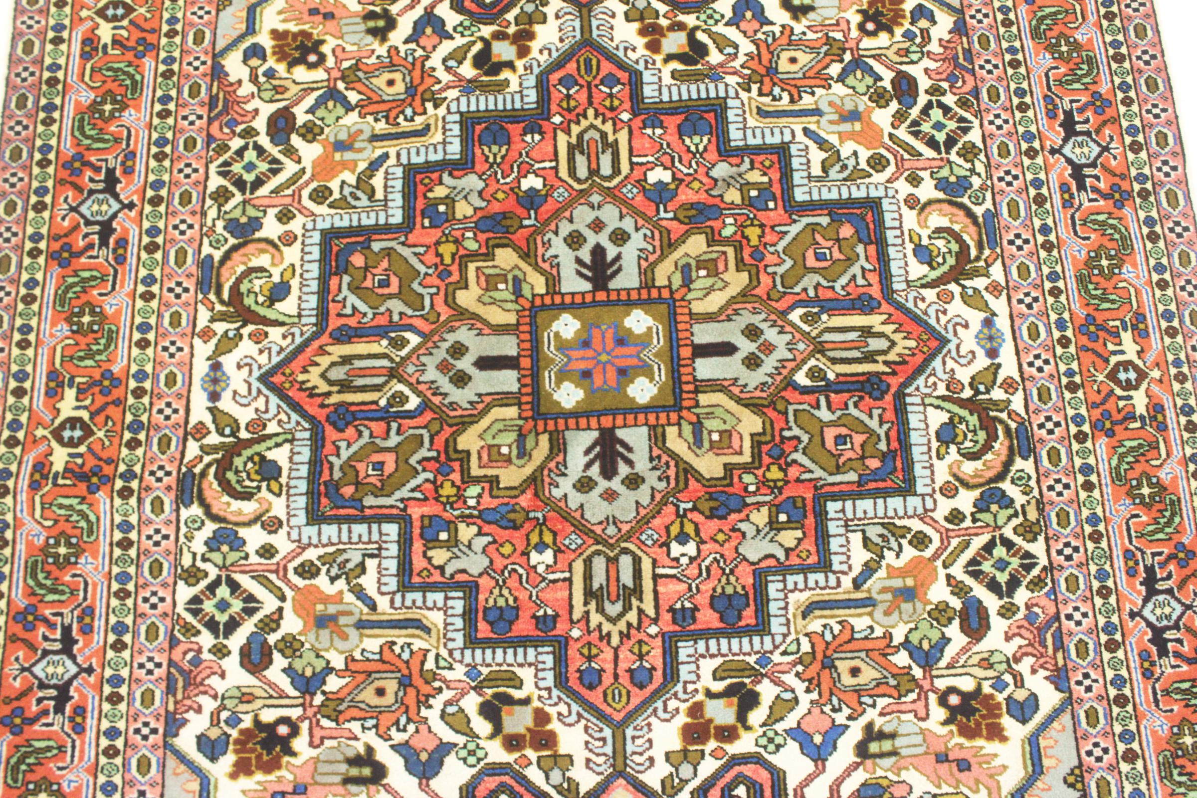 Dette Heriz-tæppe er et smukt eksempel på persisk tæppehåndværk. Dets rustikke design er et bevis på dets holdbarhed. Det er håndknyttet i byen Heriz, som ligger i nærheden af Tabriz i det nordvestlige Iran. Enhver, der er på udkig efter et persisk tæppe, der vil give glæde i lang tid og er meget moderne, vil elske dette Heriz. Heriz-tæppernes ornamenter er ekstremt populære i dag og ses som meget moderne. Du vil aldrig opgive et tæppe som dette igen.