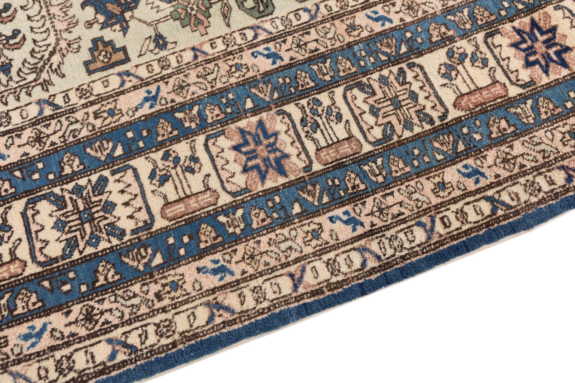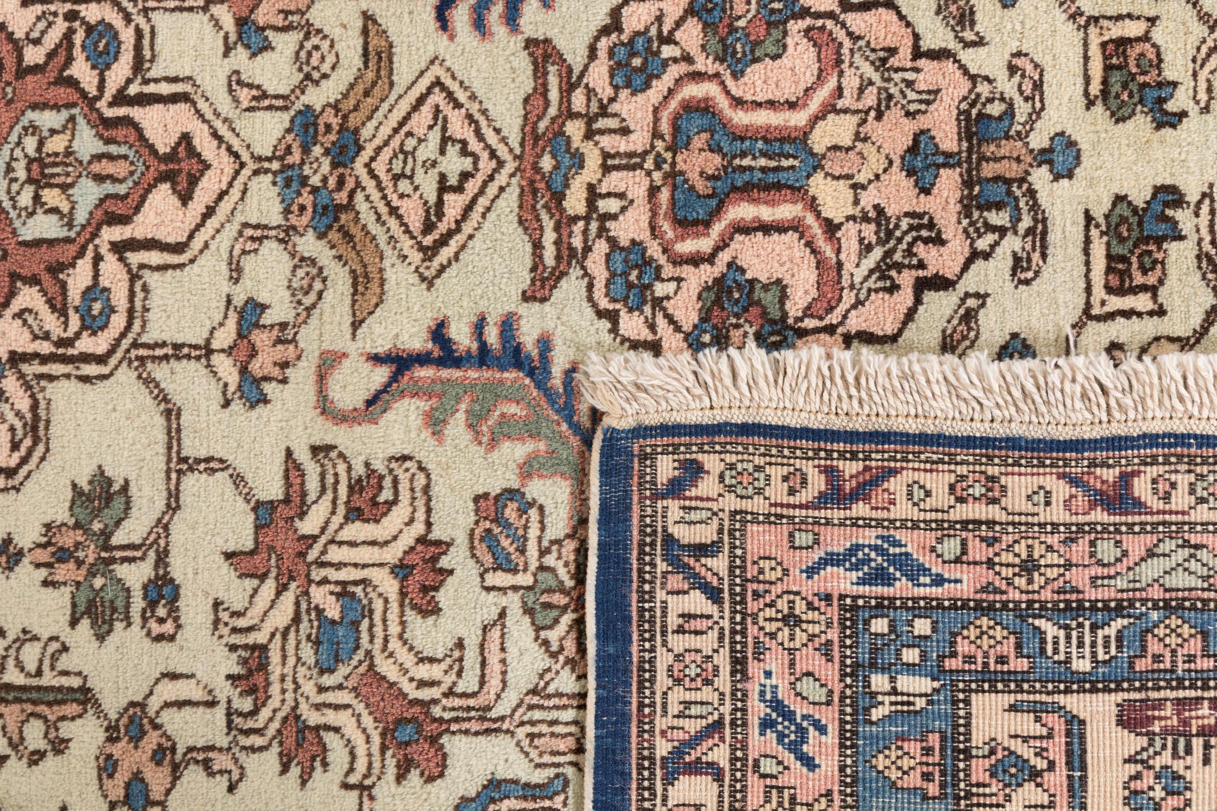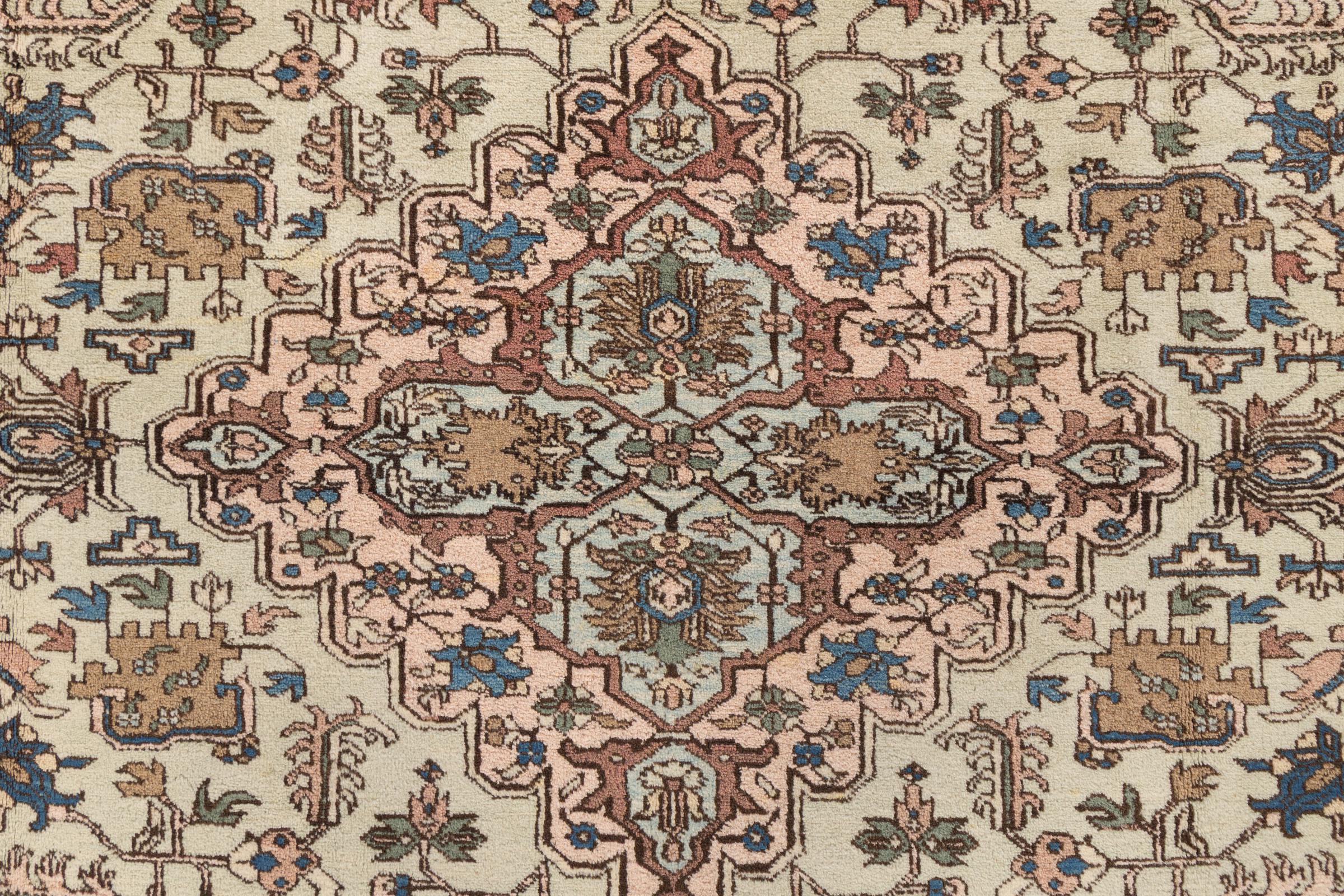 Dette Heriz-tæppe er et smukt eksempel på persisk tæppehåndværk. Dets rustikke design er et bevis på dets holdbarhed. Det er håndknyttet i byen Heriz, som ligger i nærheden af Tabriz i det nordvestlige Iran. Enhver, der er på udkig efter et persisk tæppe, der vil give glæde i lang tid og er meget moderne, vil elske dette Heriz. Heriz-tæppernes ornamenter er ekstremt populære i dag og ses som meget moderne. Du vil aldrig opgive et tæppe som dette igen.