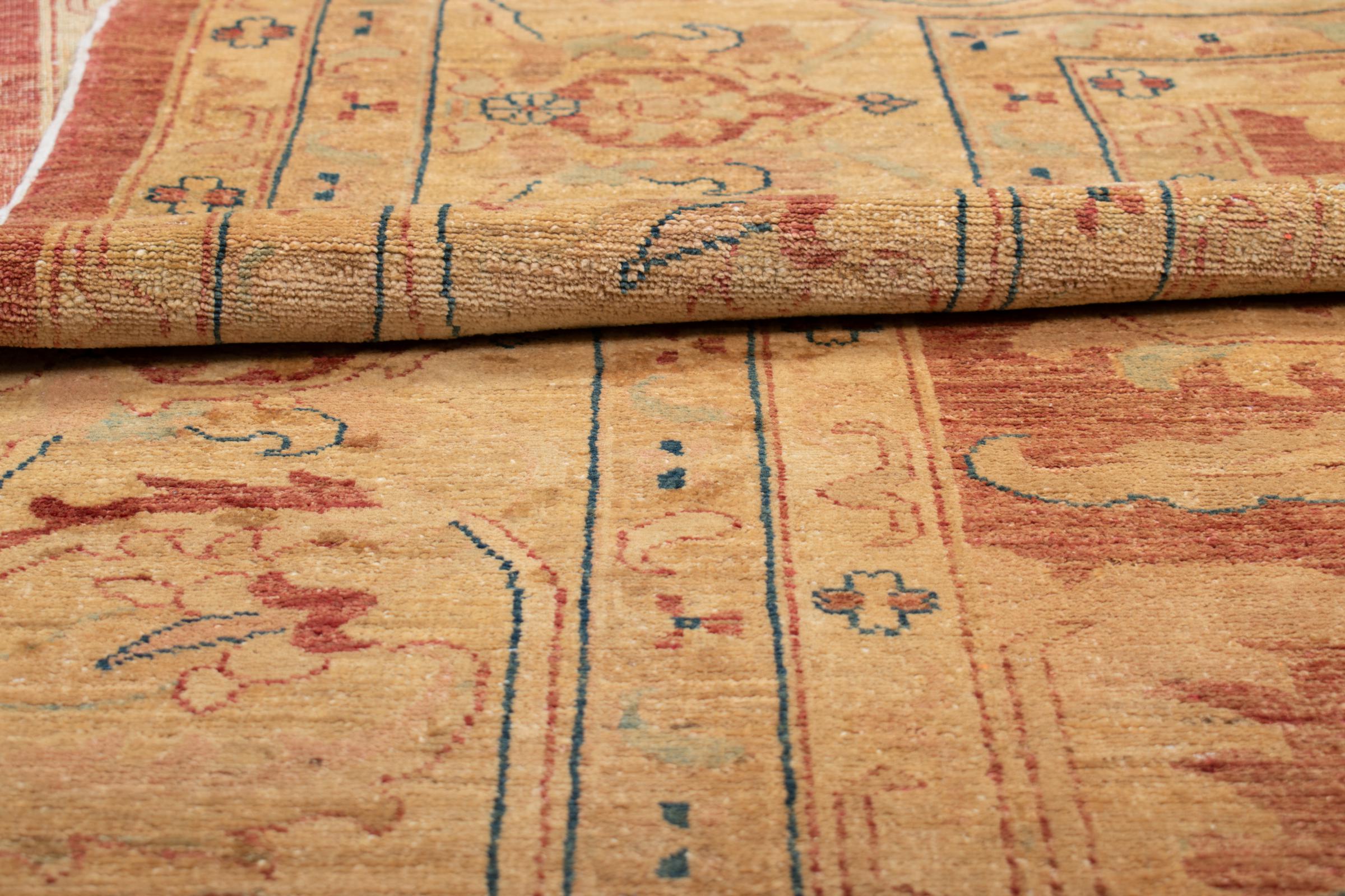 Dette tæppe kombinerer materialer af høj kvalitet, traditionelt håndværk og kunstnerisk talent. Det anvendte materiale er håndspundet fåreuld af højeste kvalitet. Resultatet er en model af førsteklasses kvalitet og uovertruffen æstetik. Med sit orientalske mønster indhyller dette tæppe din bolig i stilfuld elegance, der inviterer dig til at blive hængende.