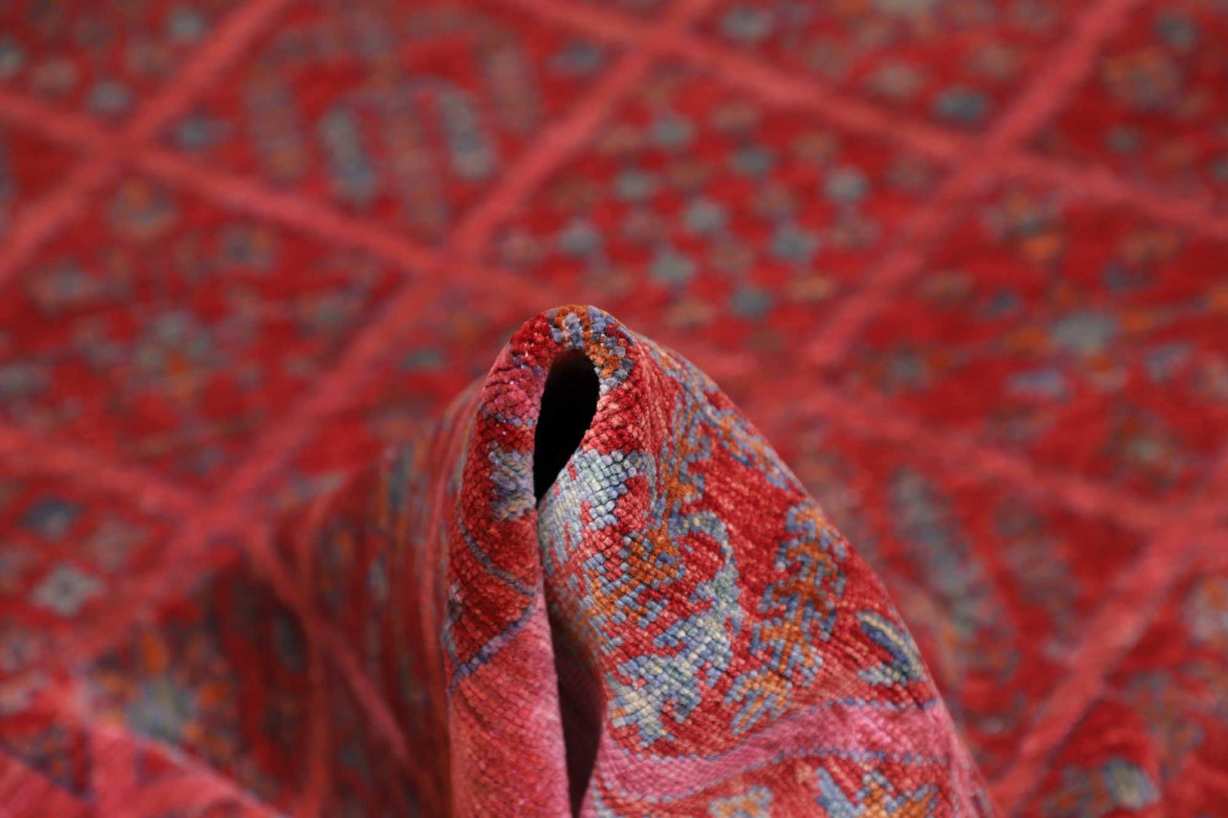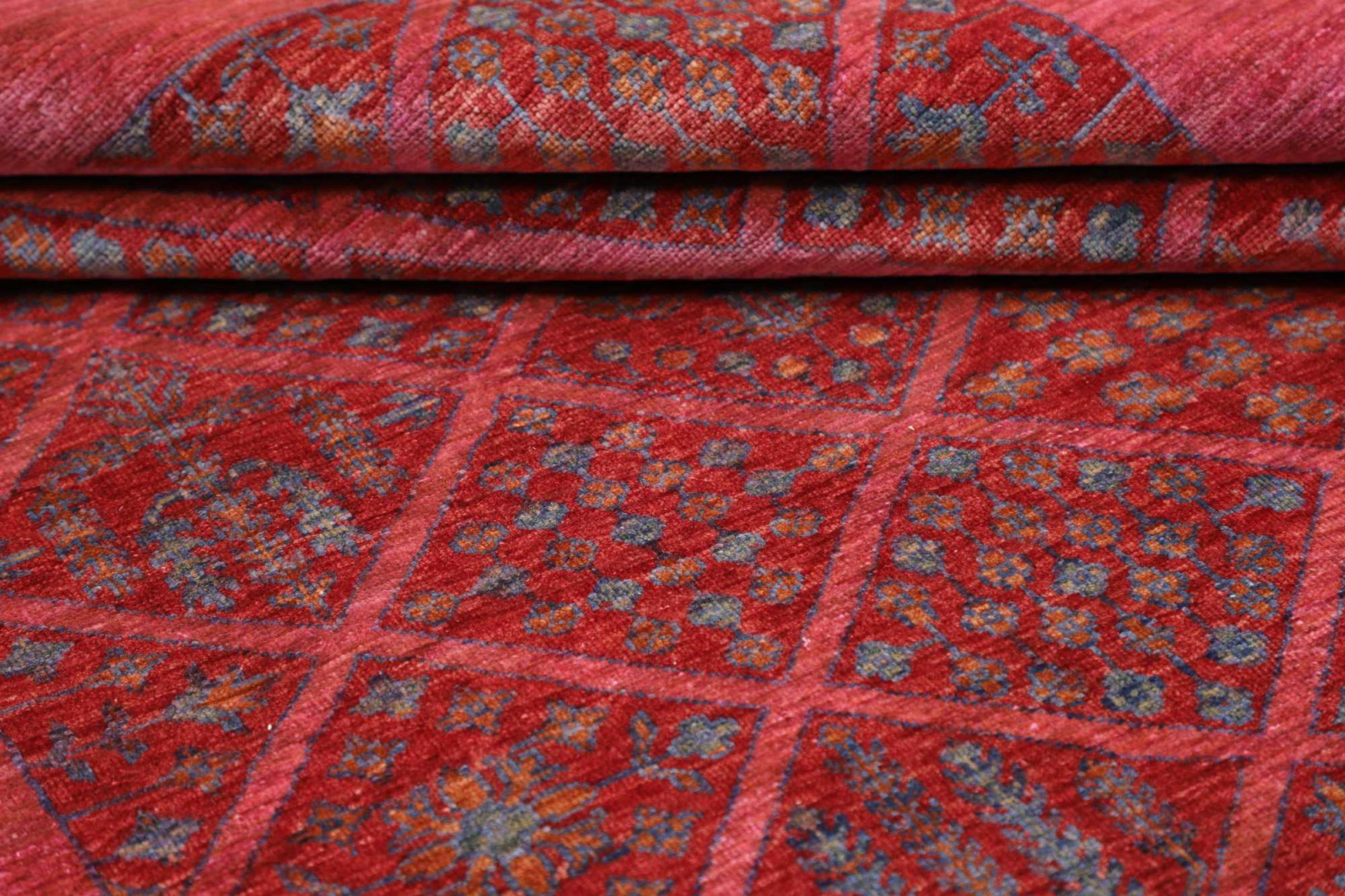 Dette tæppe består af håndspundet fåruld af højeste kvalitet. Især i Iran (tidligere Persien), Afghanistan og Pakistan spindes uld med hånden, før tæppet faktisk knuses. Uld har bevist sig som et naturligt og ekstremt slidstærkt materiale gennem århundreder. Det har blandt andet snavsafvisende og varmeisolerende egenskaber. Samtidig er uld uforlignelig blød og bringer en naturlig glans.