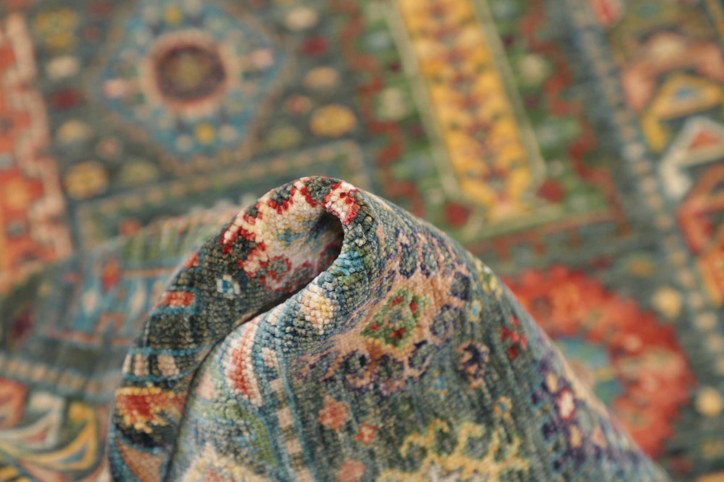 Dette livlige orientalske tæppe er håndknyttet i Pakistan - i en af de mest vidtrækkende knudekulturer i verden. Orientens livlige farvespektrum kommer til sin ret her. Et tæppe som dette bringer livsglæde på alle tider af året. Designertæppet har sin helt egen karakter, da det kun er blevet håndknyttet én gang over en periode på flere måneder.