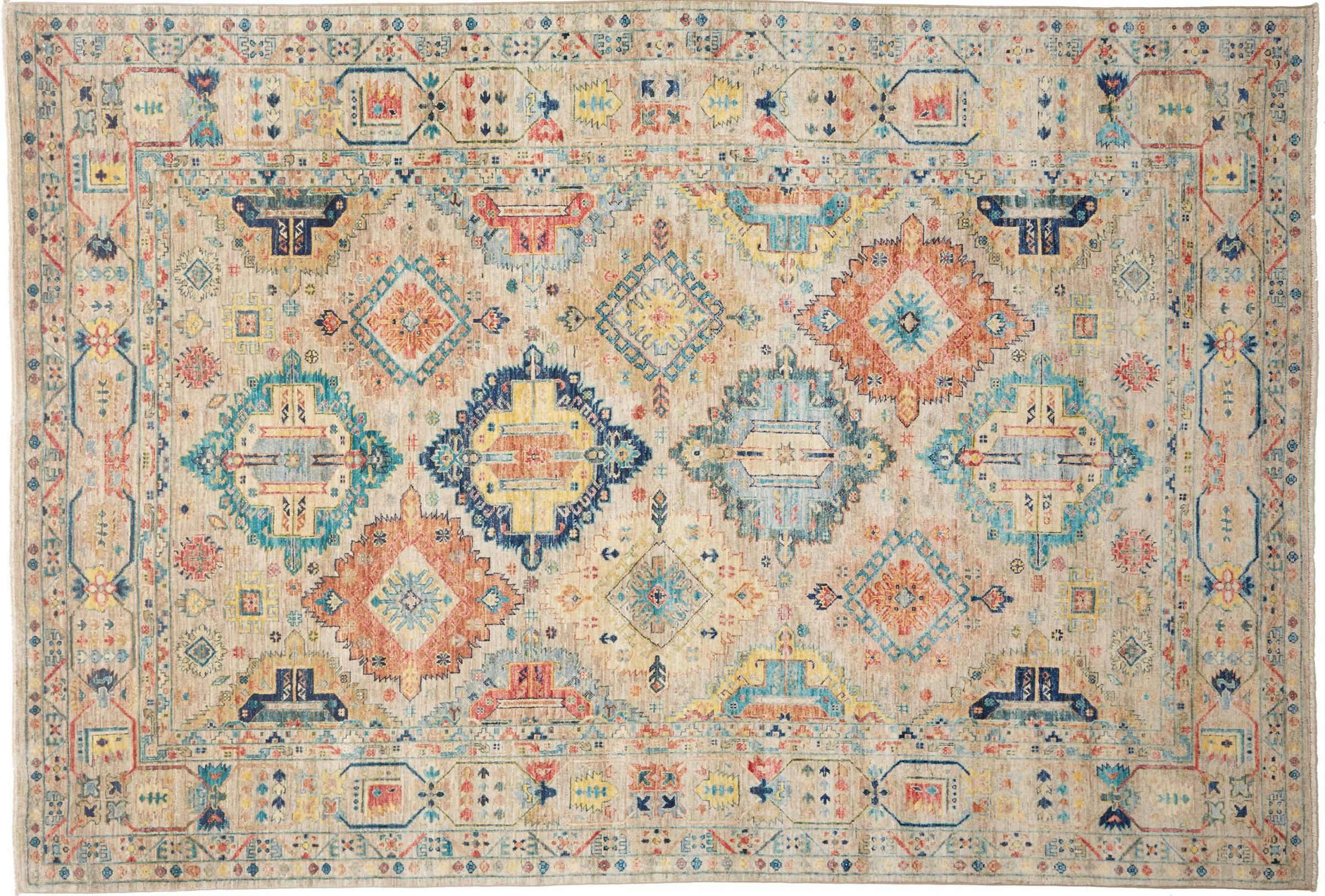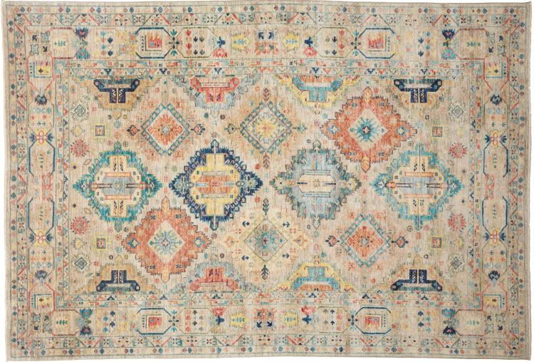 Dette Arijana-tæppe kommer i et klassisk design. Tæppet er modelleret efter ornamentikken på traditionelle persiske tæpper. Sammen med moderne designelementer og livlige farver er det blevet opdateret. Designet er meget populært i dag og vil med garanti være et absolut højdepunkt i dit hjem. Desuden er håndknyttede tæpper simpelthen uovertrufne, når det gælder kvalitet, holdbarhed og unik karakter.
