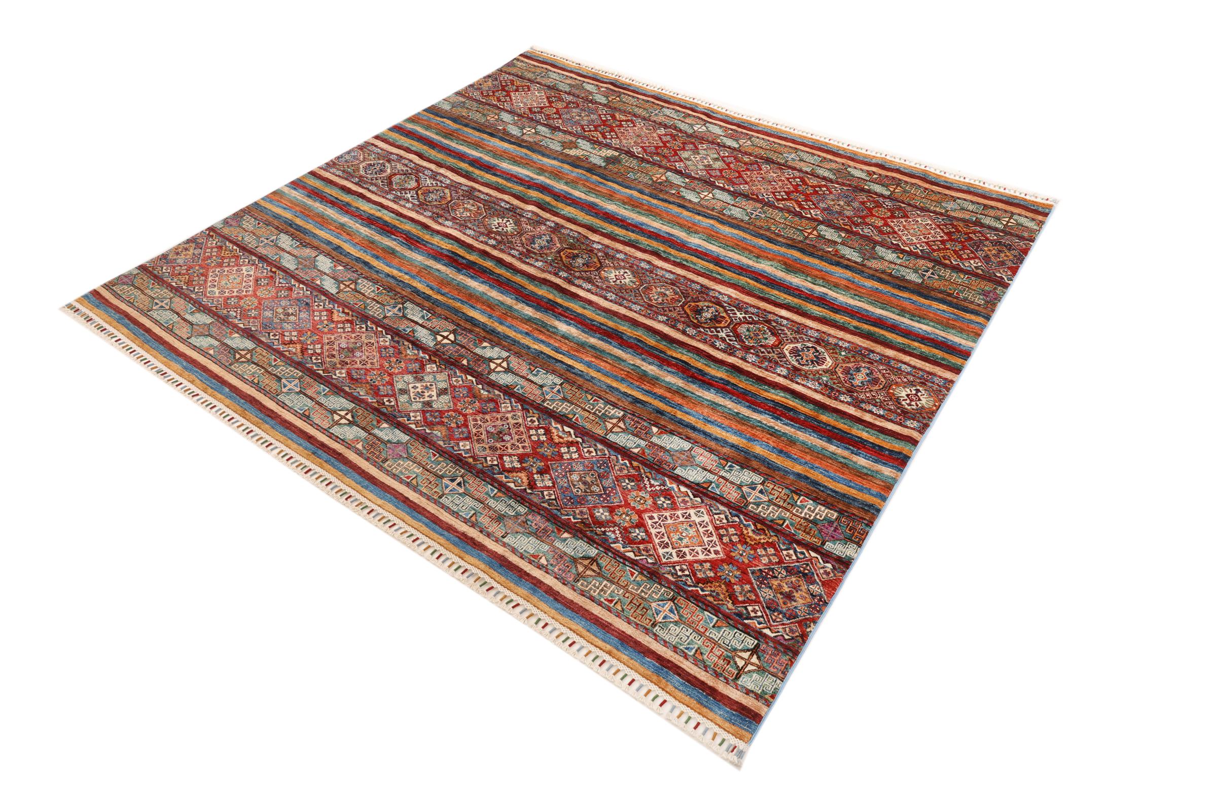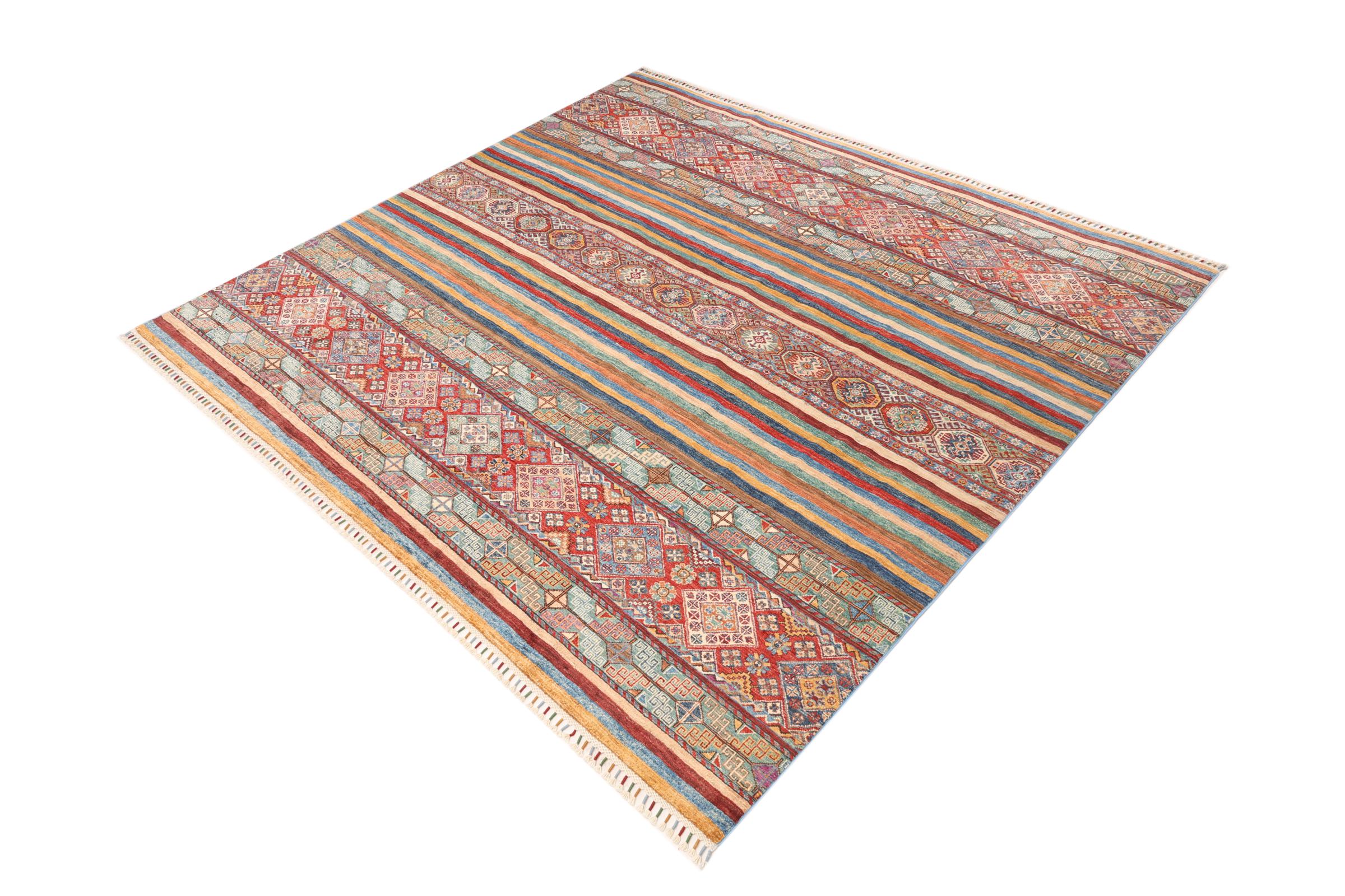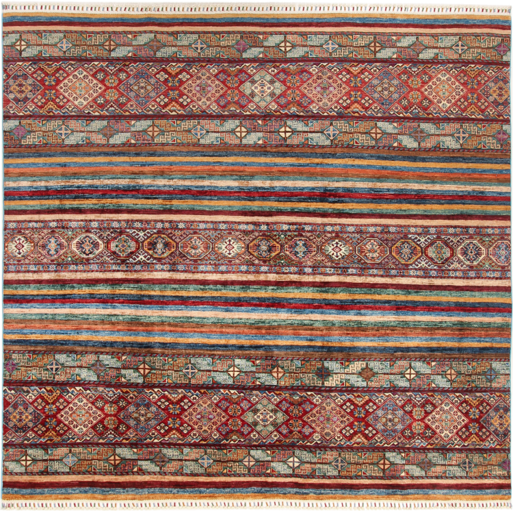 Tæppe-nr.: 21325200677773 Størrelse: 231x246 cm Tykkelse: ca. 5 mm Knuder: 128 000 - 160 000 / m² Forarbejdelse: Knyttet i hånden Luv: Håndspunden uld Kæde: Bomuld Oprindelse: Afghanistan Alder: Ny Vægt: ca. 20 kg Antal på lager: Unik