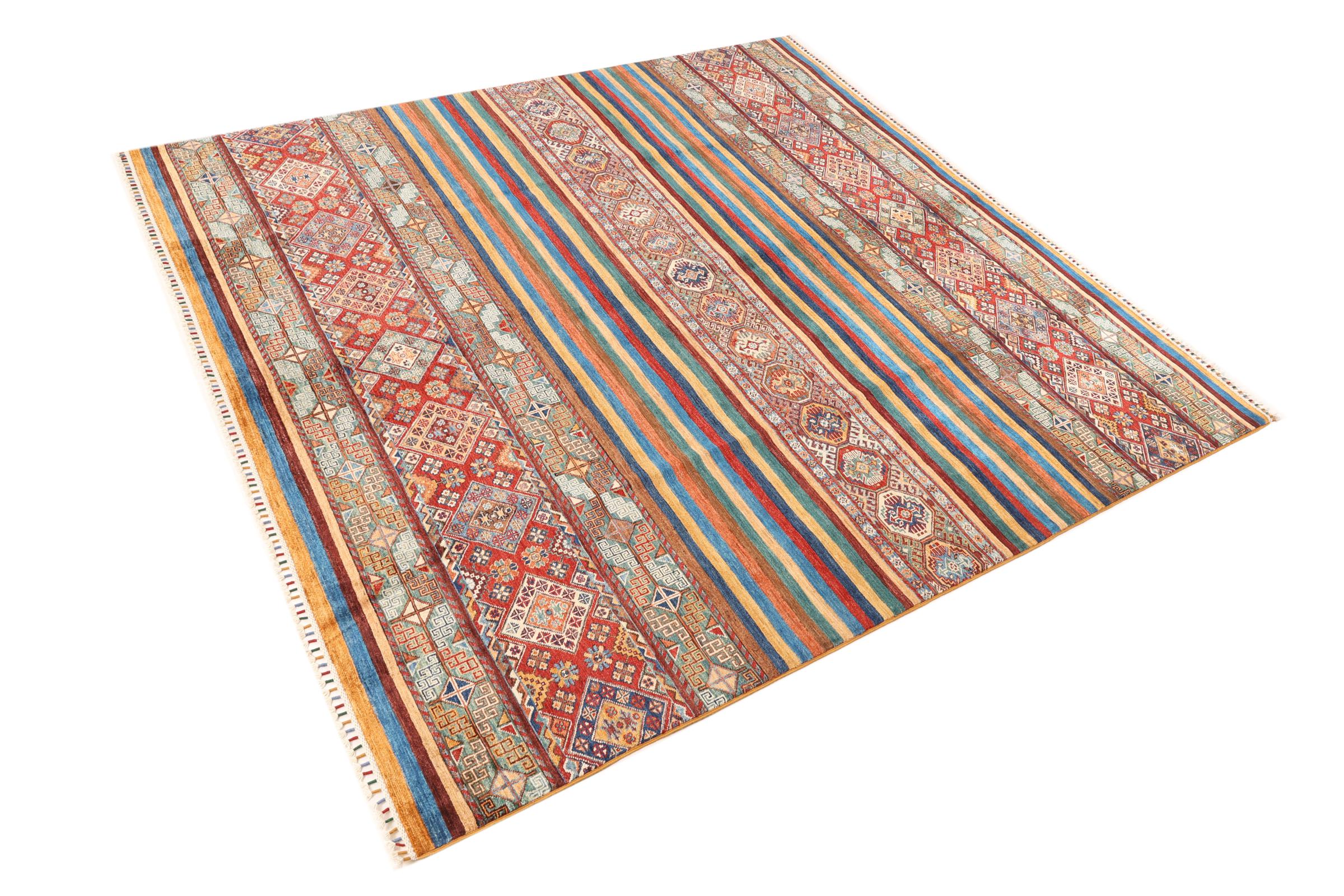 Tæppe-nr.: 213268003400421 Størrelse: 267x254 cm Tykkelse: ca. 5 mm Knuder: 128 000 - 160 000 / m² Forarbejdelse: Knyttet i hånden Luv: Håndspunden uld Kæde: Bomuld Oprindelse: Afghanistan Alder: Ny Vægt: ca. 24 kg Antal på lager: Unik