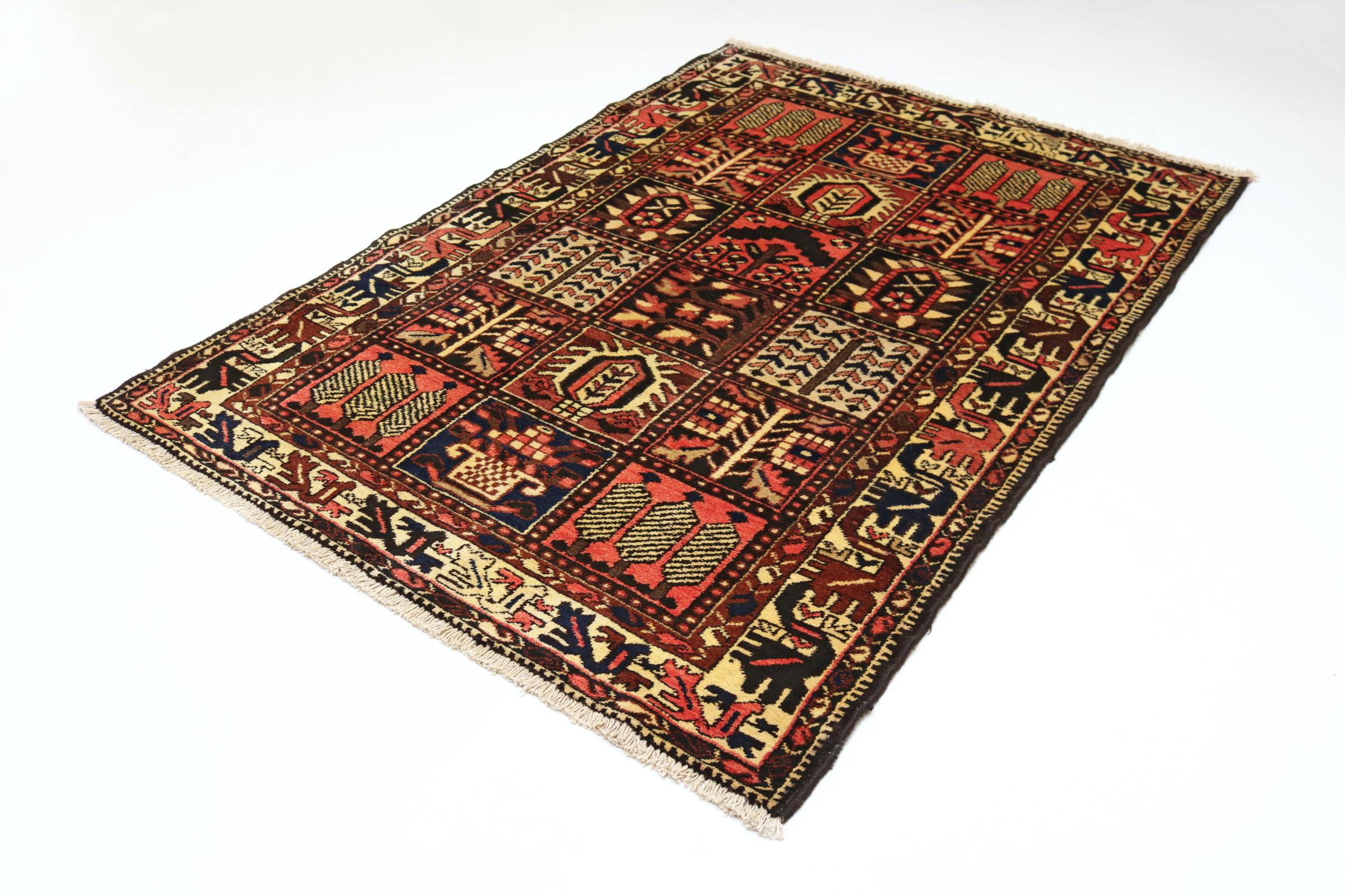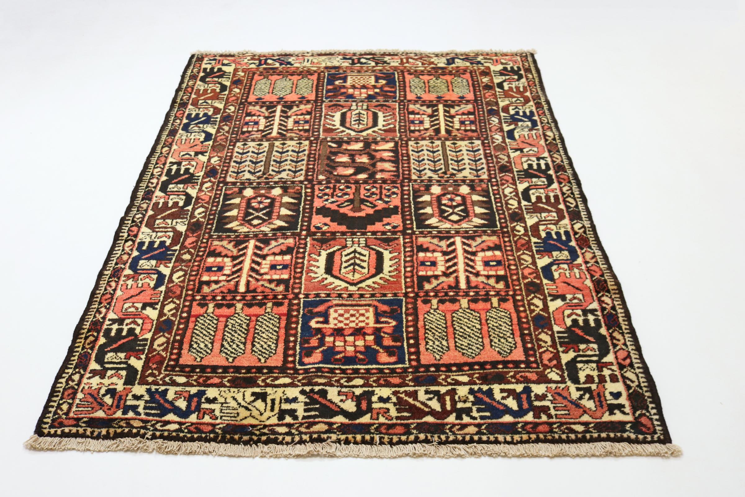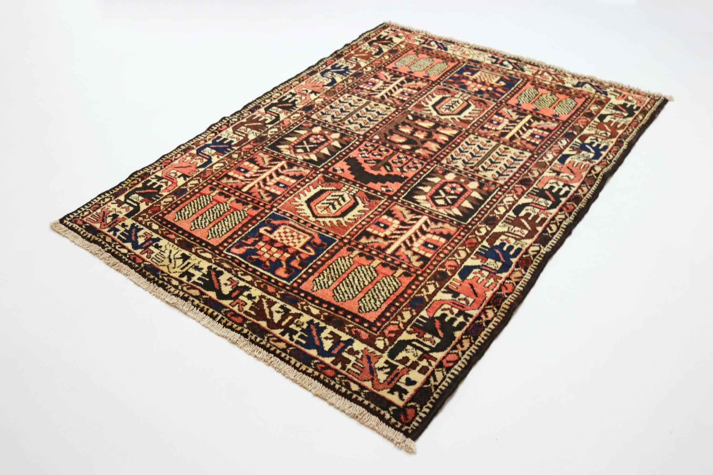 Denne persiske Bakhtiar blev håndknyttet af nomader fra Bakhtiari-stammen. Dette persiske tæppe leger med farverne på Orienten i smukke mønstre. Designet af dets ornamenter er inspireret af persiske haver. Den såkaldte traditionelle havedesign er blevet meget populær i den vestlige verden gennem årene. Dens høje knobetæthed i kombination med det stærke garn lover langvarig glæde af persisk tæppekunst.