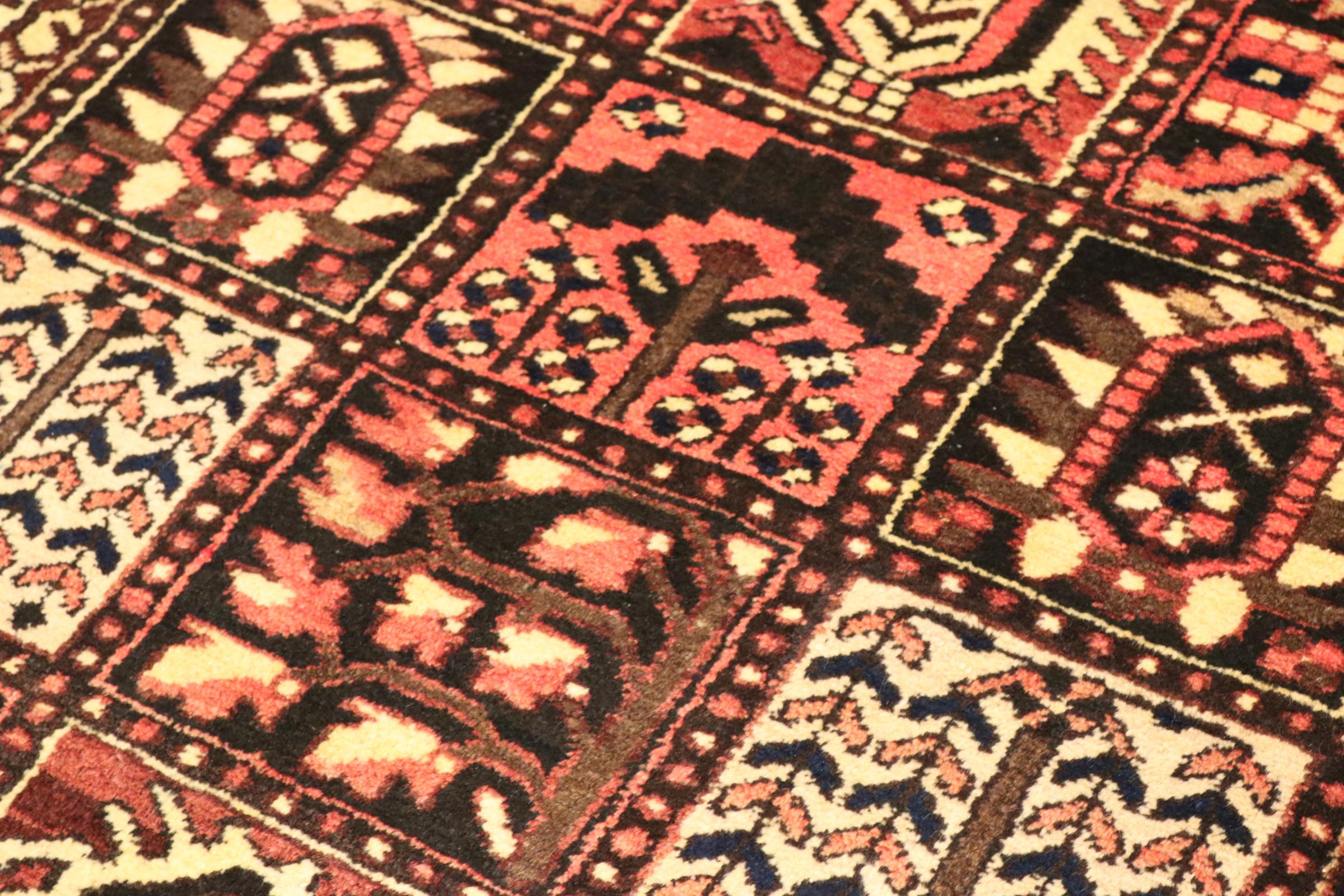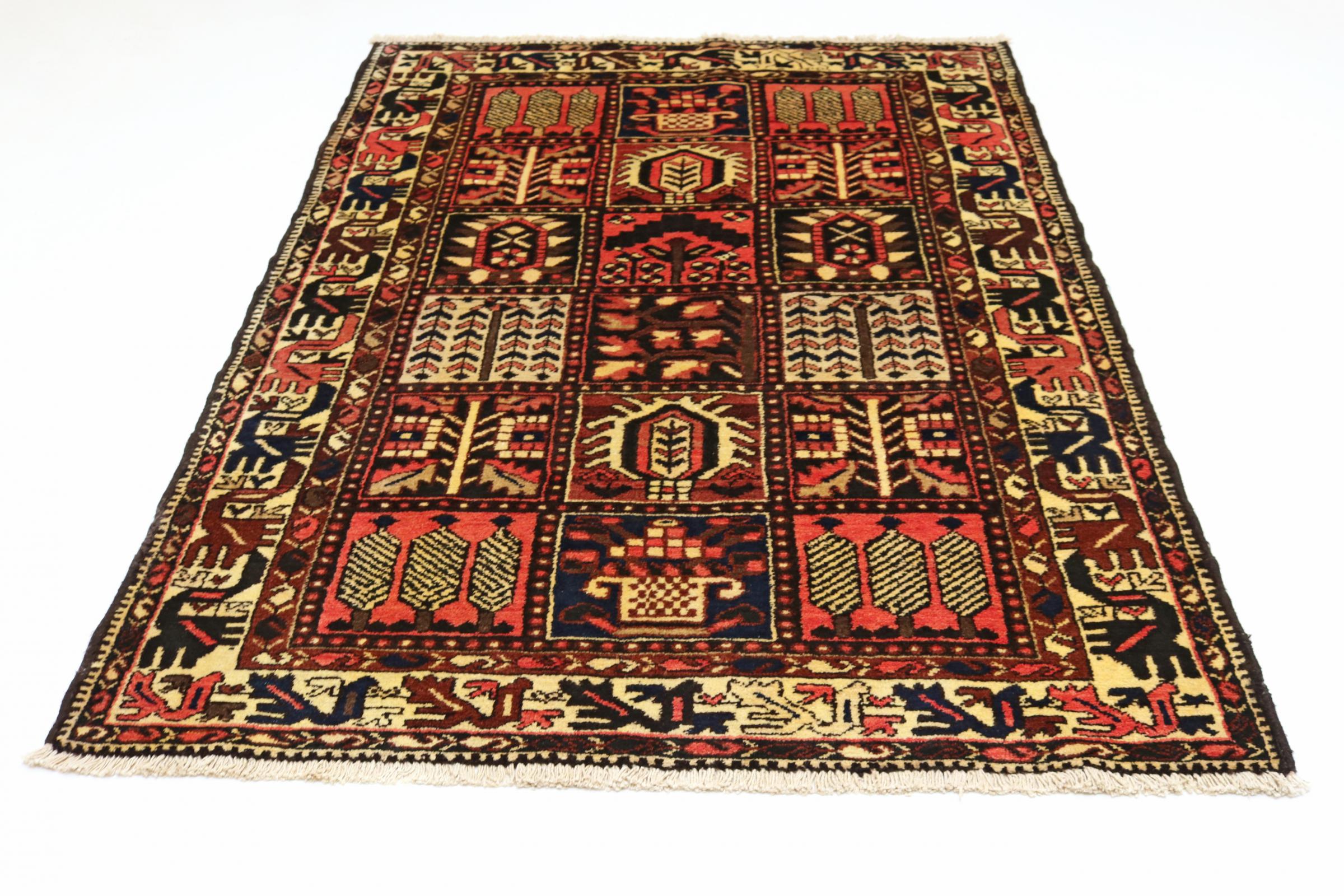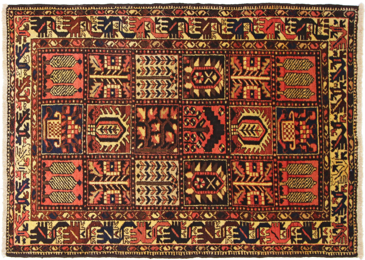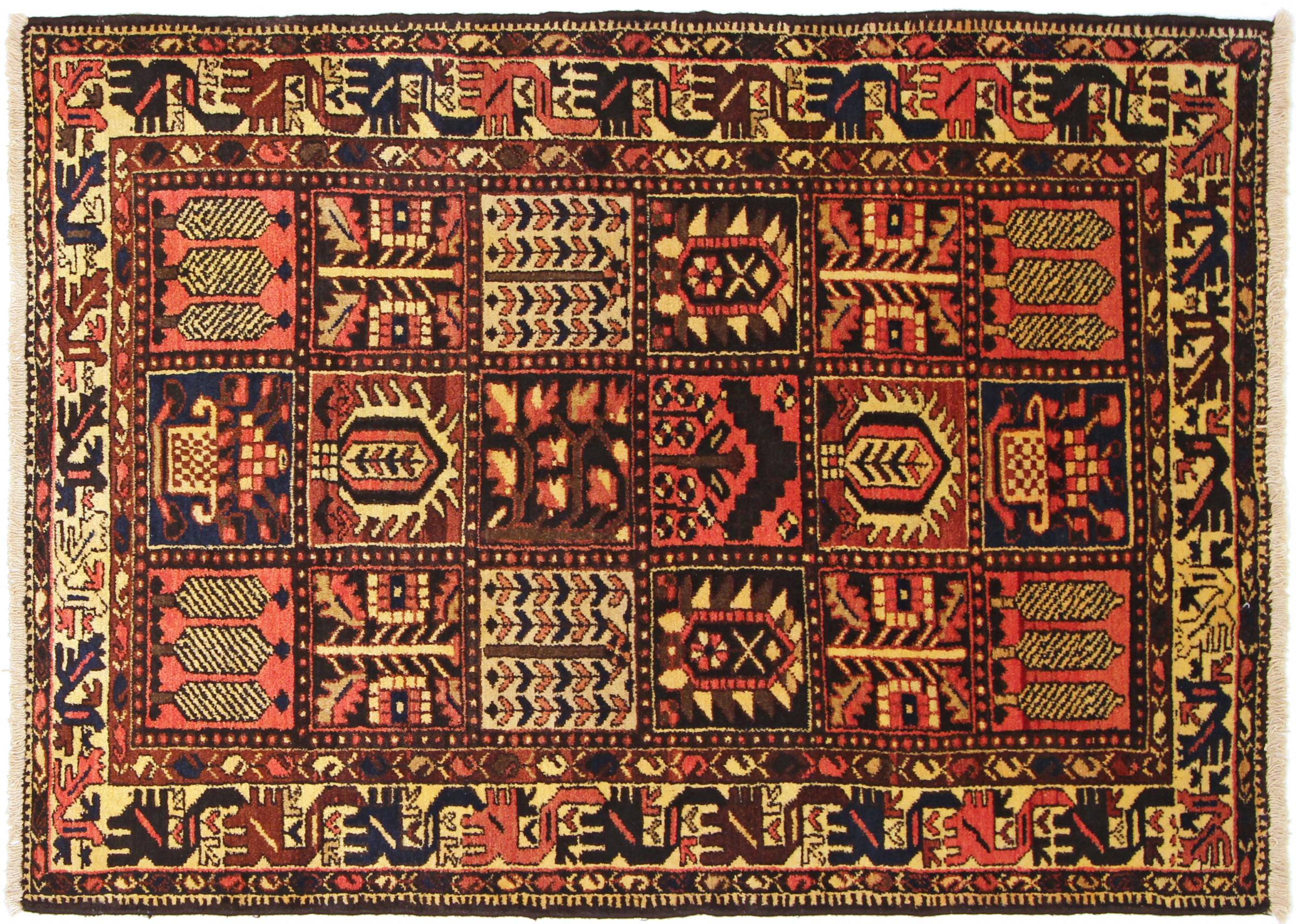 Denne persiske Bakhtiar blev håndknyttet af nomader fra Bakhtiari-stammen. Dette persiske tæppe leger med farverne på Orienten i smukke mønstre. Designet af dets ornamenter er inspireret af persiske haver. Den såkaldte traditionelle havedesign er blevet meget populær i den vestlige verden gennem årene. Dens høje knobetæthed i kombination med det stærke garn lover langvarig glæde af persisk tæppekunst.