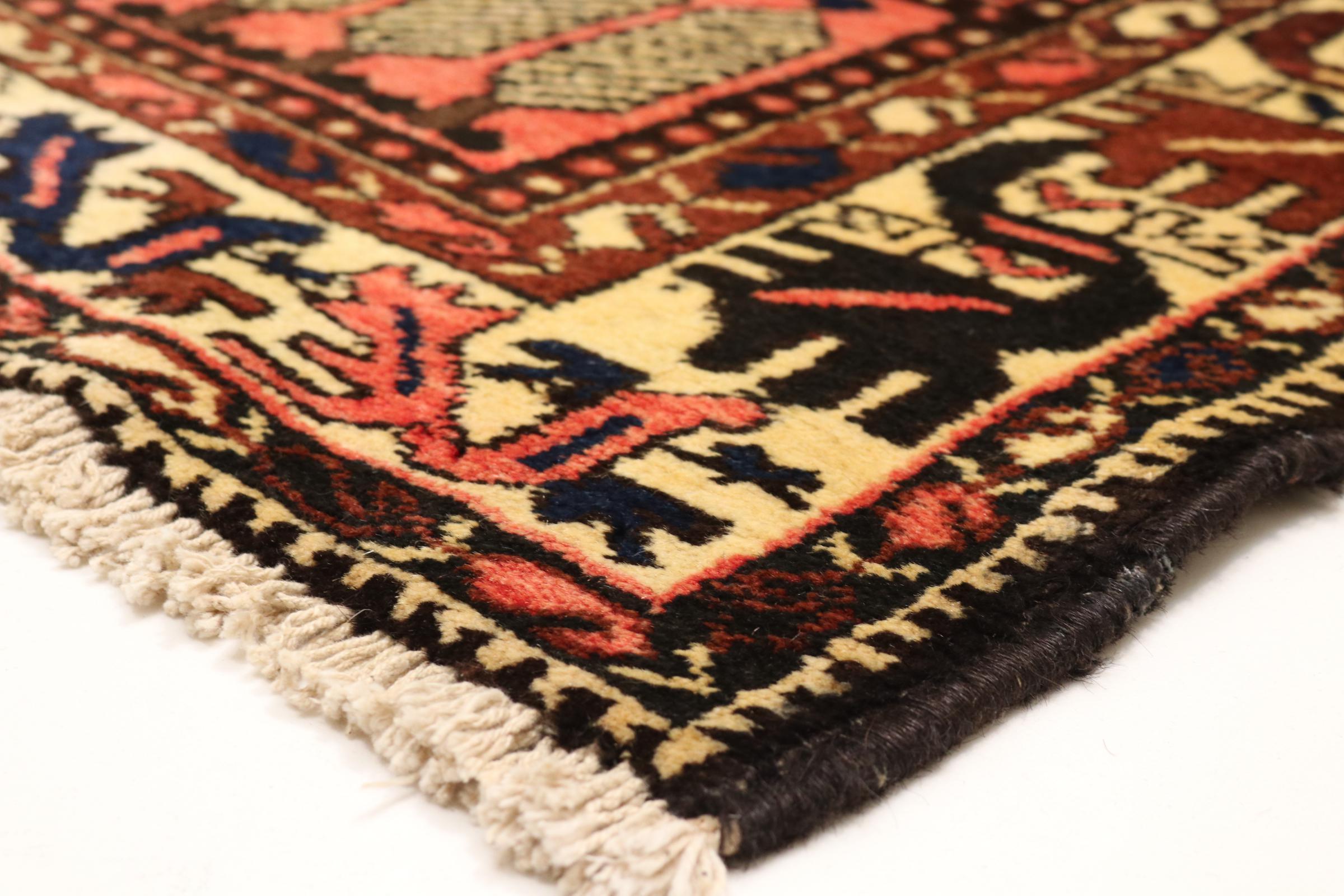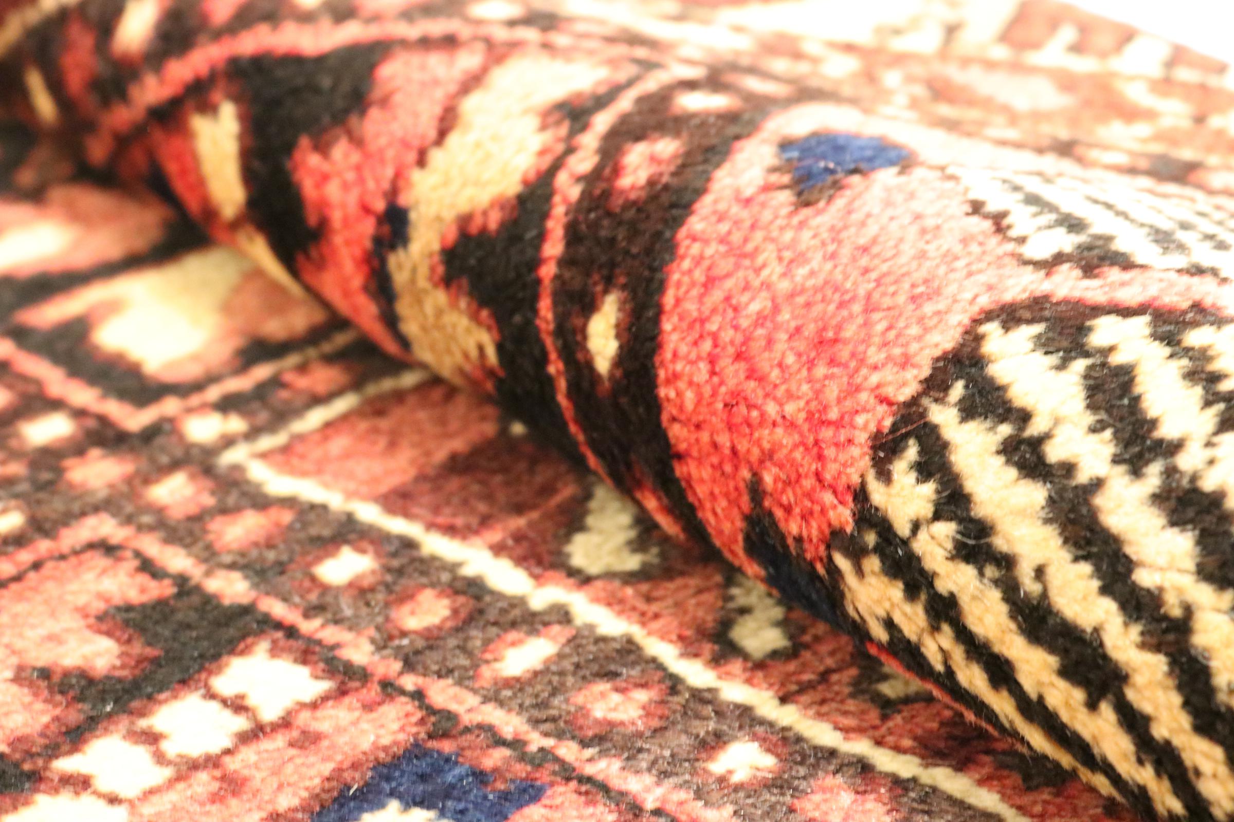 Dette tæppe hører til landsby- og nomadetæpper fra Iran, tidligere Persien. Denne type tæppe er håndknyttet i små byer og landsbyer i den gamle tradition. Nomader fremstiller også persiske tæpper under den åbne himmel. Tæpperne er knudt helt fra hovedet uden en skabelon. De er kendetegnet ved klassiske ornamenter, der er opstillet i lineære og geometriske mønstre. Takket være deres kulturelle og traditionelle oprindelse har disse tæpper en unik karakter, der udgør det gamle Persien.