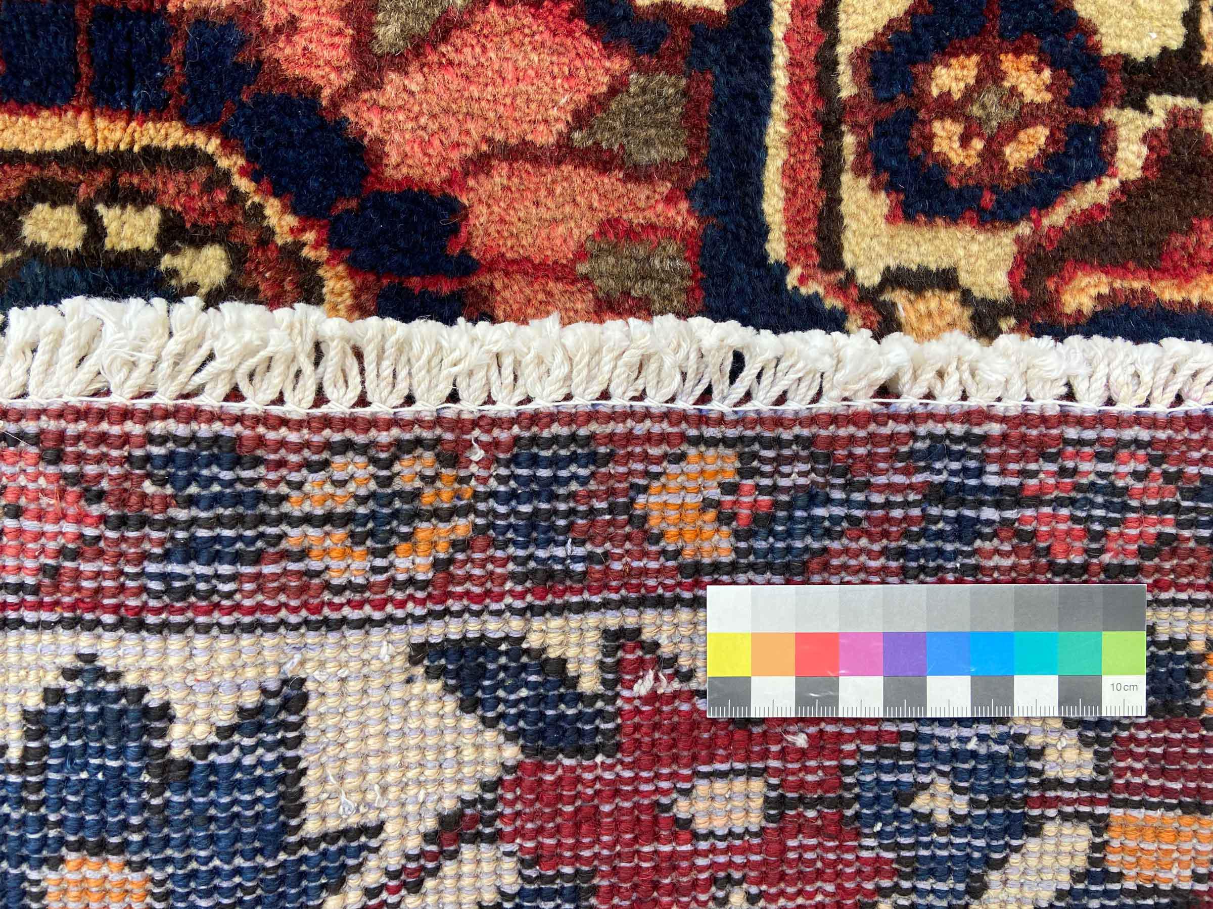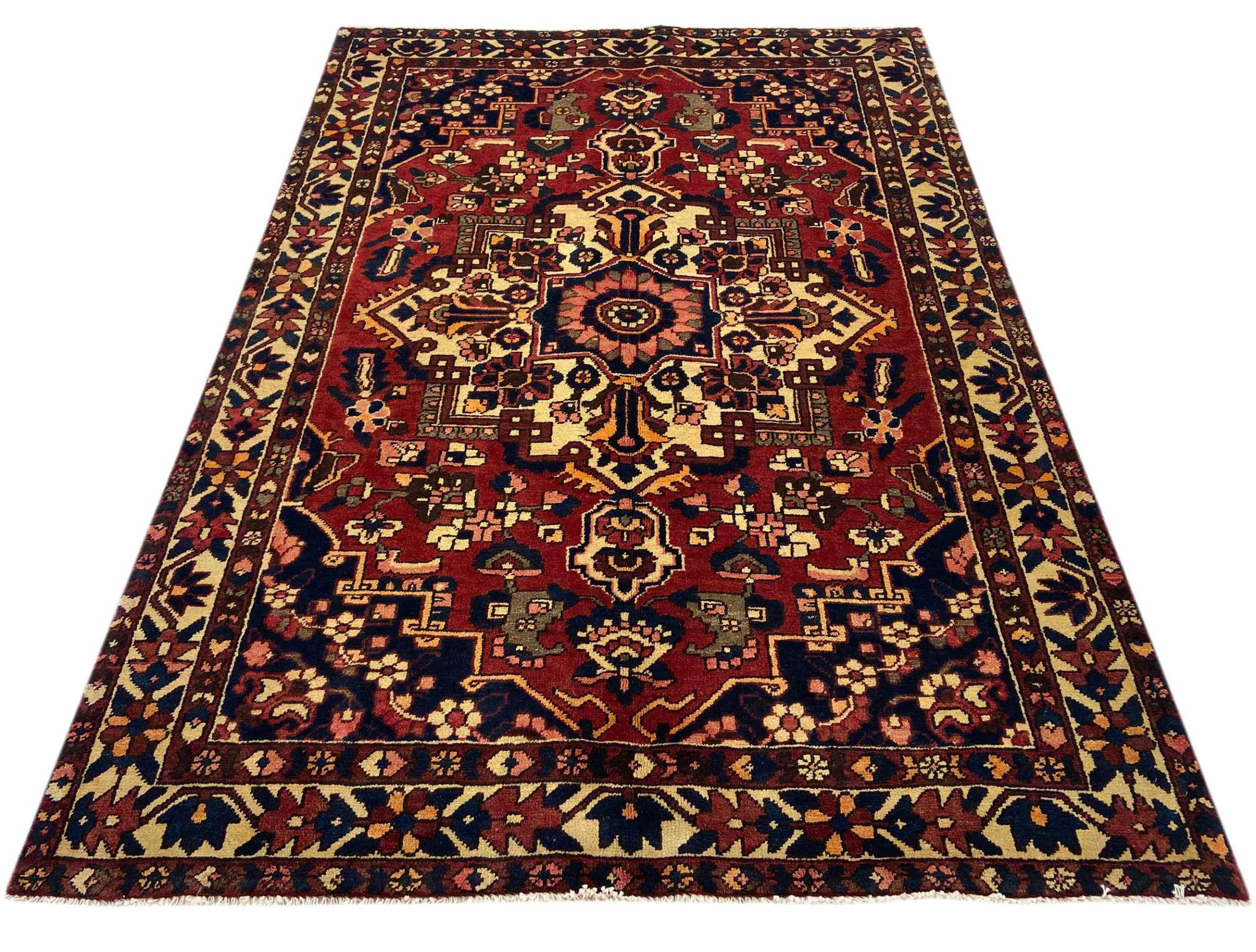 Denne persiske Bakhtiar blev håndknyttet af nomader fra Bakhtiari-stammen. Dette persiske tæppe leger med farverne på Orienten i smukke mønstre. Designet af dets ornamenter er inspireret af persiske haver. Den såkaldte traditionelle havedesign er blevet meget populær i den vestlige verden gennem årene. Dens høje knobetæthed i kombination med det stærke garn lover langvarig glæde af persisk tæppekunst.