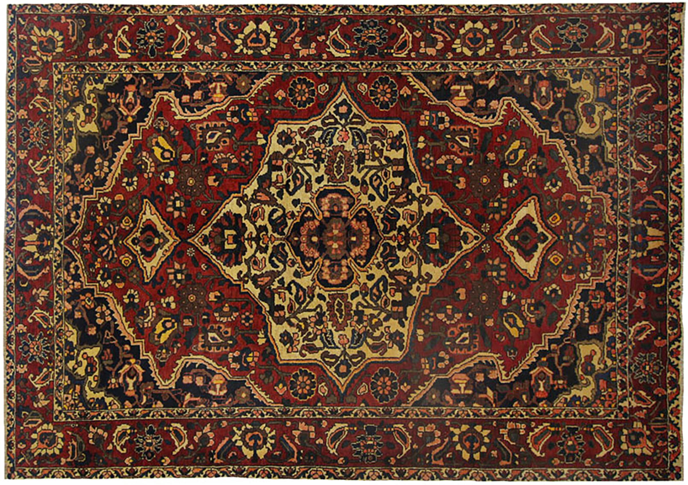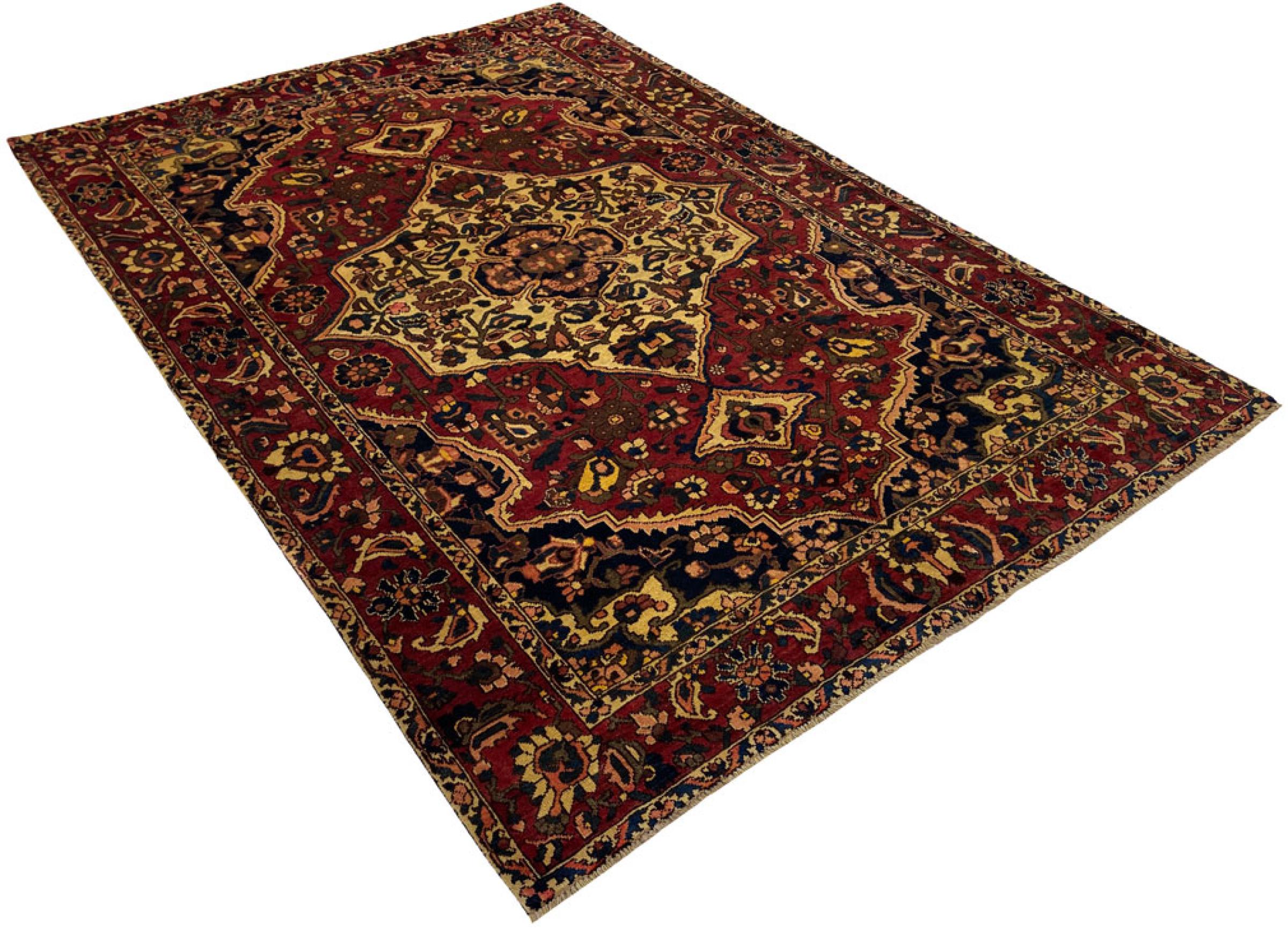 Denne persiske Bakhtiar blev håndknyttet af nomader fra Bakhtiari-stammen. Dette persiske tæppe leger med farverne på Orienten i smukke mønstre. Designet af dets ornamenter er inspireret af persiske haver. Den såkaldte traditionelle havedesign er blevet meget populær i den vestlige verden gennem årene. Dens høje knobetæthed i kombination med det stærke garn lover langvarig glæde af persisk tæppekunst.