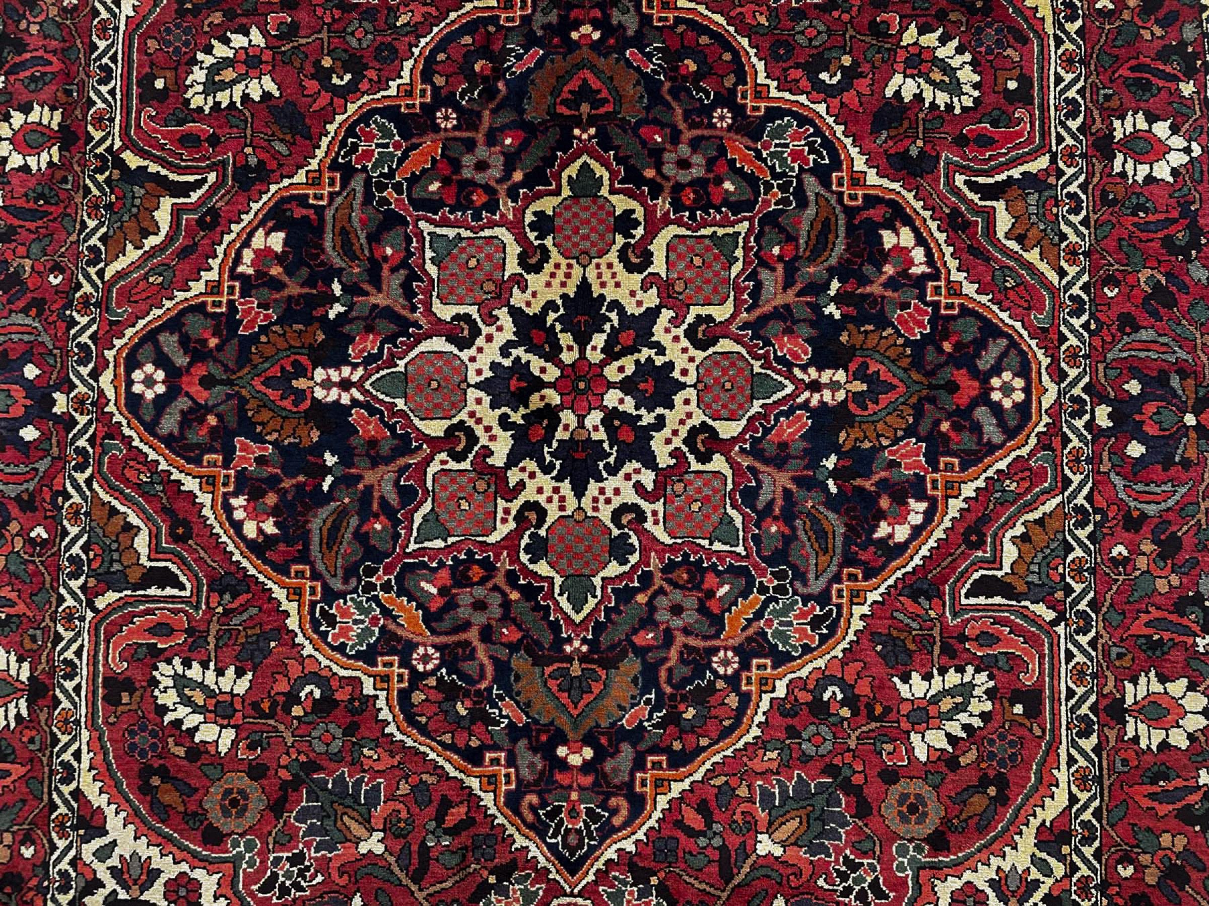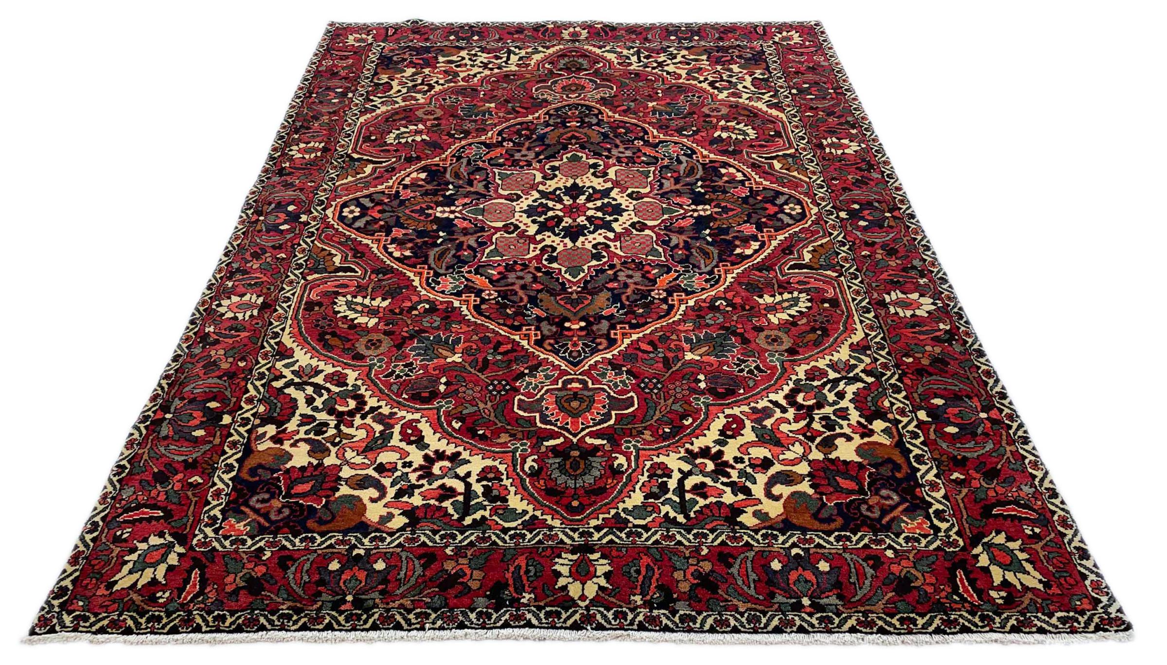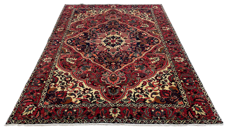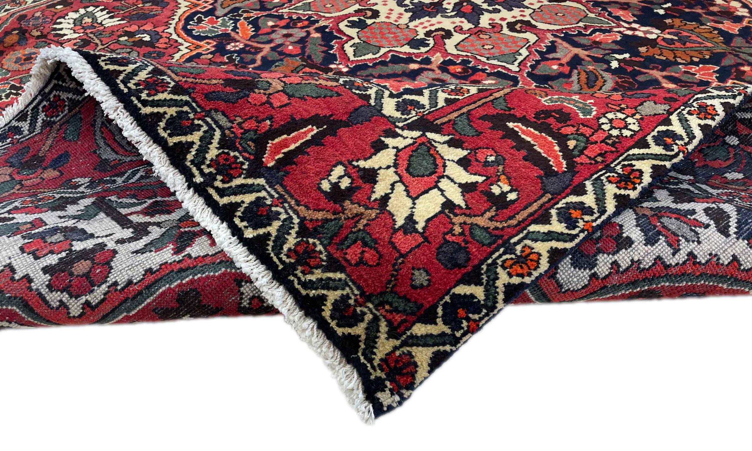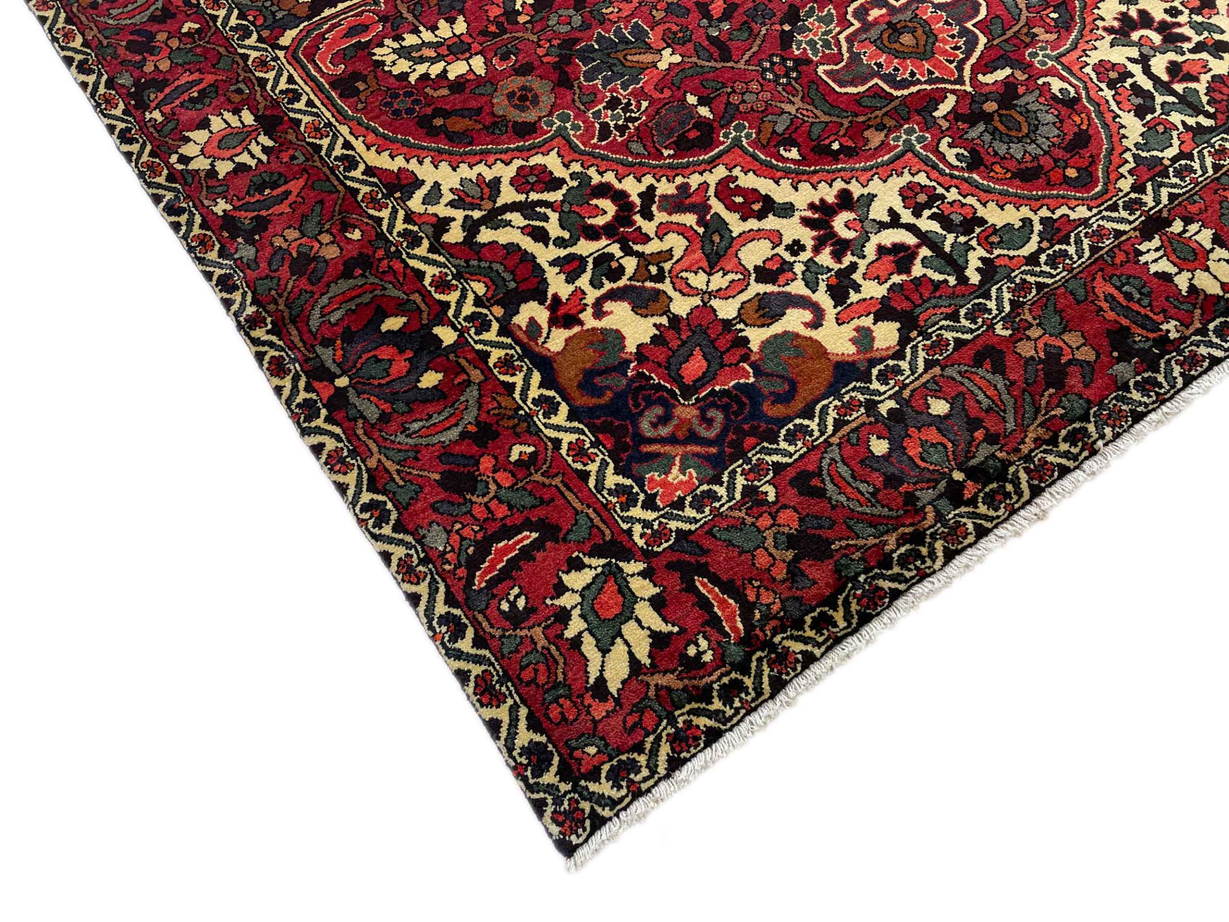 Denne persiske Bakhtiar blev håndknyttet af nomader fra Bakhtiari-stammen. Dette persiske tæppe leger med farverne på Orienten i smukke mønstre. Designet af dets ornamenter er inspireret af persiske haver. Den såkaldte traditionelle havedesign er blevet meget populær i den vestlige verden gennem årene. Dens høje knobetæthed i kombination med det stærke garn lover langvarig glæde af persisk tæppekunst.