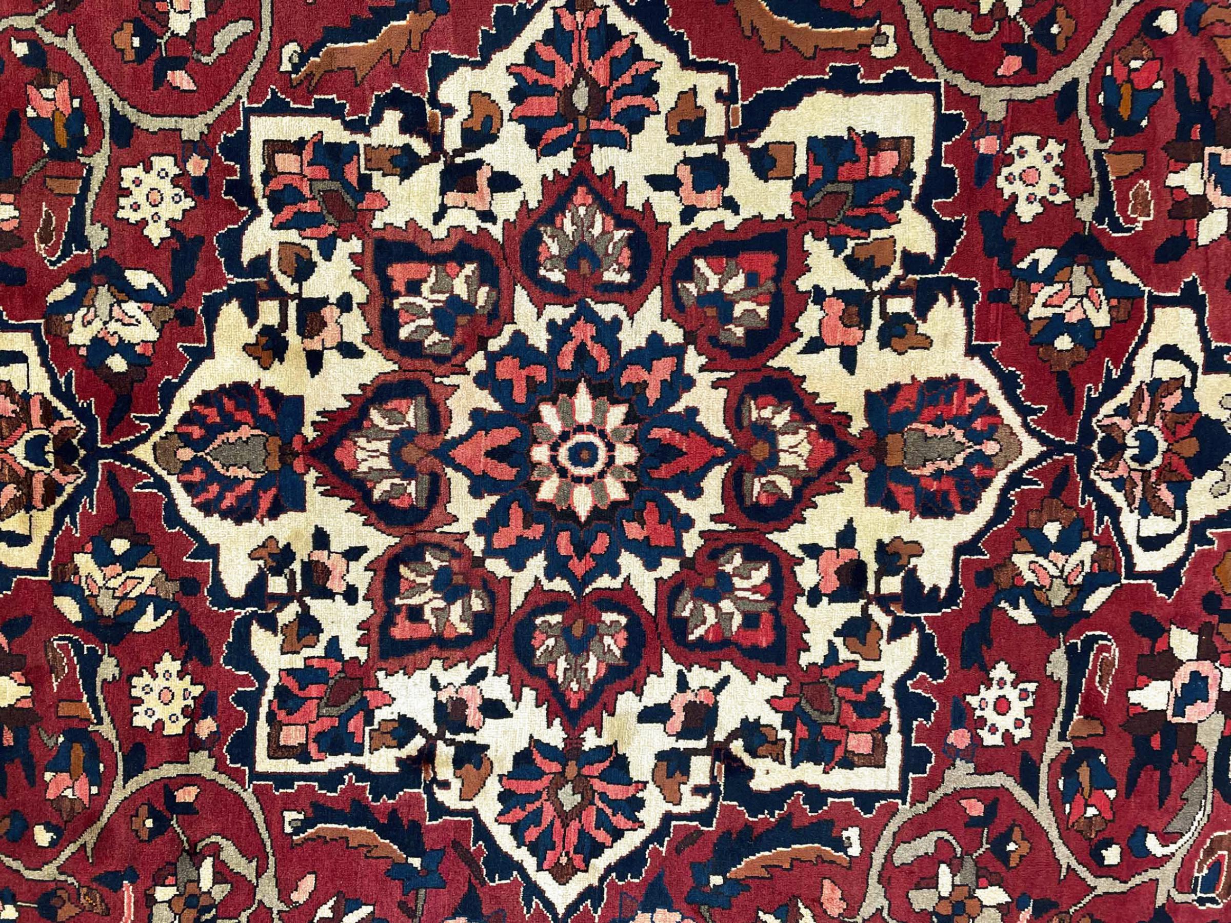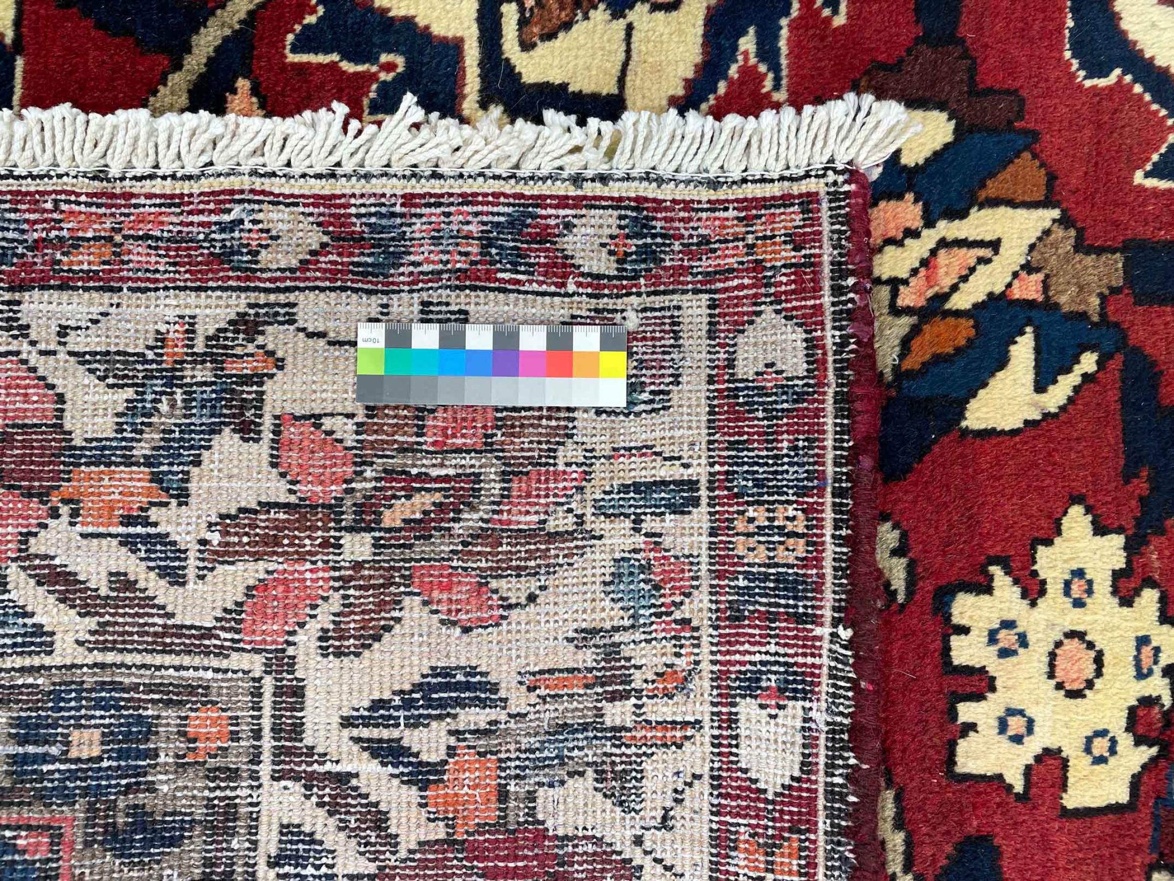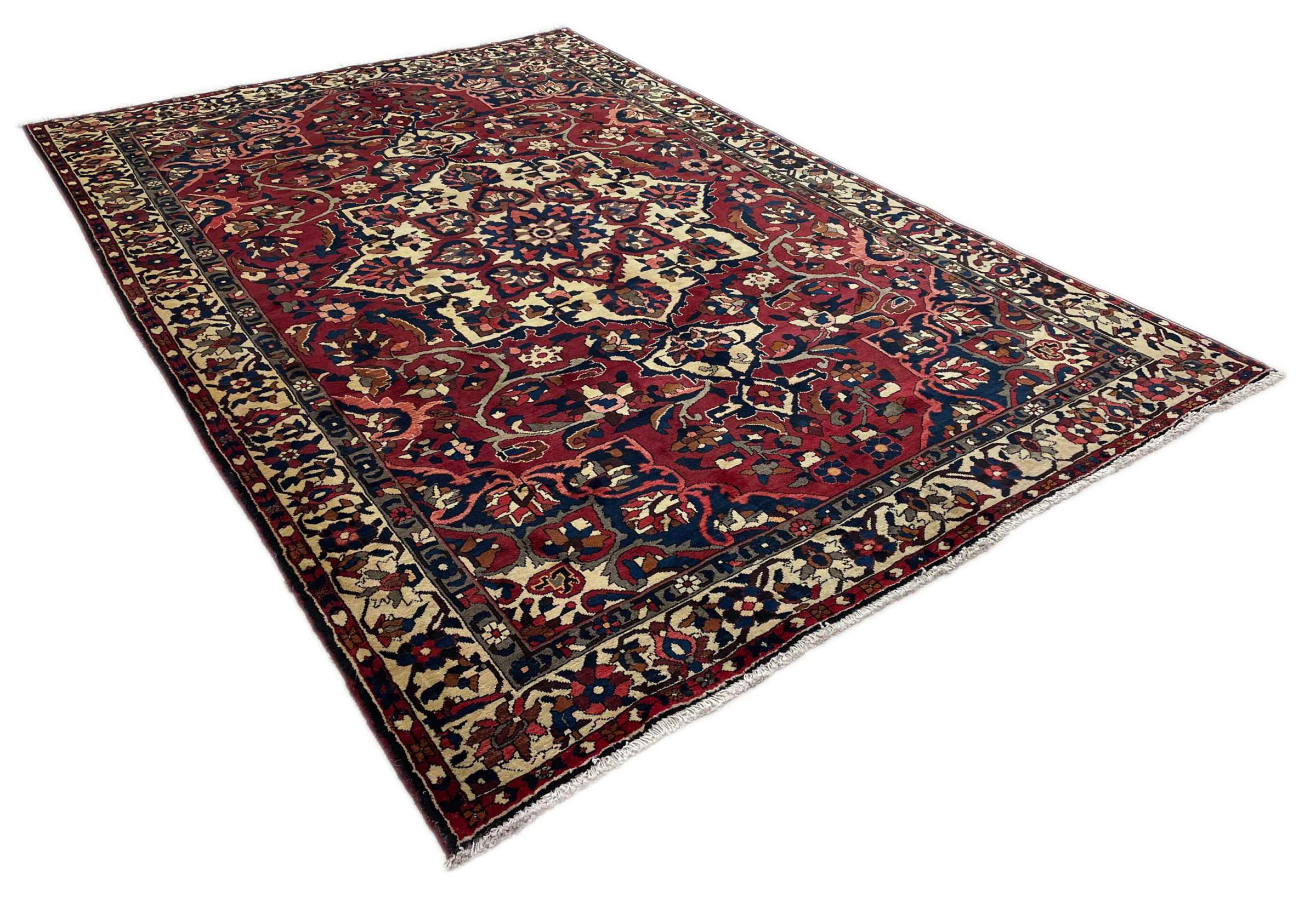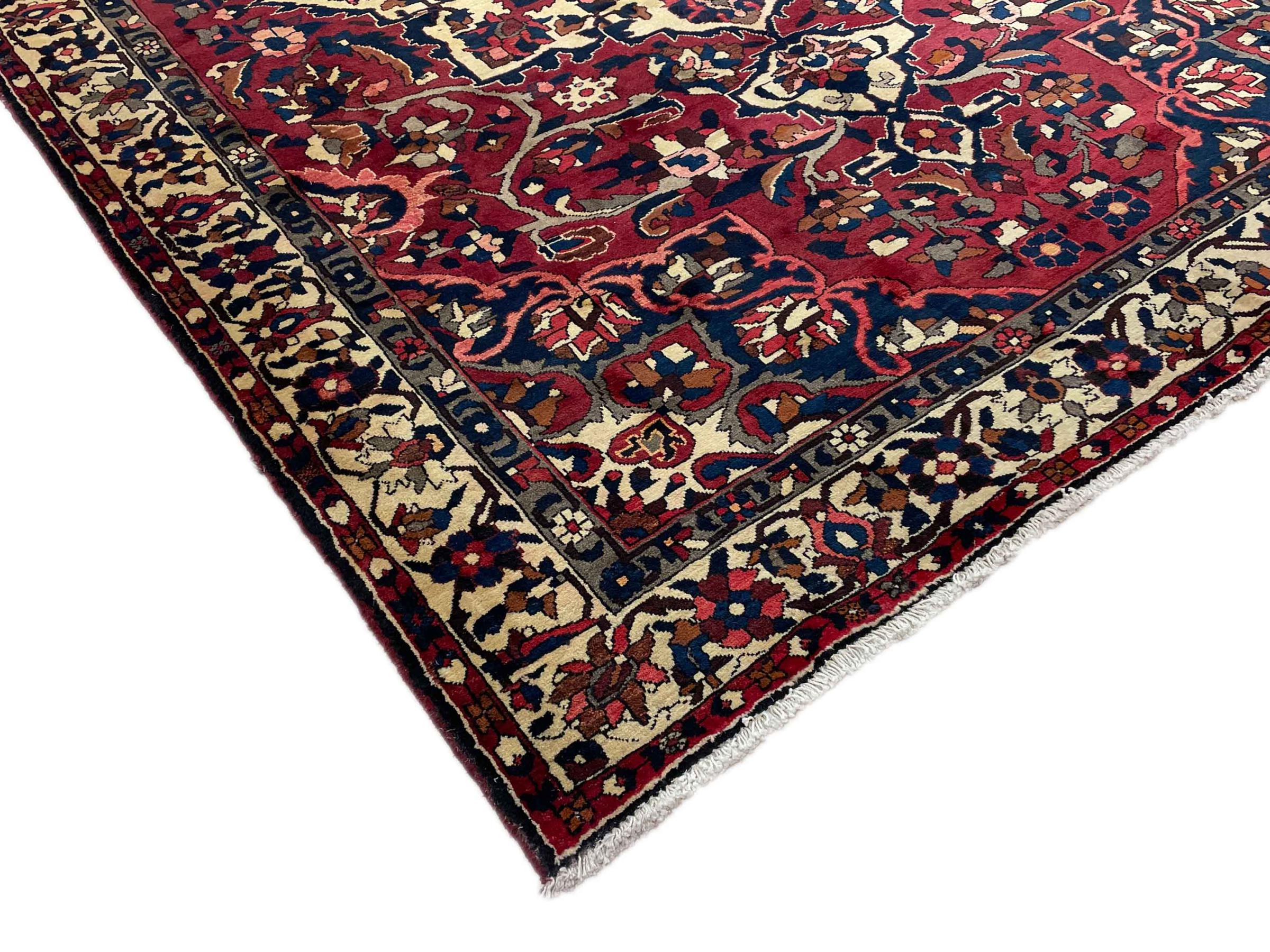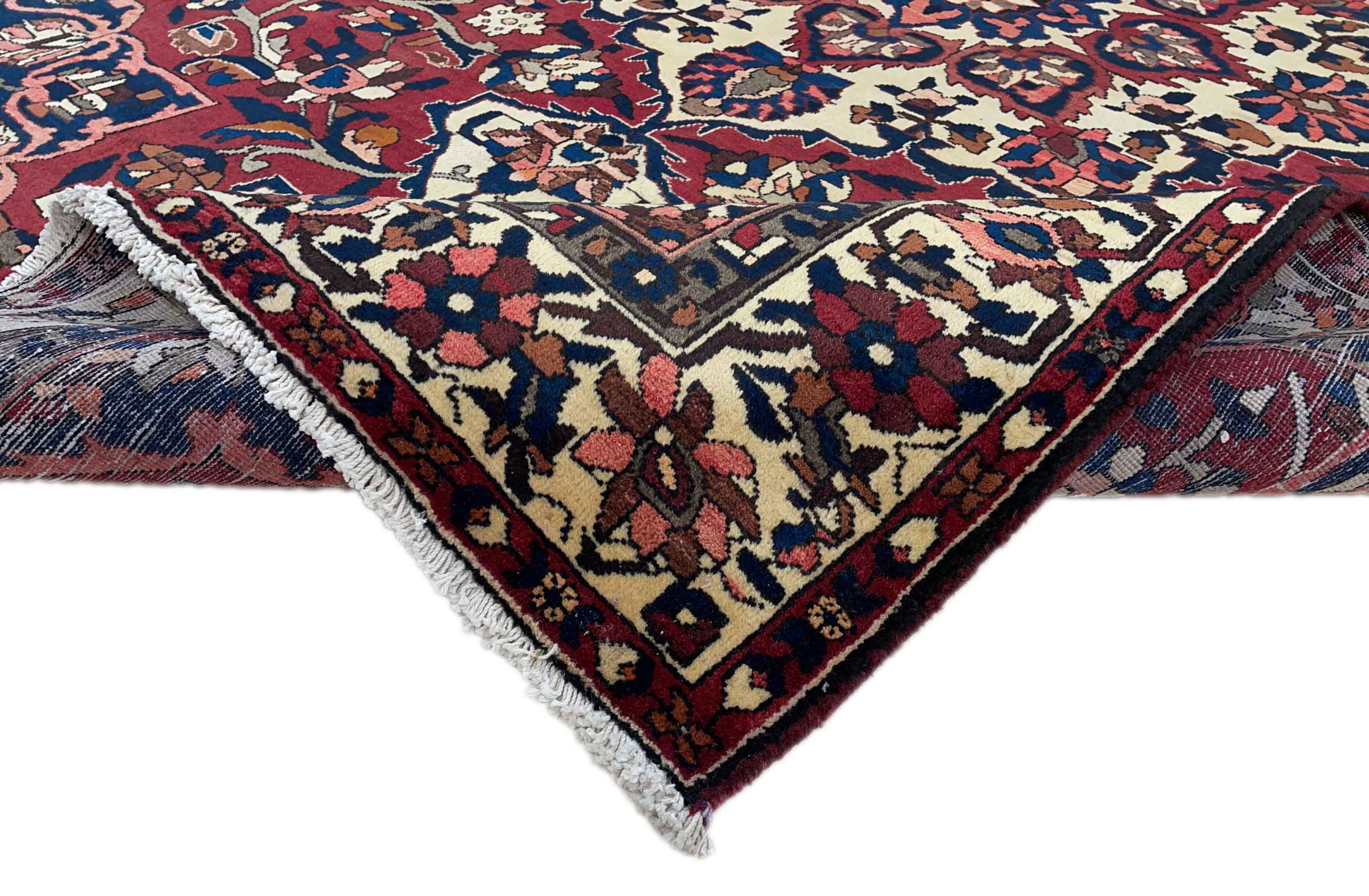 Denne persiske Bakhtiar blev håndknyttet af nomader fra Bakhtiari-stammen. Dette persiske tæppe leger med farverne på Orienten i smukke mønstre. Designet af dets ornamenter er inspireret af persiske haver. Den såkaldte traditionelle havedesign er blevet meget populær i den vestlige verden gennem årene. Dens høje knobetæthed i kombination med det stærke garn lover langvarig glæde af persisk tæppekunst.
