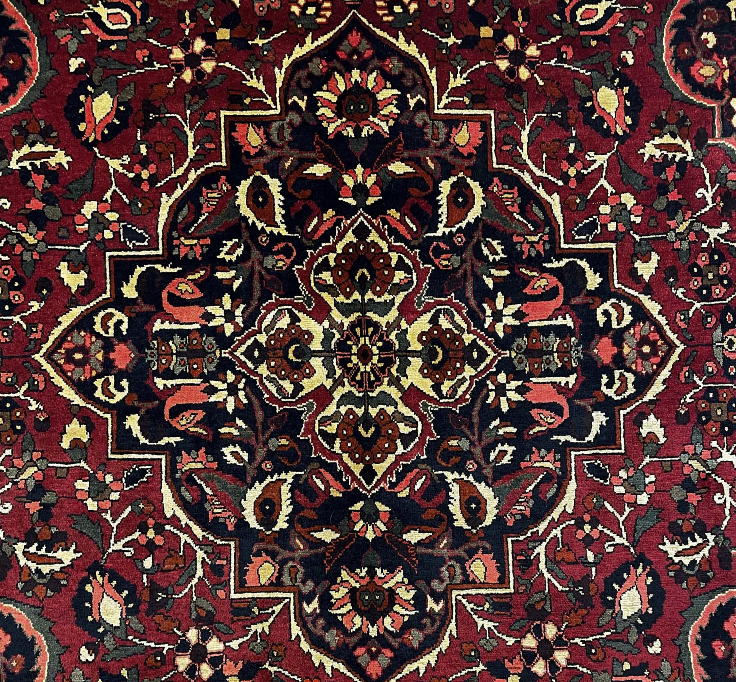 Denne persiske Bakhtiar blev håndknyttet af nomader fra Bakhtiari-stammen. Dette persiske tæppe leger med farverne på Orienten i smukke mønstre. Designet af dets ornamenter er inspireret af persiske haver. Den såkaldte traditionelle havedesign er blevet meget populær i den vestlige verden gennem årene. Dens høje knobetæthed i kombination med det stærke garn lover langvarig glæde af persisk tæppekunst.