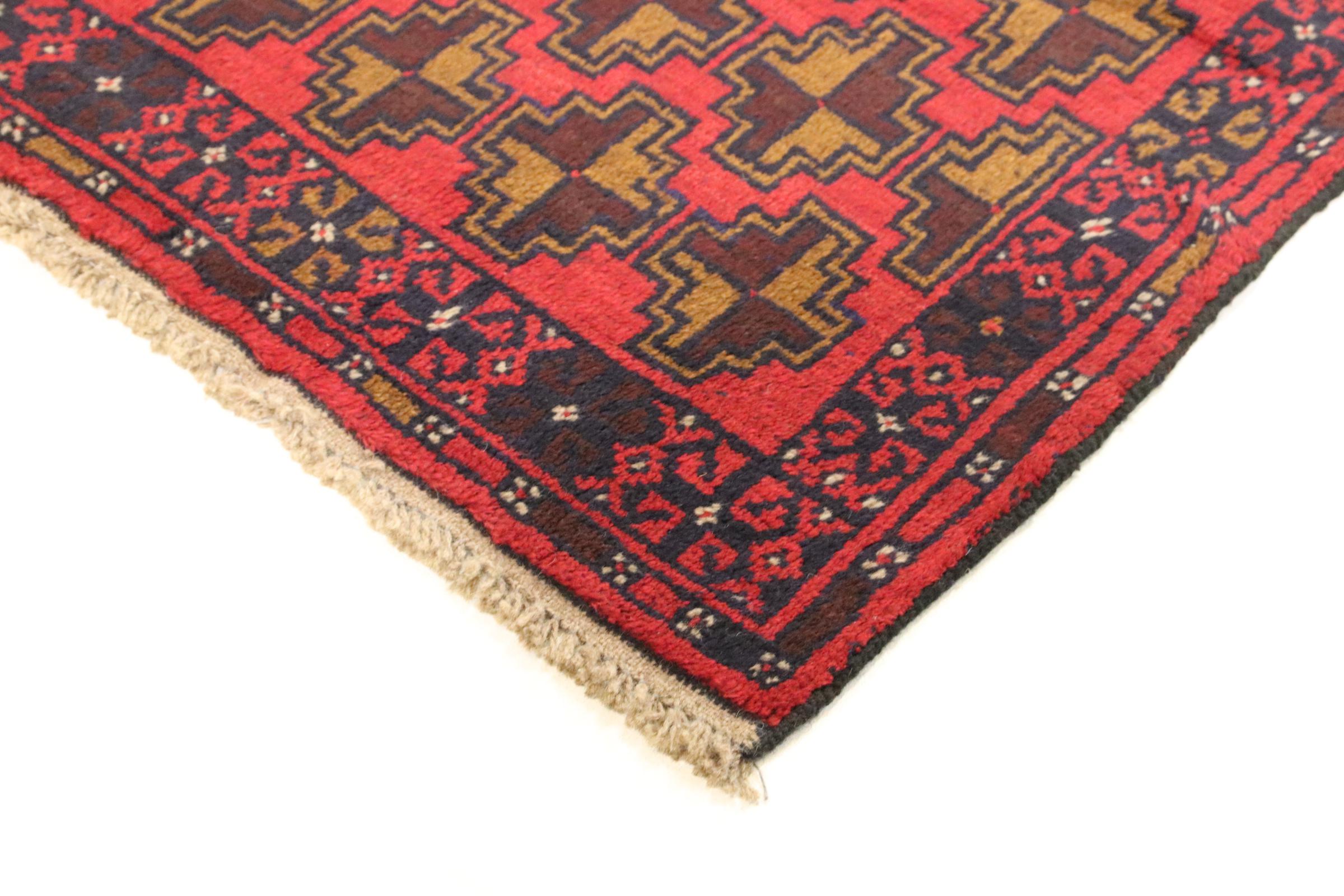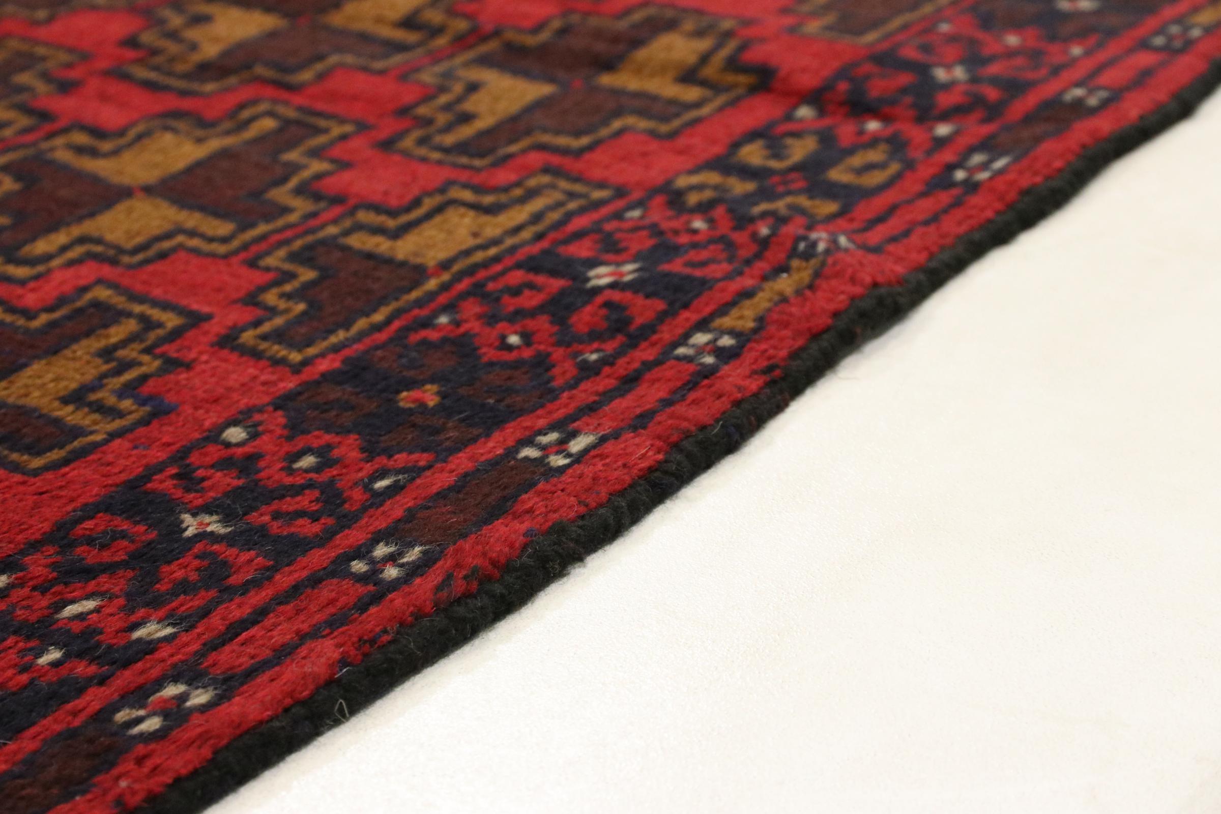 Dette baluch-tæppe er et vidunderligt eksempel på ægte nomadekunst. Det persiske tæppe er produceret i det iransk-afghanske grænseområde og er imponerende takket være den tætte, asymmetriske vævning. De livlige mønstre gør det til en sand fryd for øjet. De mørke farver er typiske og spreder en behagelig varme. Det smukke naturgarn udstråler kvalitet og gør det ekstremt slidstærkt. De lige linjer er typiske for dette tæppe, hvilket gør det til et umiskendeligt nomadetæppe.