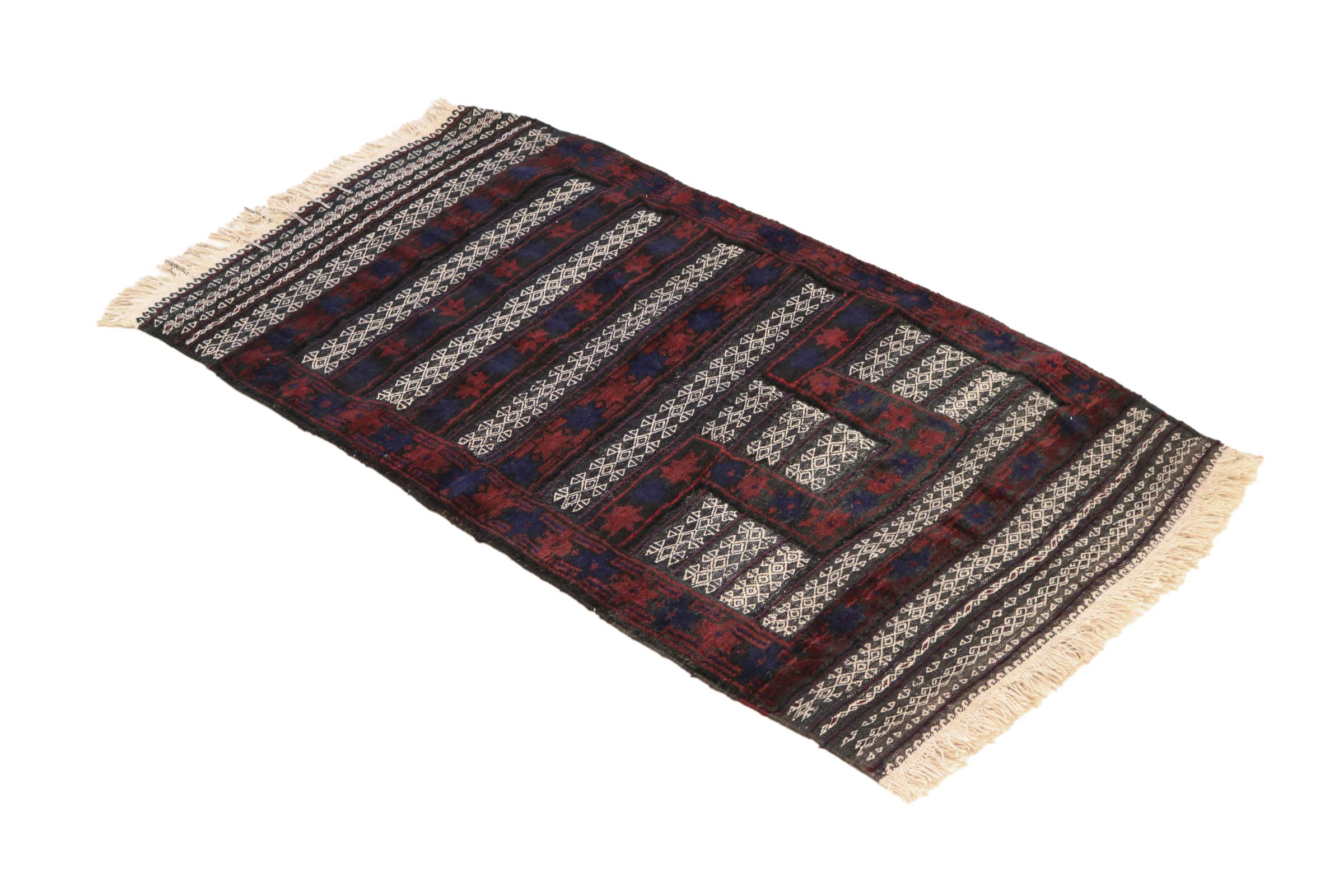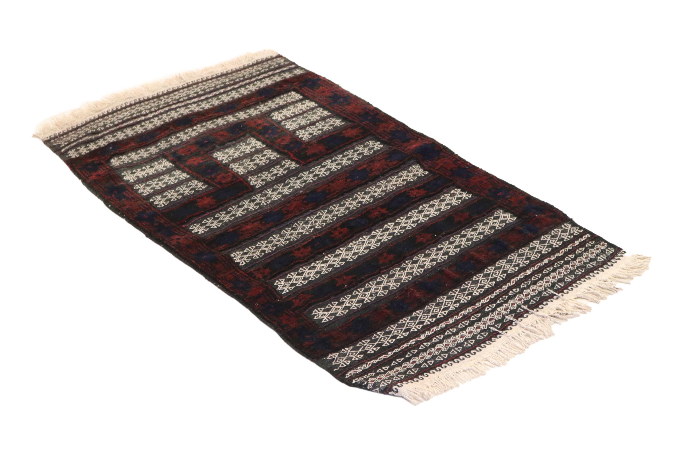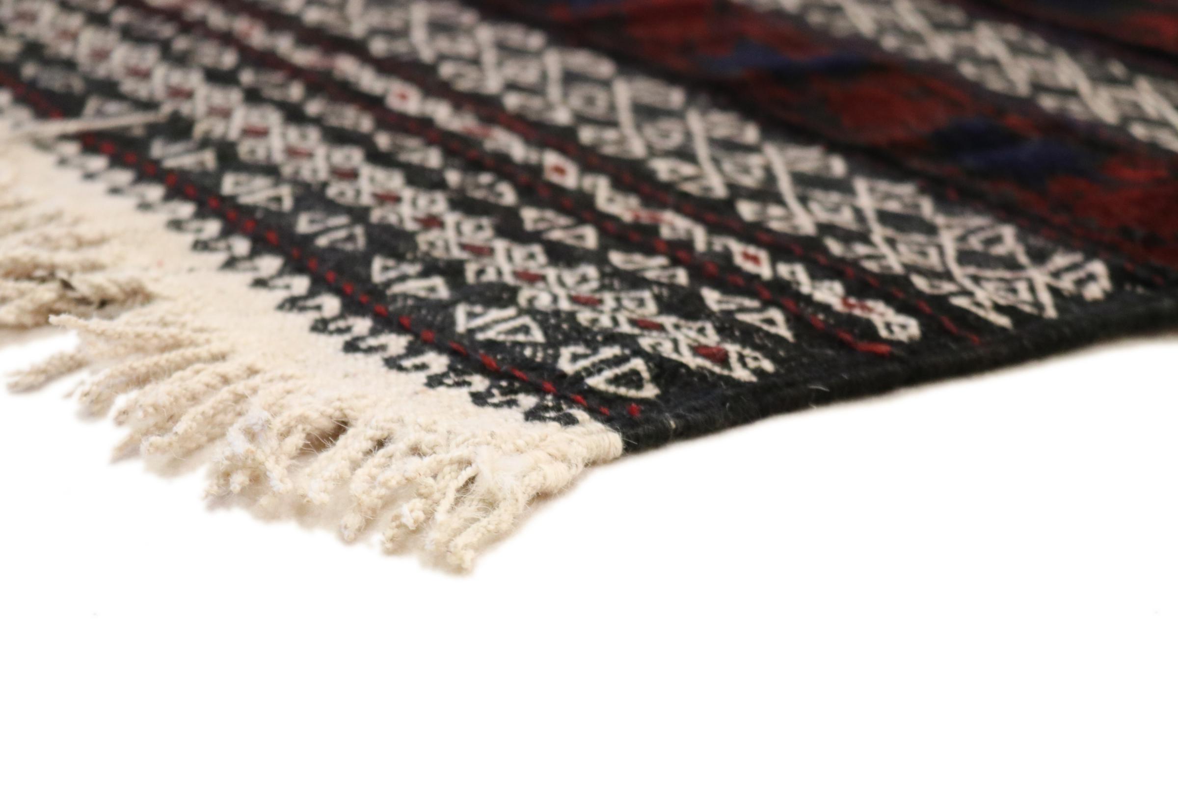 Dette baluch-tæppe er et vidunderligt eksempel på ægte nomadekunst. Det persiske tæppe er produceret i det iransk-afghanske grænseområde og er imponerende takket være den tætte, asymmetriske vævning. De livlige mønstre gør det til en sand fryd for øjet. De mørke farver er typiske og spreder en behagelig varme. Det smukke naturgarn udstråler kvalitet og gør det ekstremt slidstærkt. De lige linjer er typiske for dette tæppe, hvilket gør det til et umiskendeligt nomadetæppe.