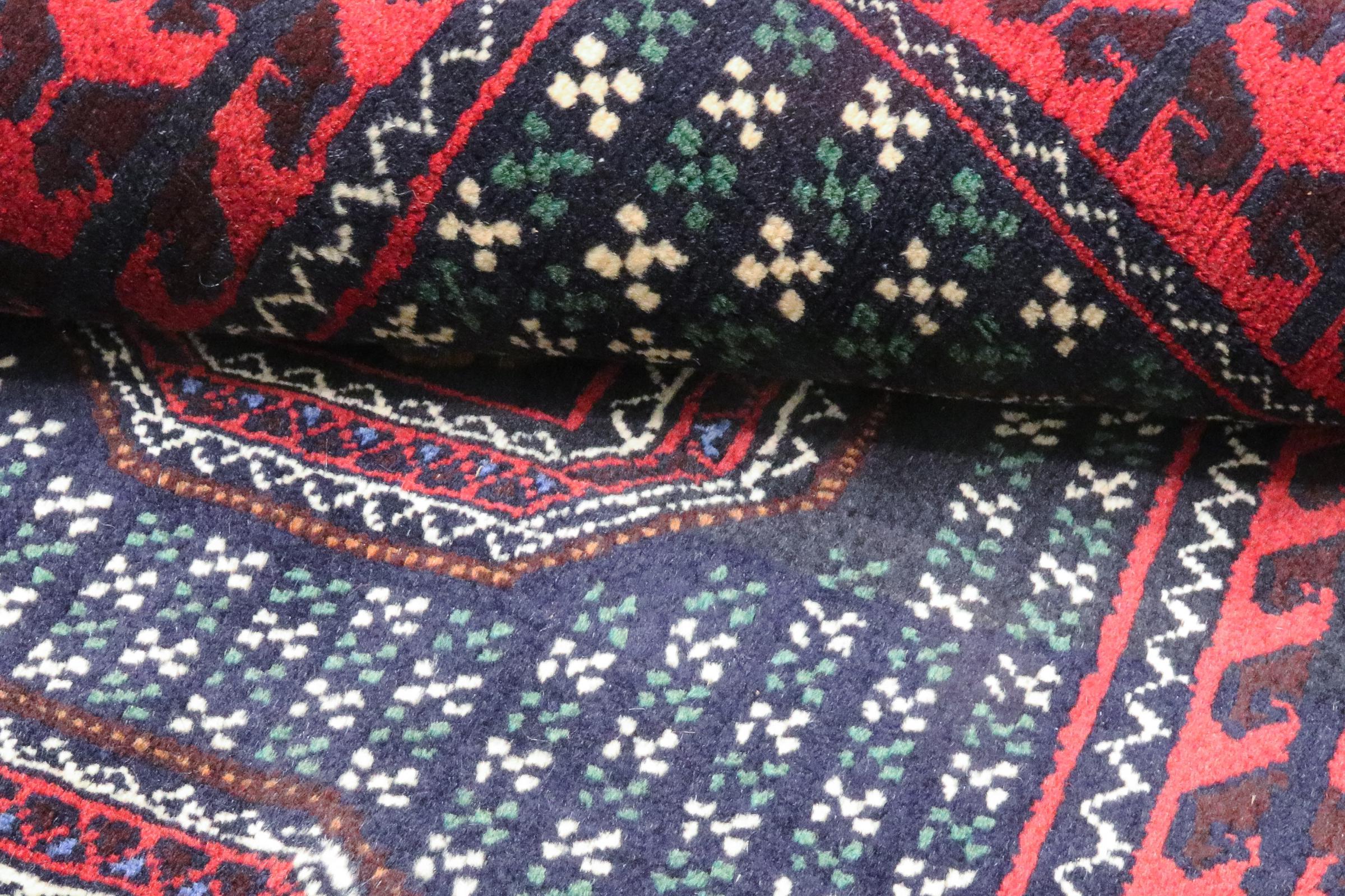 Dette baluch-tæppe er et vidunderligt eksempel på ægte nomadekunst. Det persiske tæppe er produceret i det iransk-afghanske grænseområde og er imponerende takket være den tætte, asymmetriske vævning. De livlige mønstre gør det til en sand fryd for øjet. De mørke farver er typiske og spreder en behagelig varme. Det smukke naturgarn udstråler kvalitet og gør det ekstremt slidstærkt. De lige linjer er typiske for dette tæppe, hvilket gør det til et umiskendeligt nomadetæppe.