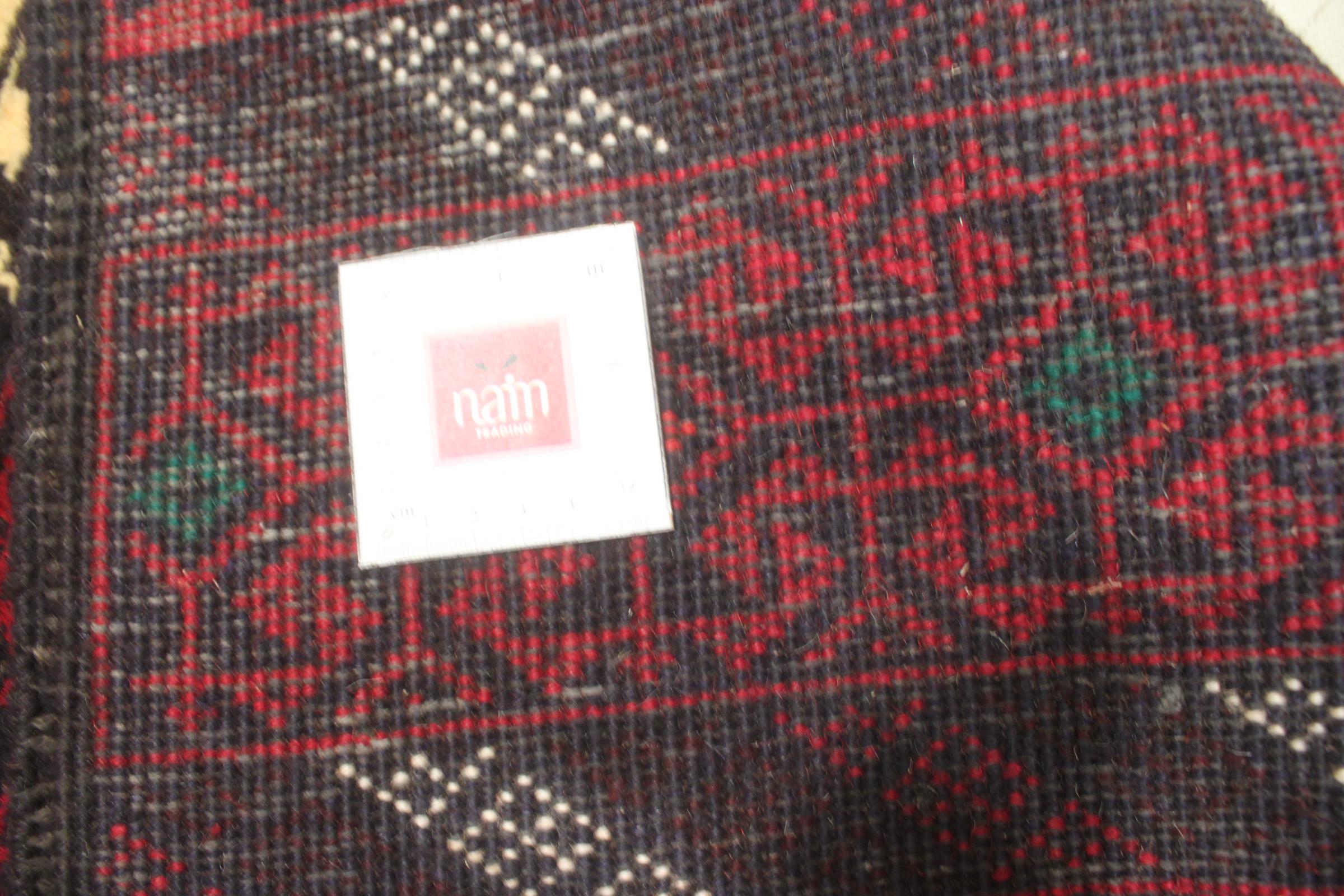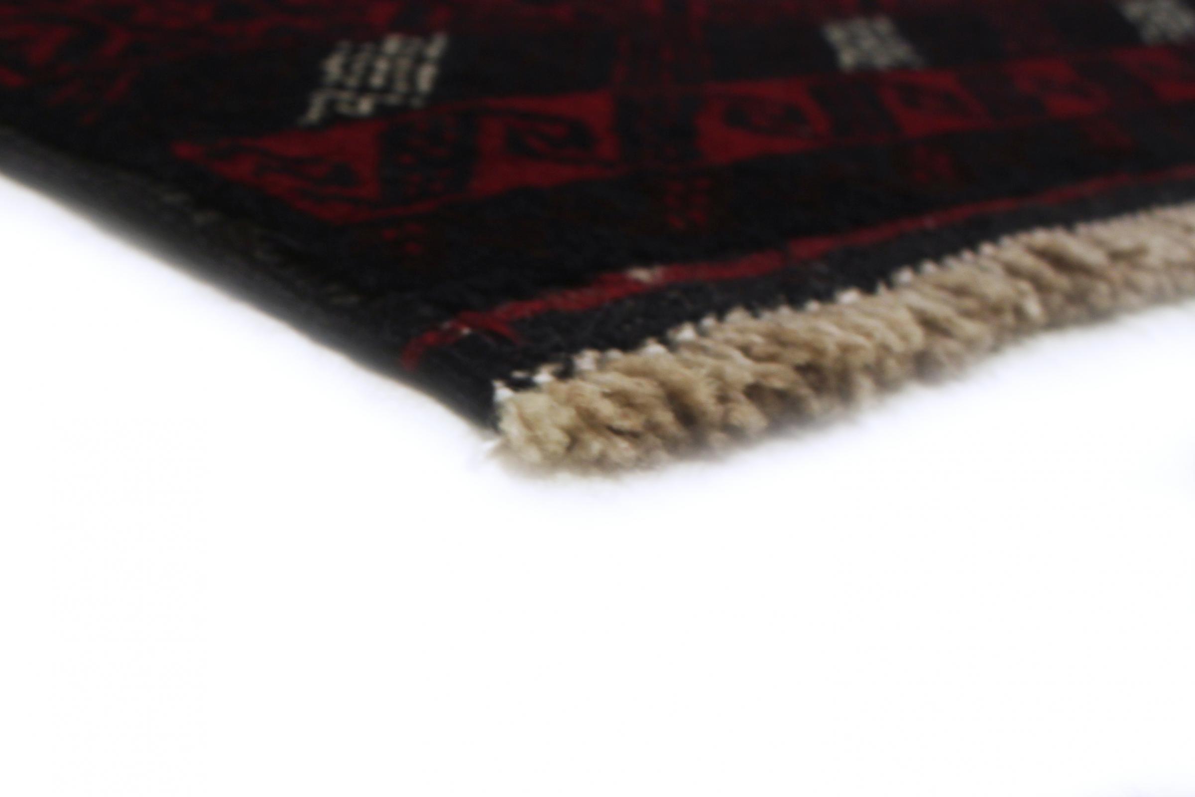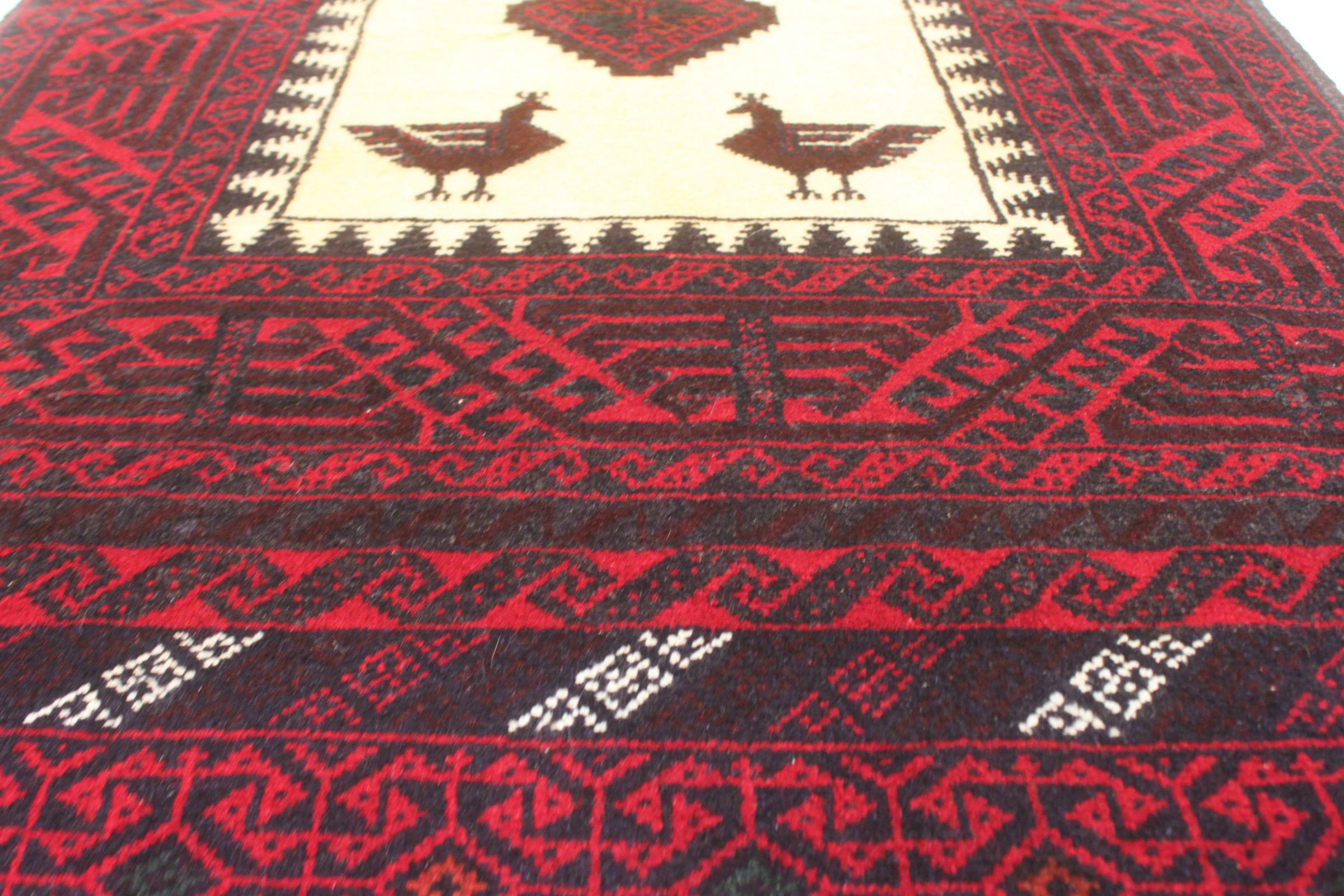 Dette baluch-tæppe er et vidunderligt eksempel på ægte nomadekunst. Det persiske tæppe er produceret i det iransk-afghanske grænseområde og er imponerende takket være den tætte, asymmetriske vævning. De livlige mønstre gør det til en sand fryd for øjet. De mørke farver er typiske og spreder en behagelig varme. Det smukke naturgarn udstråler kvalitet og gør det ekstremt slidstærkt. De lige linjer er typiske for dette tæppe, hvilket gør det til et umiskendeligt nomadetæppe.