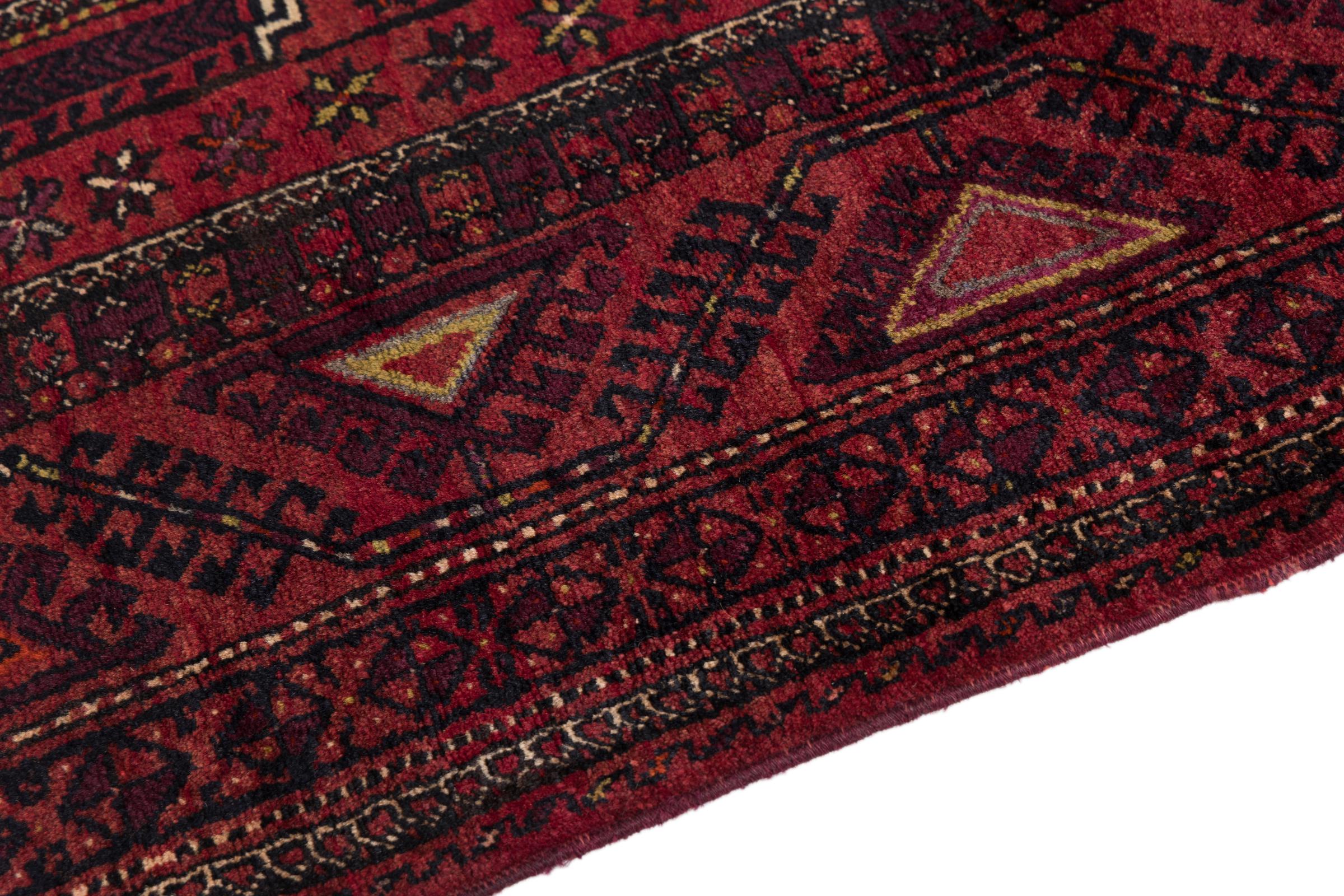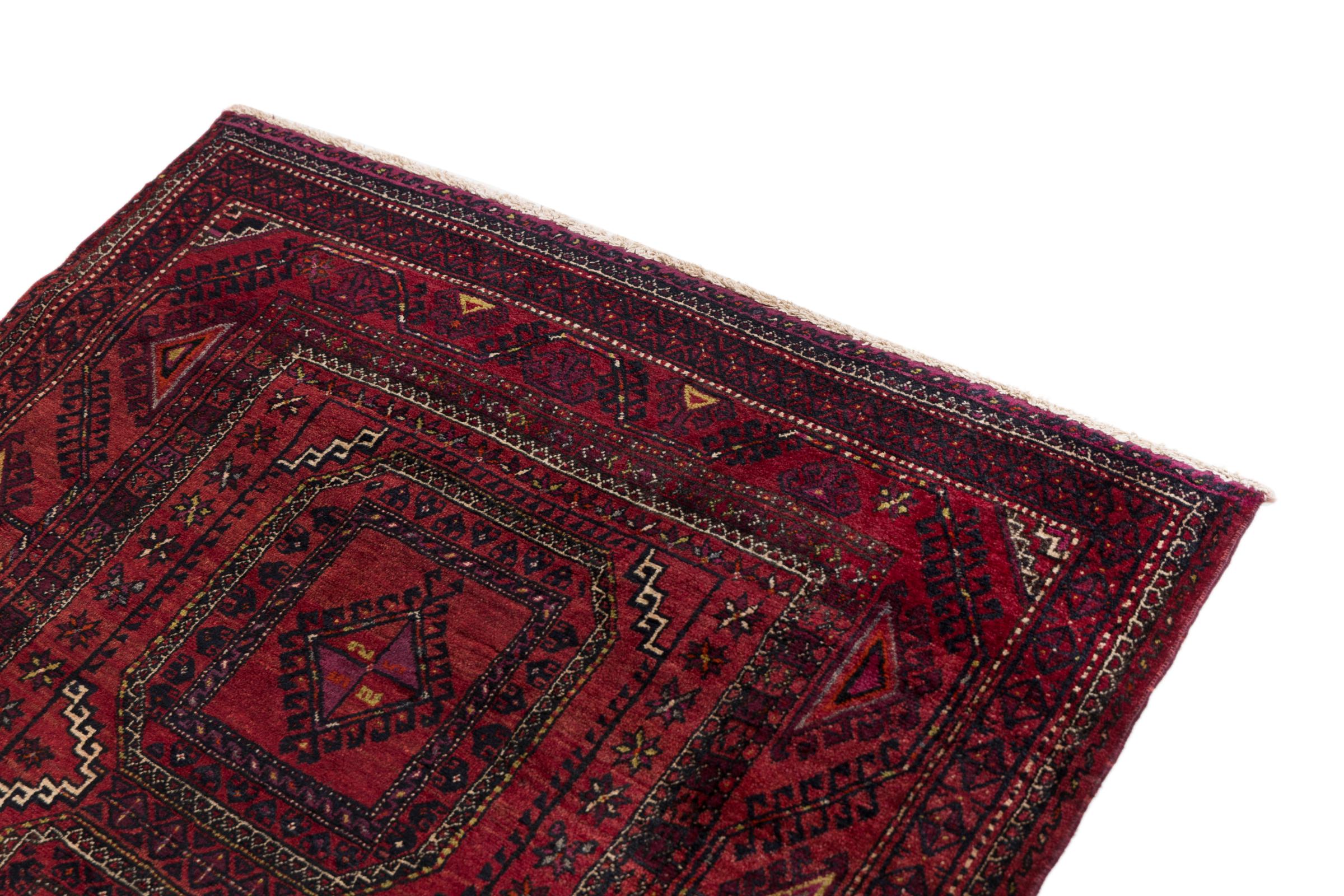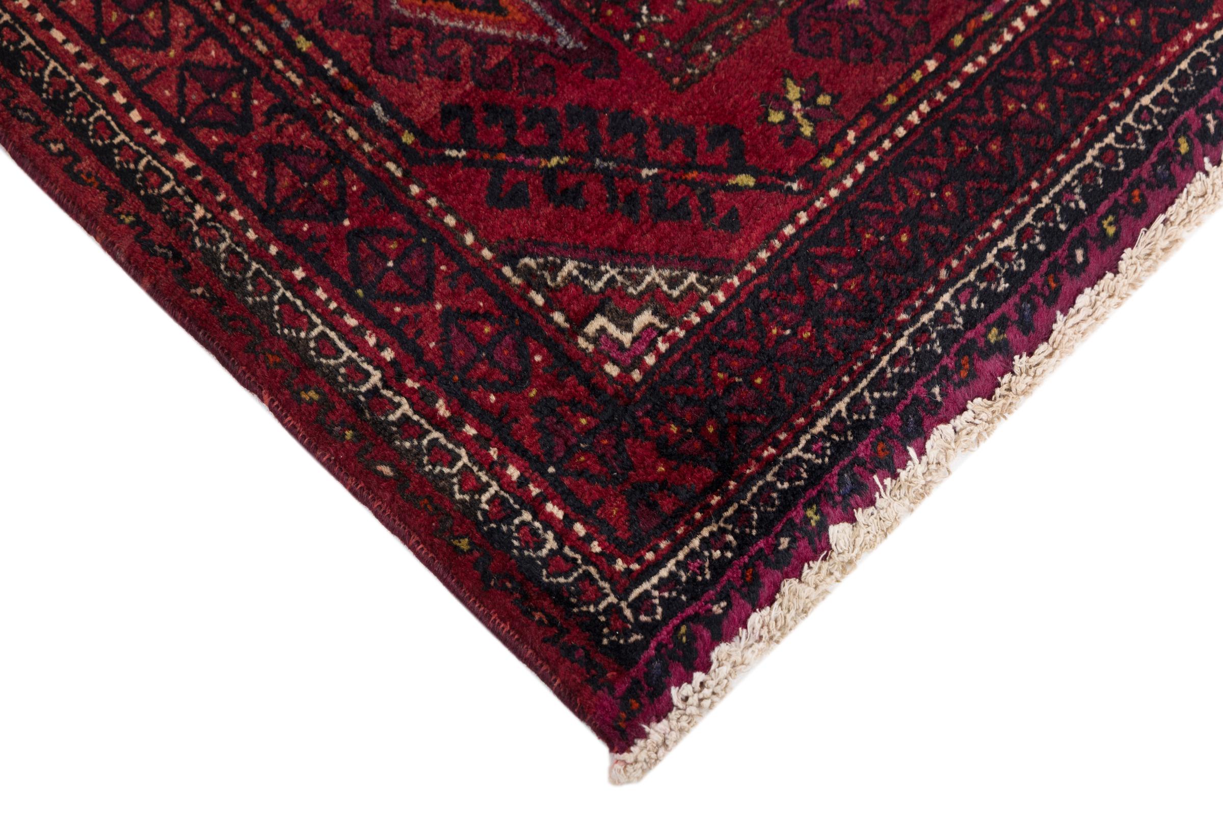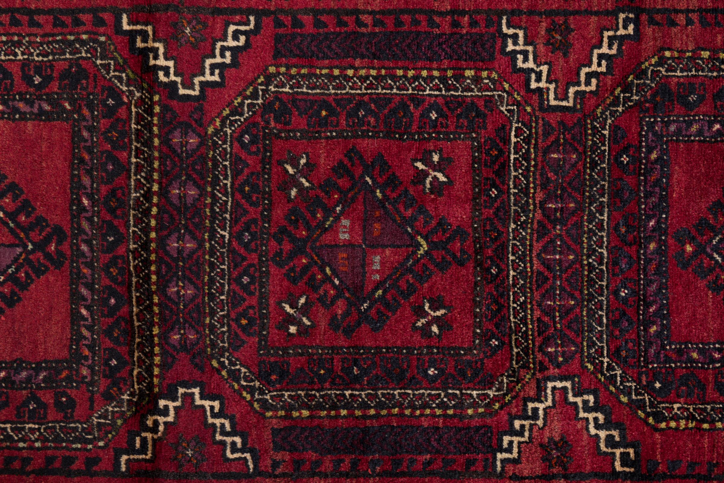 Dette baluch-tæppe er et vidunderligt eksempel på ægte nomadekunst. Det persiske tæppe er produceret i det iransk-afghanske grænseområde og er imponerende takket være den tætte, asymmetriske vævning. De livlige mønstre gør det til en sand fryd for øjet. De mørke farver er typiske og spreder en behagelig varme. Det smukke naturgarn udstråler kvalitet og gør det ekstremt slidstærkt. De lige linjer er typiske for dette tæppe, hvilket gør det til et umiskendeligt nomadetæppe.