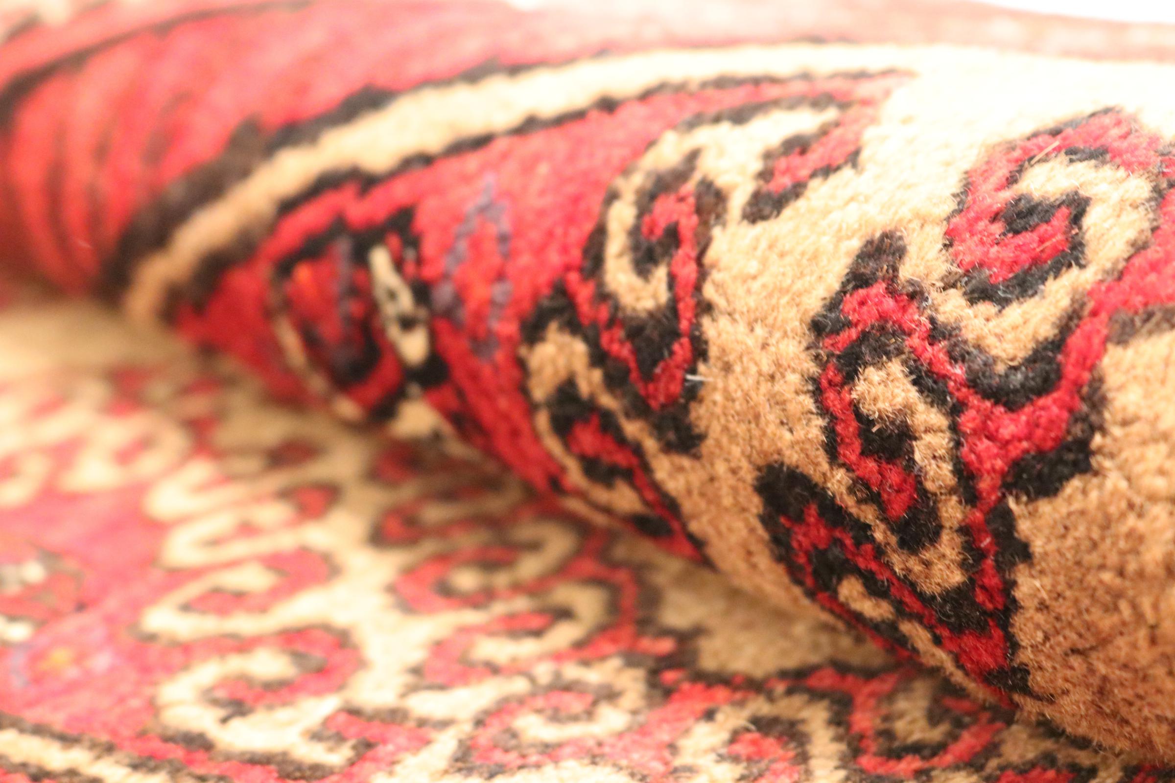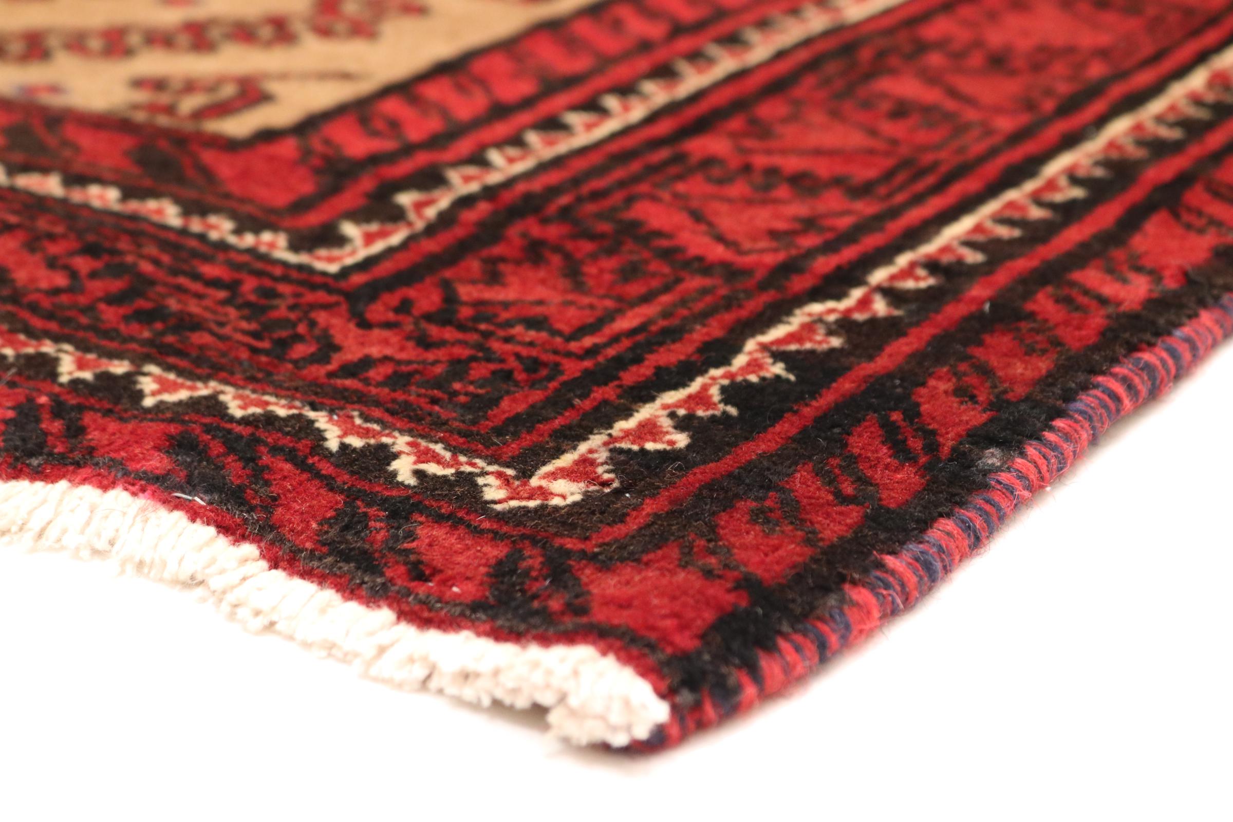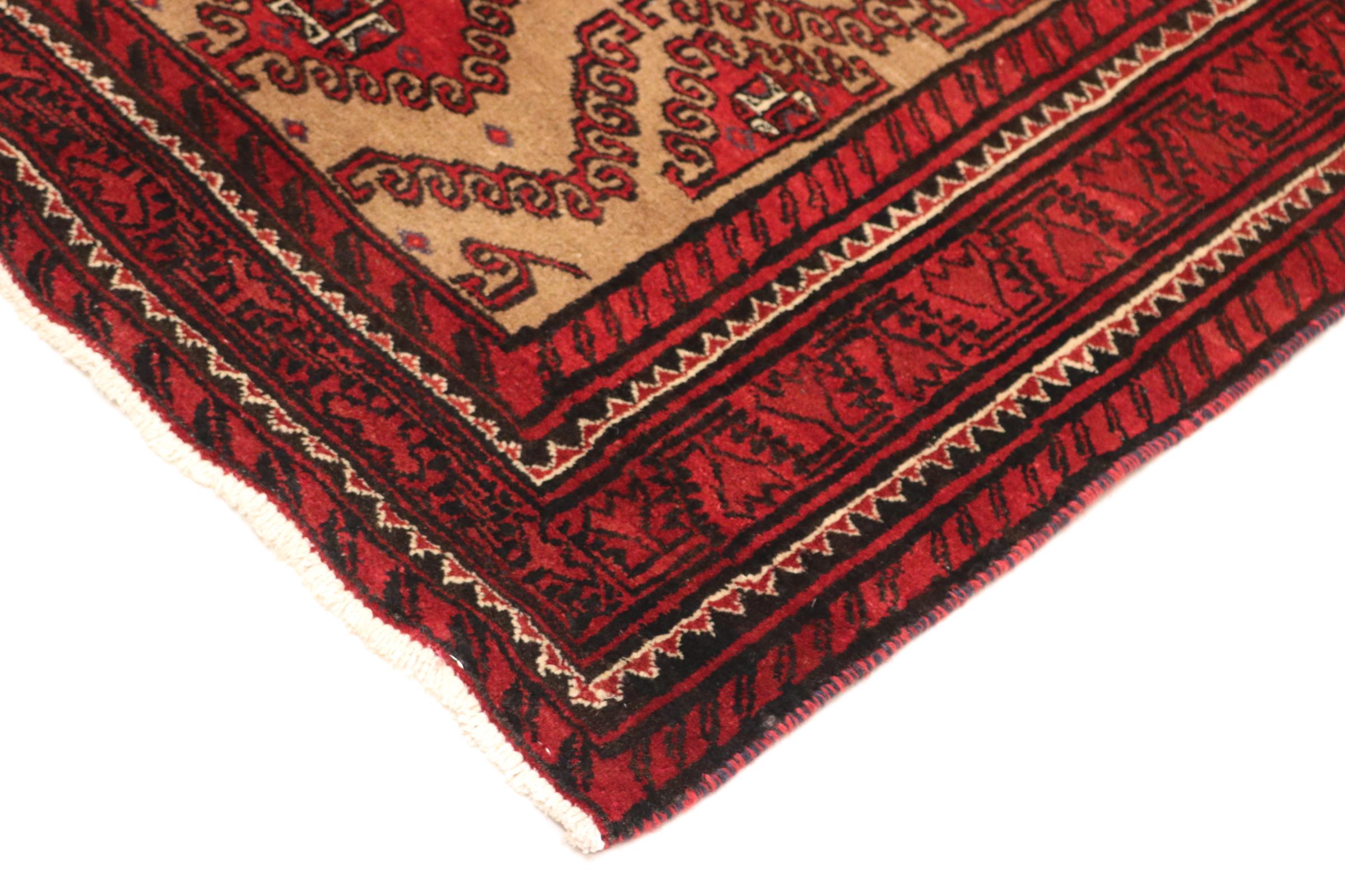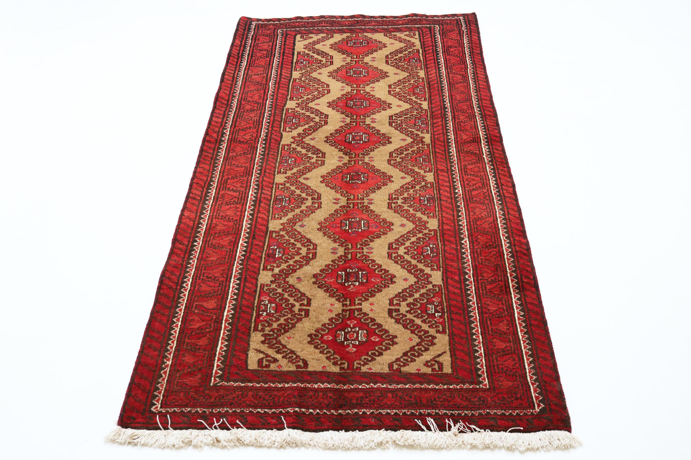 Dette baluch-tæppe er et vidunderligt eksempel på ægte nomadekunst. Det persiske tæppe er produceret i det iransk-afghanske grænseområde og er imponerende takket være den tætte, asymmetriske vævning. De livlige mønstre gør det til en sand fryd for øjet. De mørke farver er typiske og spreder en behagelig varme. Det smukke naturgarn udstråler kvalitet og gør det ekstremt slidstærkt. De lige linjer er typiske for dette tæppe, hvilket gør det til et umiskendeligt nomadetæppe.