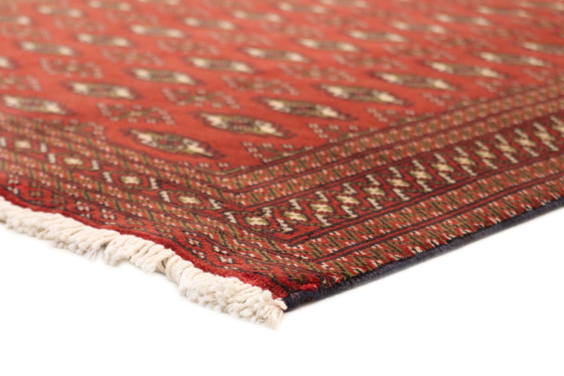 Dette baluch-tæppe er et vidunderligt eksempel på ægte nomadekunst. Det persiske tæppe er produceret i det iransk-afghanske grænseområde og er imponerende takket være den tætte, asymmetriske vævning. De livlige mønstre gør det til en sand fryd for øjet. De mørke farver er typiske og spreder en behagelig varme. Det smukke naturgarn udstråler kvalitet og gør det ekstremt slidstærkt. De lige linjer er typiske for dette tæppe, hvilket gør det til et umiskendeligt nomadetæppe.