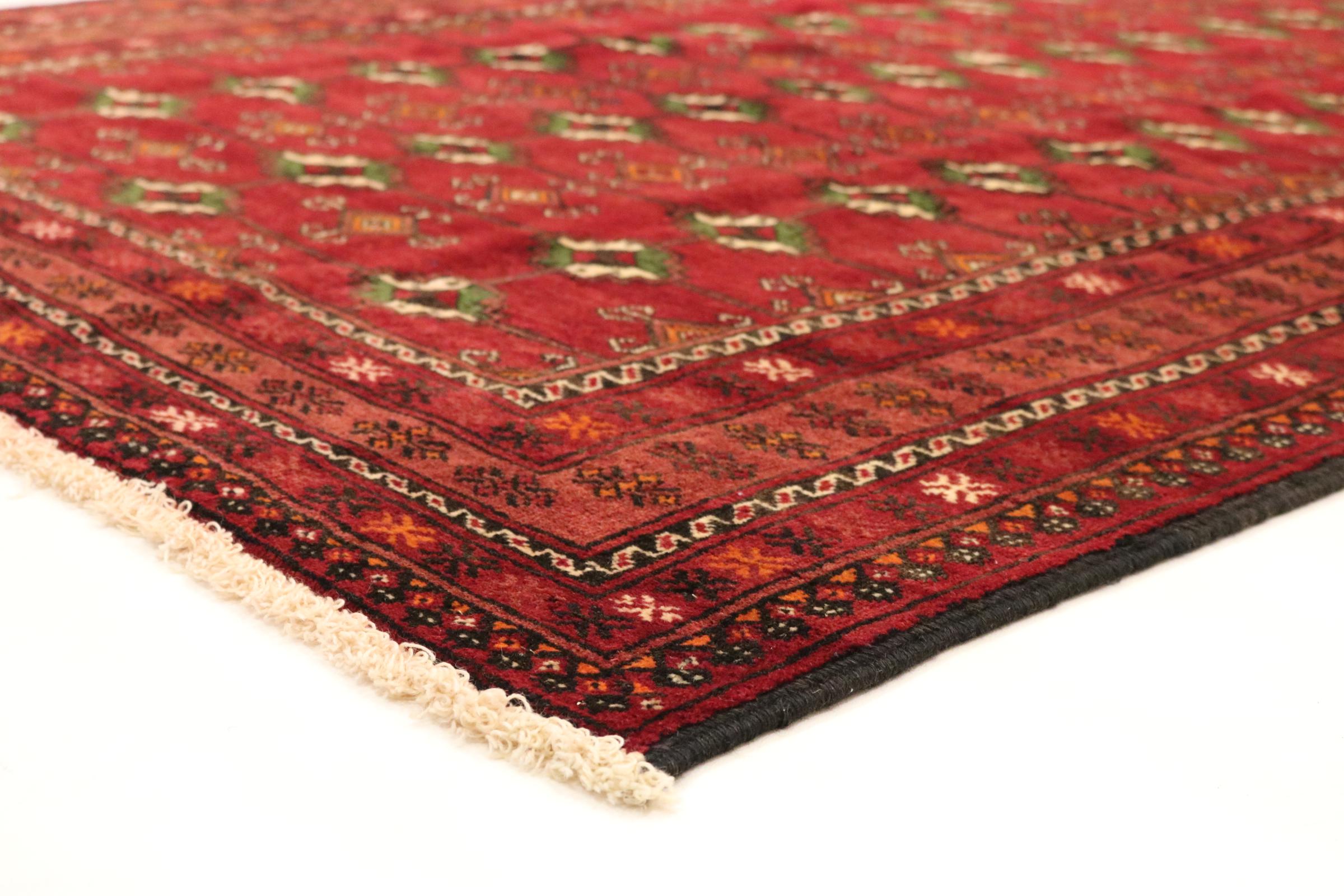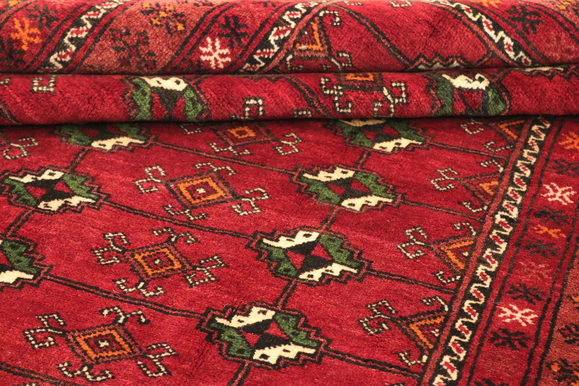 Dette baluch-tæppe er et vidunderligt eksempel på ægte nomadekunst. Det persiske tæppe er produceret i det iransk-afghanske grænseområde og er imponerende takket være den tætte, asymmetriske vævning. De livlige mønstre gør det til en sand fryd for øjet. De mørke farver er typiske og spreder en behagelig varme. Det smukke naturgarn udstråler kvalitet og gør det ekstremt slidstærkt. De lige linjer er typiske for dette tæppe, hvilket gør det til et umiskendeligt nomadetæppe.