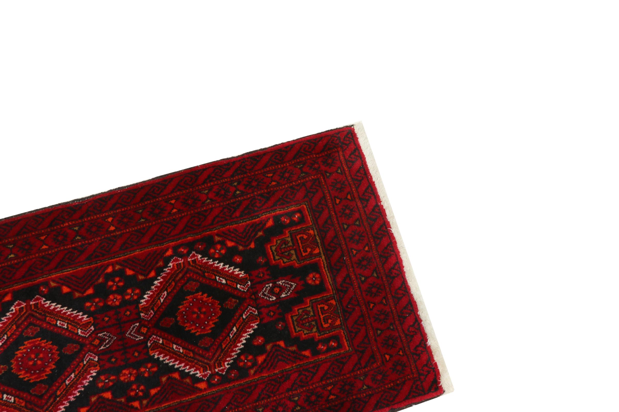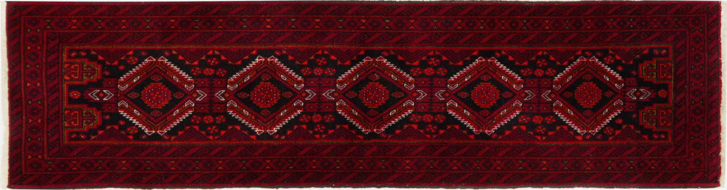 Dette baluch-tæppe er et vidunderligt eksempel på ægte nomadekunst. Det persiske tæppe er produceret i det iransk-afghanske grænseområde og er imponerende takket være den tætte, asymmetriske vævning. De livlige mønstre gør det til en sand fryd for øjet. De mørke farver er typiske og spreder en behagelig varme. Det smukke naturgarn udstråler kvalitet og gør det ekstremt slidstærkt. De lige linjer er typiske for dette tæppe, hvilket gør det til et umiskendeligt nomadetæppe.