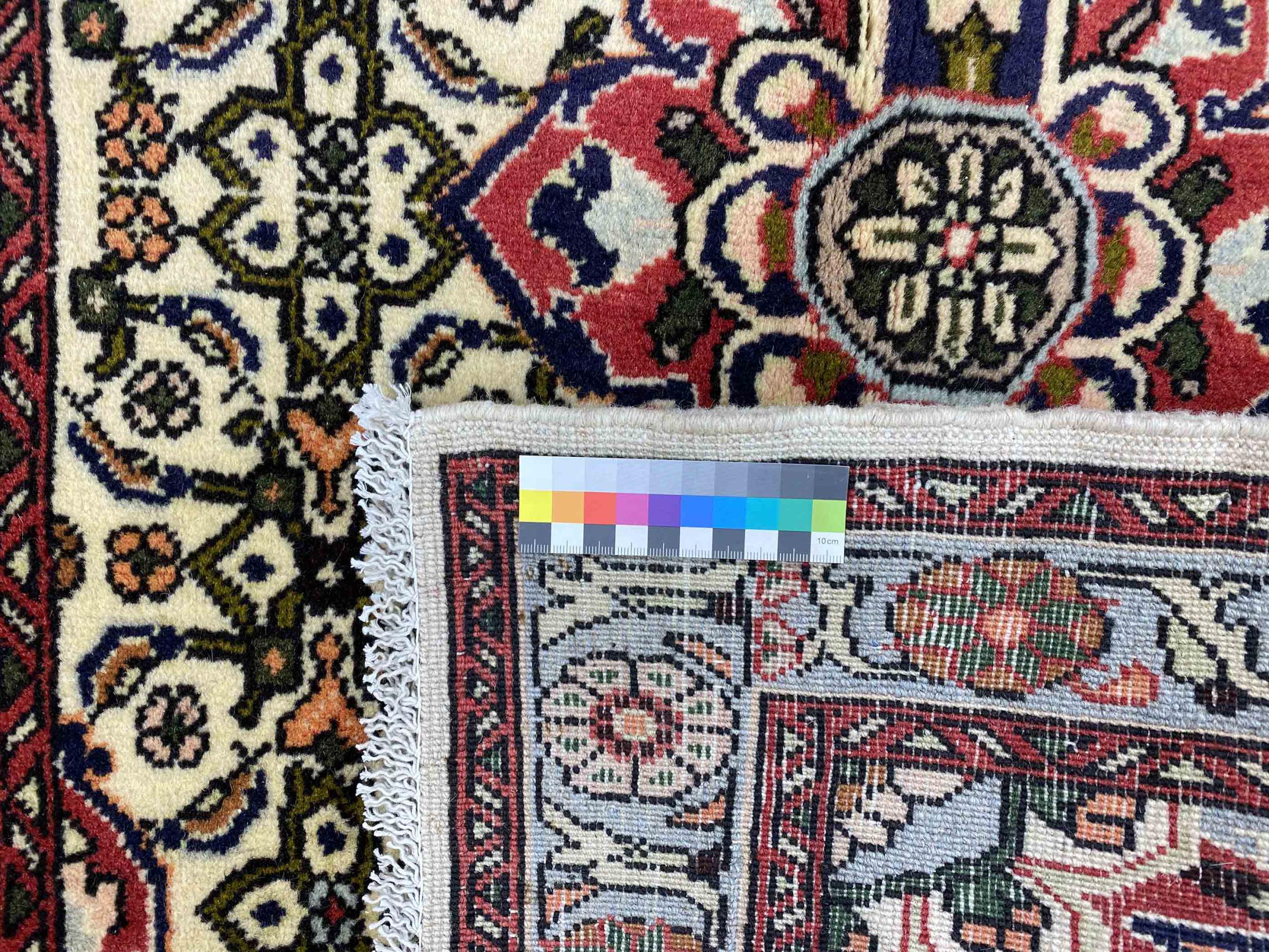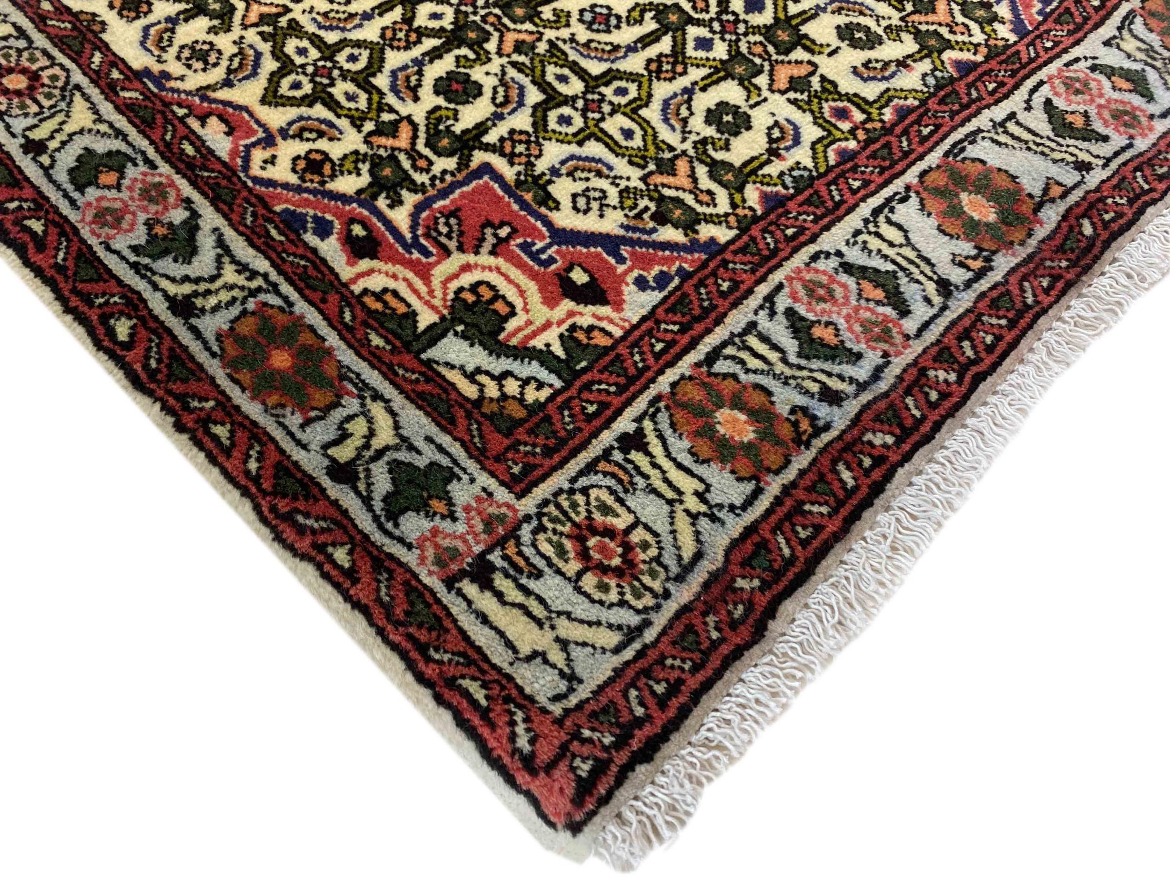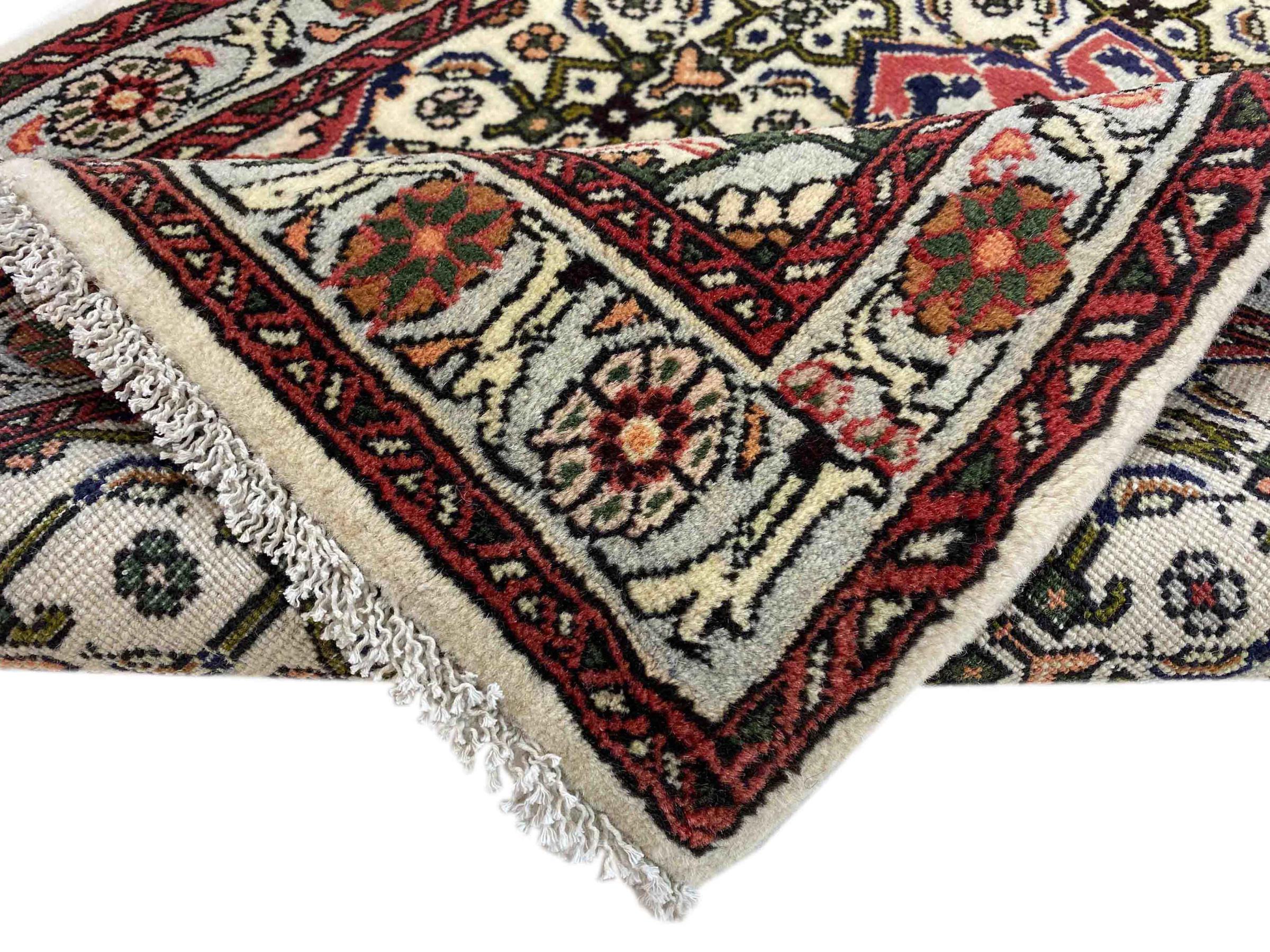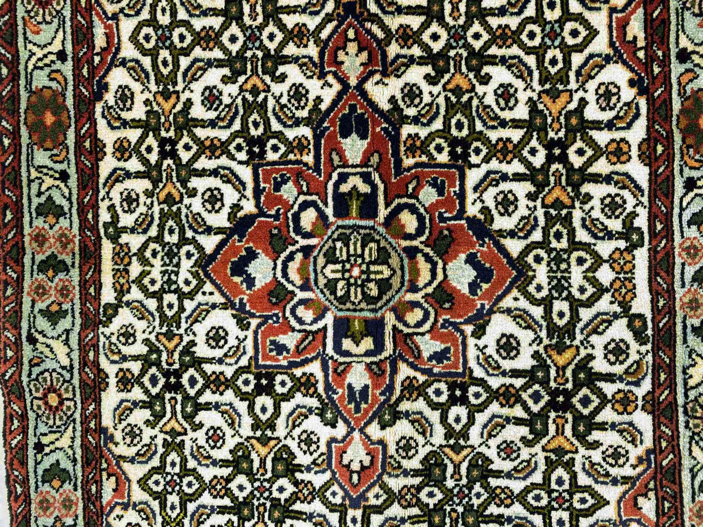Dette persiske tæppe er håndknyttet i en lille kurdisk by i det vestlige Iran. Bidjar-tæppet står for enestående kvalitet. Den faste luv er kendetegnet ved sin kompakthed og dermed modstandsdygtighed over for slid. Ulden er presset så tæt sammen med en kam, at luven står næsten lodret opad. Det betyder, at grovere smudspartikler næsten ikke har en chance for at trænge igennem.