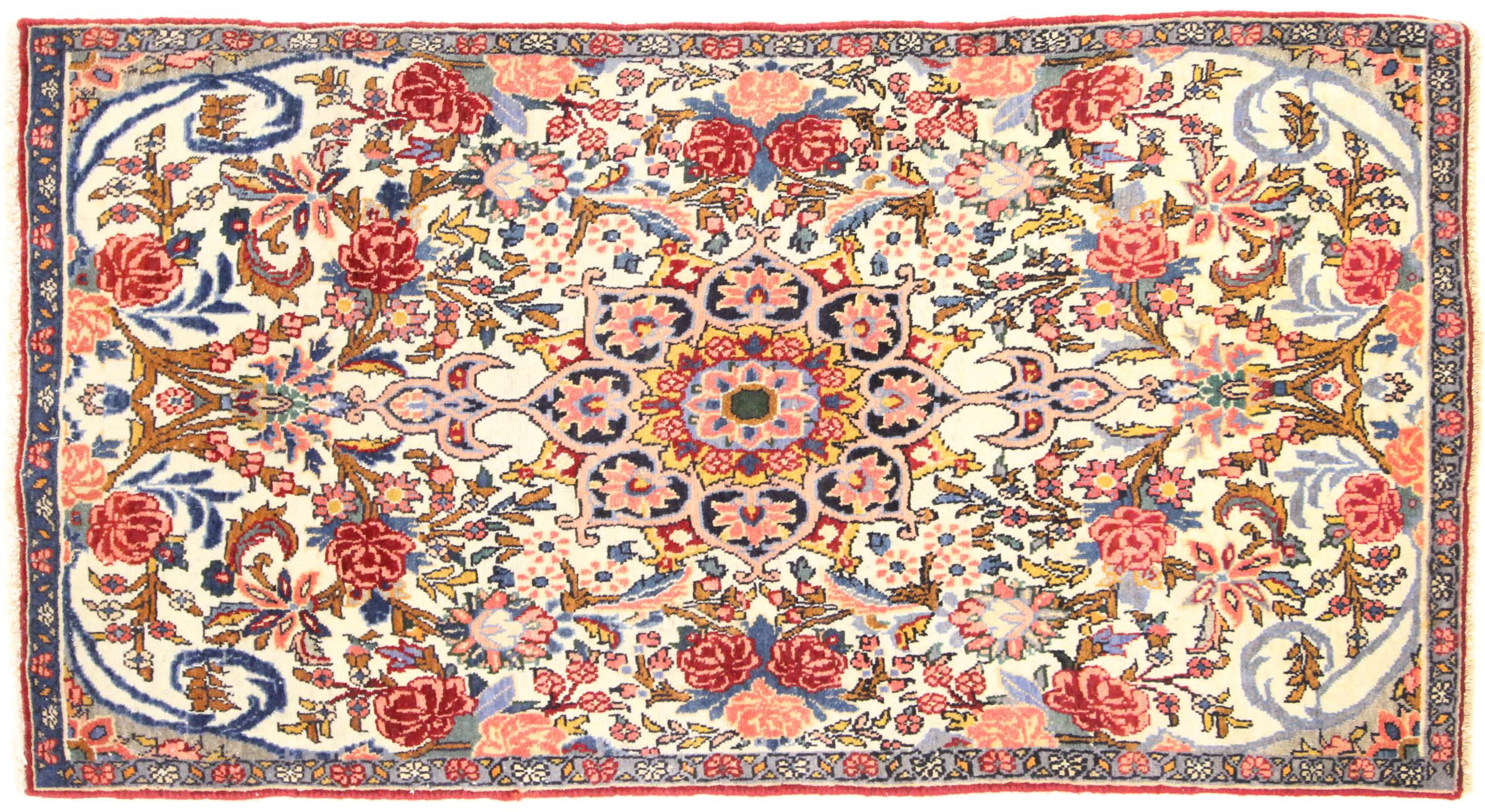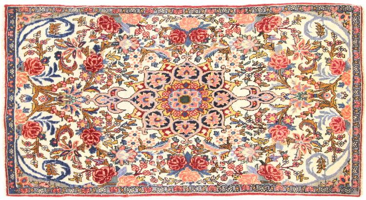 Tæppe-nr.: 167450003074217 Størrelse: 123x61 cm Tykkelse: ca. 15 mm Knuder: 320 000 - 360 000 / m² Forarbejdelse: Knyttet i hånden Luv: Håndspunden uld Kæde: Bomuld Oprindelse: Persien / Iran Alder: Ny Vægt: ca. 4 kg Antal på lager: Unik - Kun 1 tilbage på lager