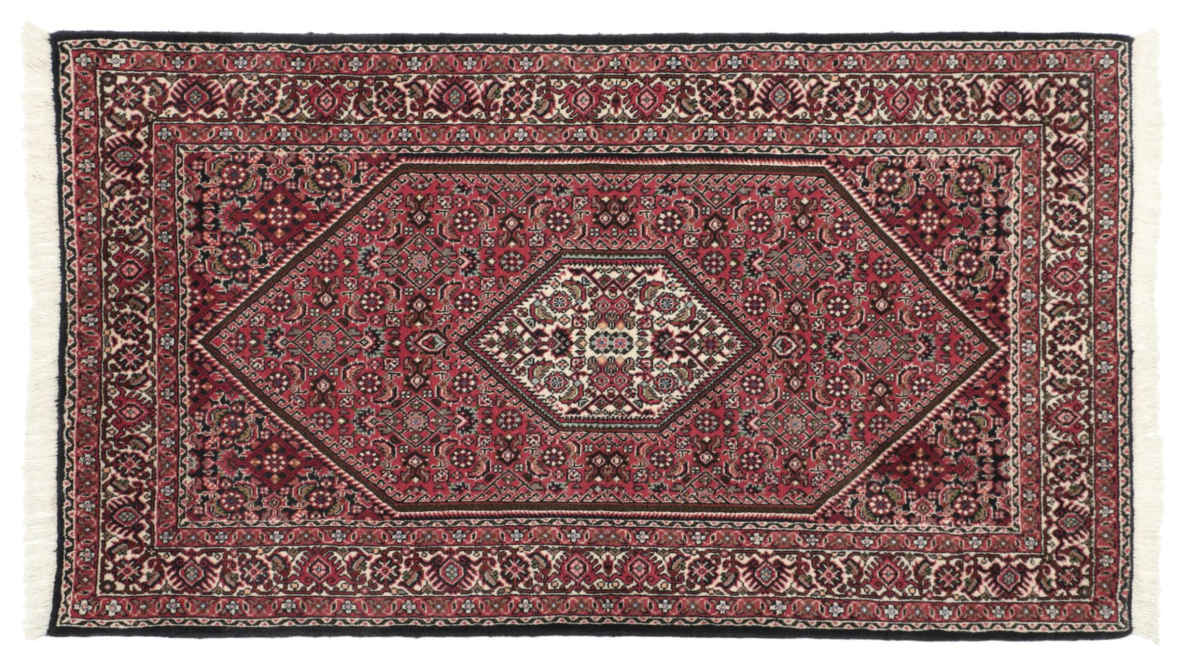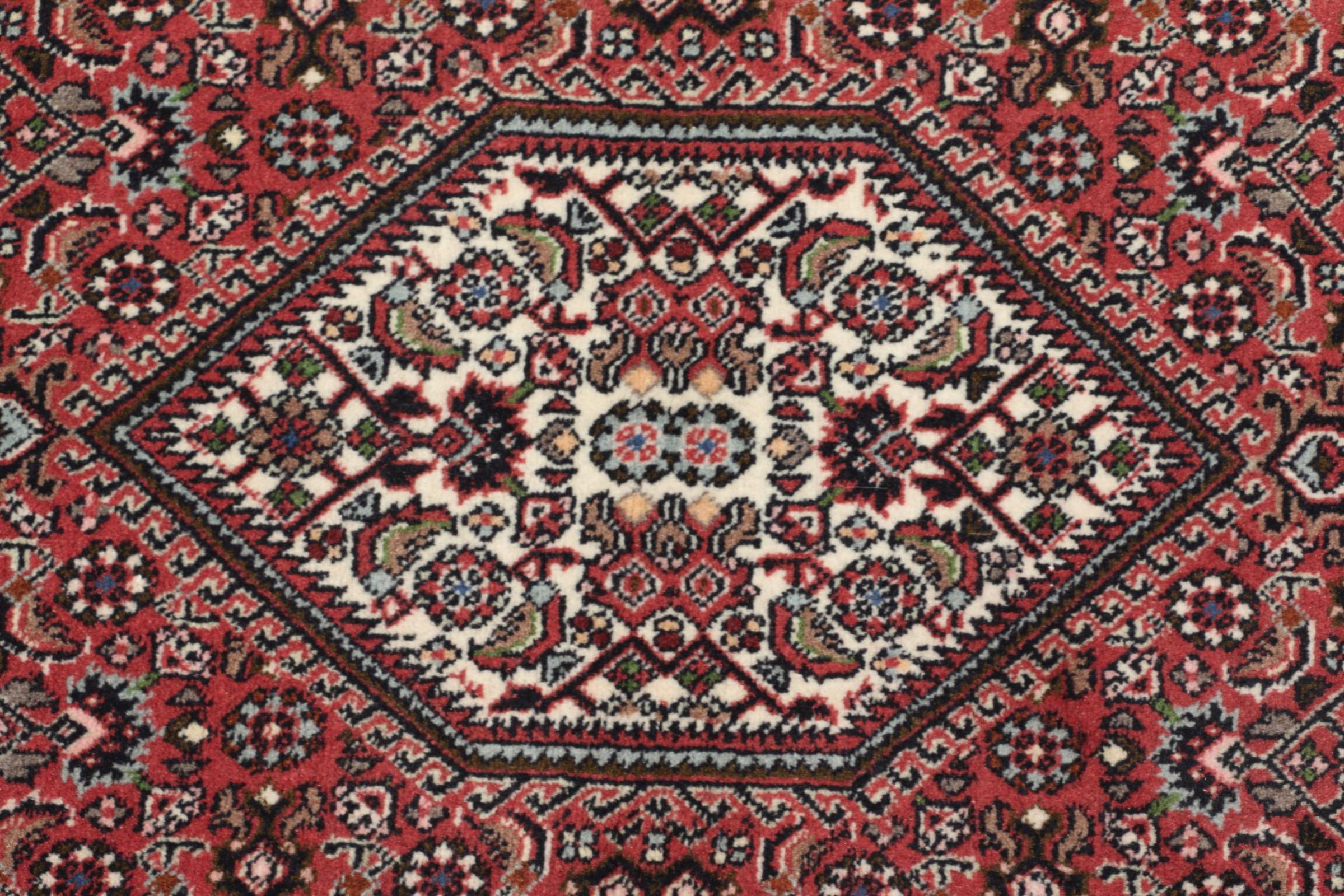 Dette persiske tæppe er håndknyttet i en lille kurdisk by i det vestlige Iran. Bidjar-tæppet står for enestående kvalitet. Den faste luv er kendetegnet ved sin kompakthed og dermed modstandsdygtighed over for slid. Ulden er presset så tæt sammen med en kam, at luven står næsten lodret opad. Det betyder, at grovere smudspartikler næsten ikke har en chance for at trænge igennem.