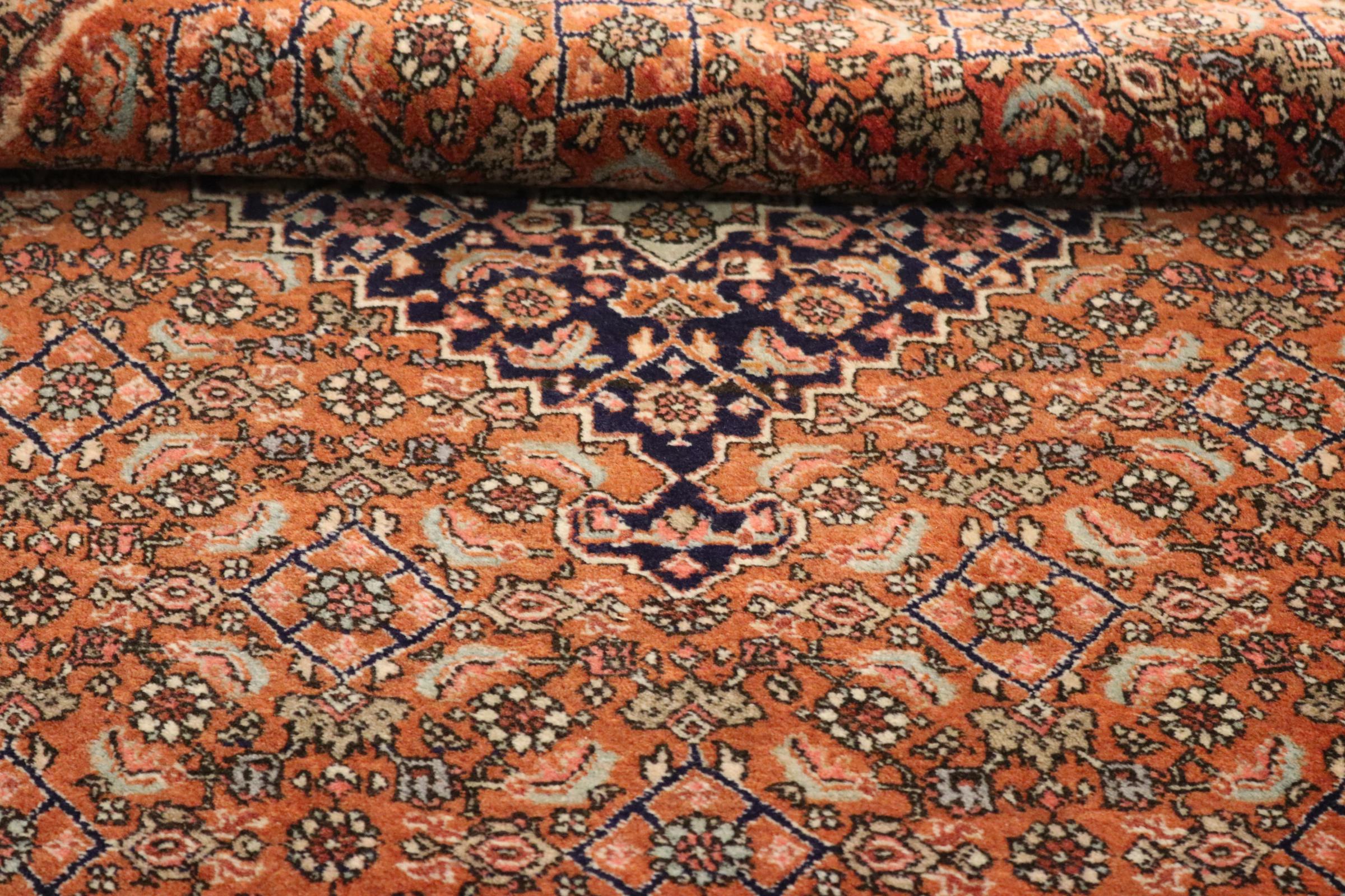 Dette persiske tæppe er håndknyttet i en lille kurdisk by i det vestlige Iran. Bidjar-tæppet står for enestående kvalitet. Den faste luv er kendetegnet ved sin kompakthed og dermed modstandsdygtighed over for slid. Ulden er presset så tæt sammen med en kam, at luven står næsten lodret opad. Det betyder, at grovere smudspartikler næsten ikke har en chance for at trænge igennem.