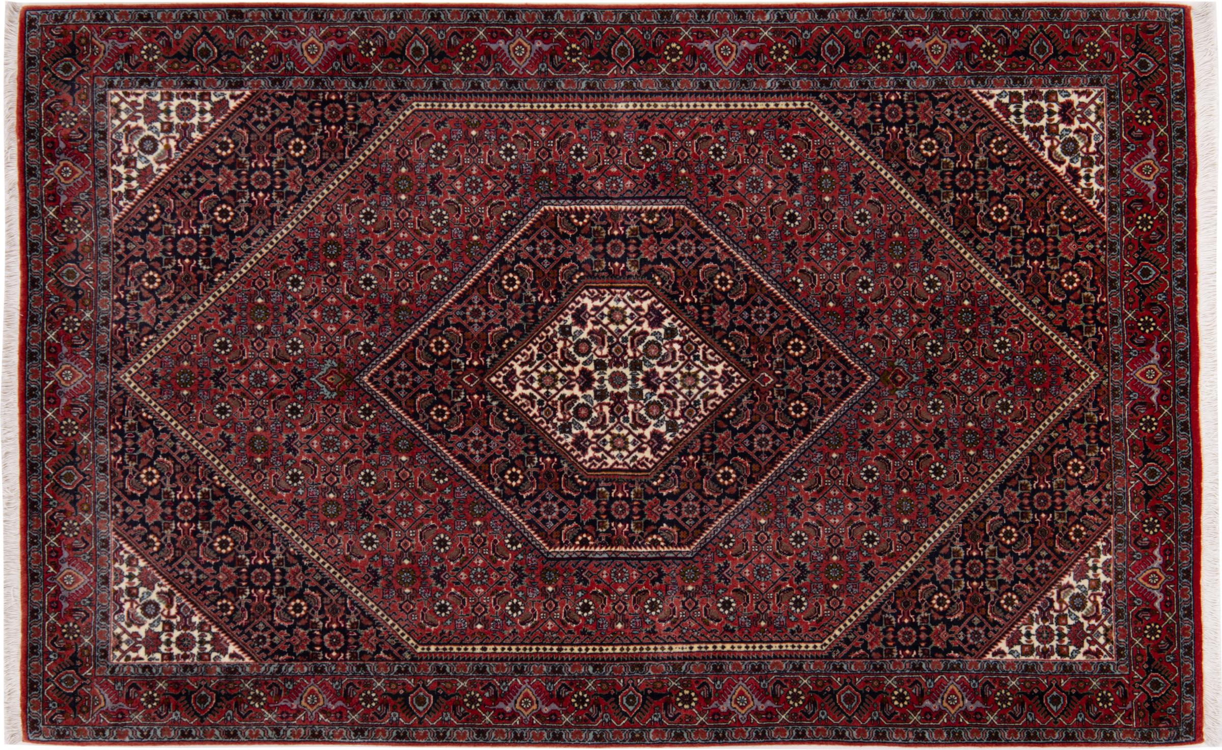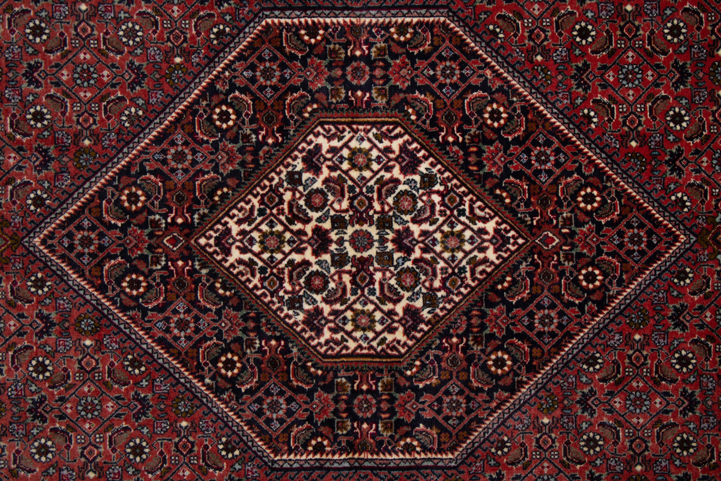 Dette persiske tæppe er håndknyttet i en lille kurdisk by i det vestlige Iran. Bidjar-tæppet står for enestående kvalitet. Den faste luv er kendetegnet ved sin kompakthed og dermed modstandsdygtighed over for slid. Ulden er presset så tæt sammen med en kam, at luven står næsten lodret opad. Det betyder, at grovere smudspartikler næsten ikke har en chance for at trænge igennem.