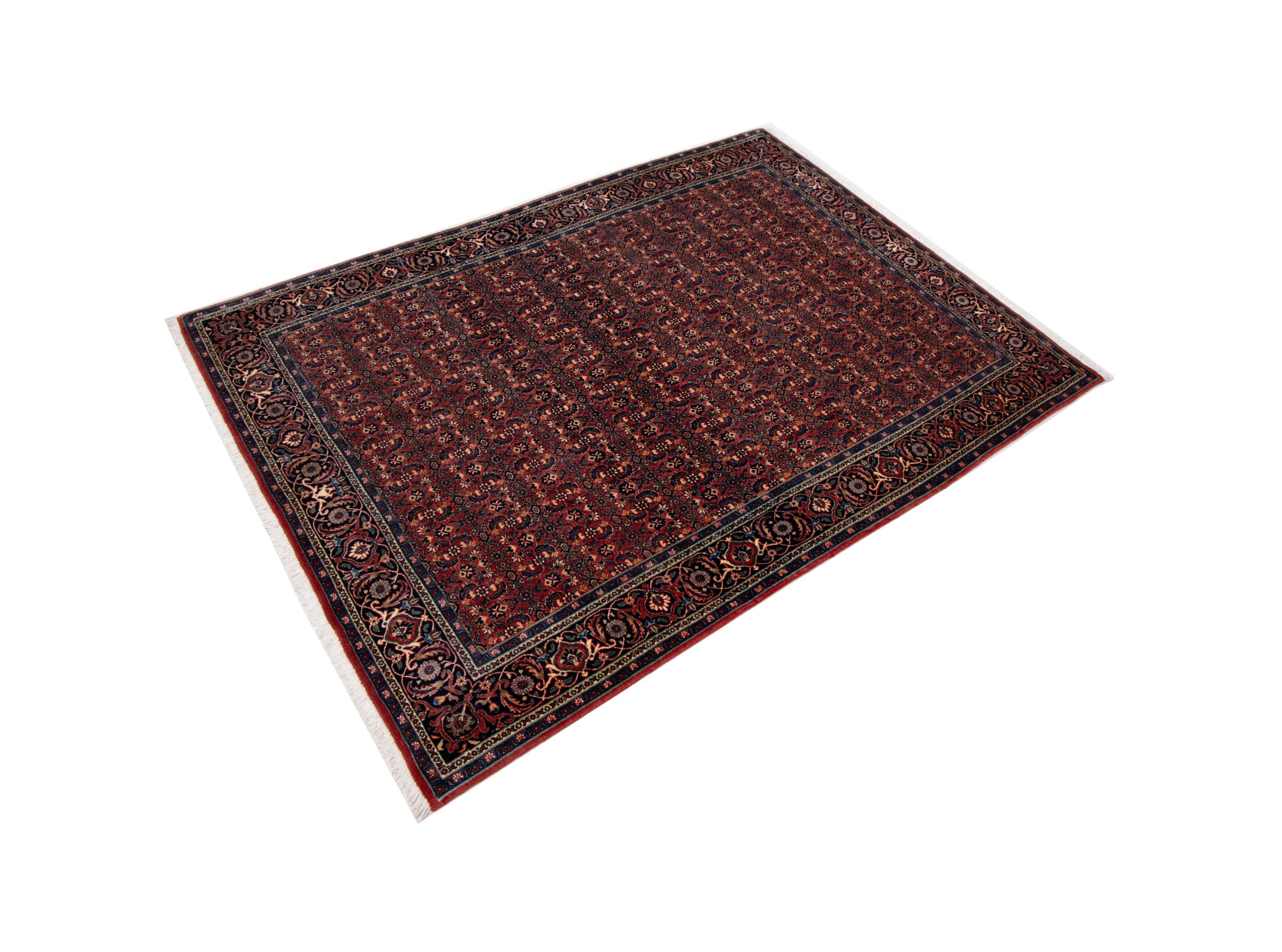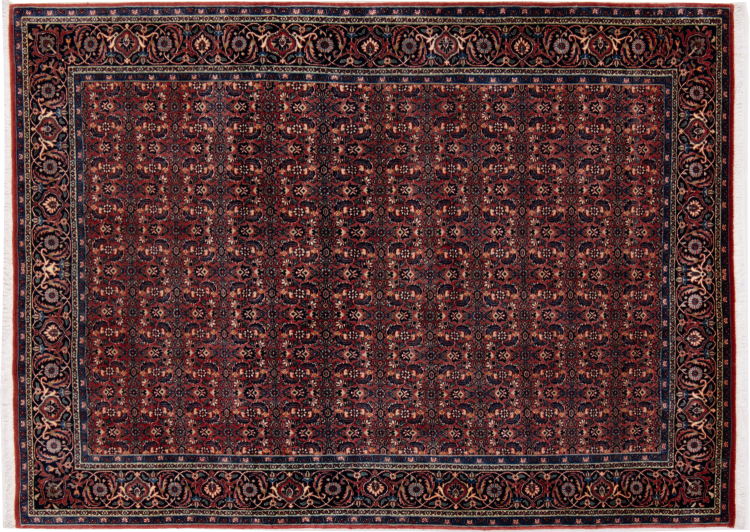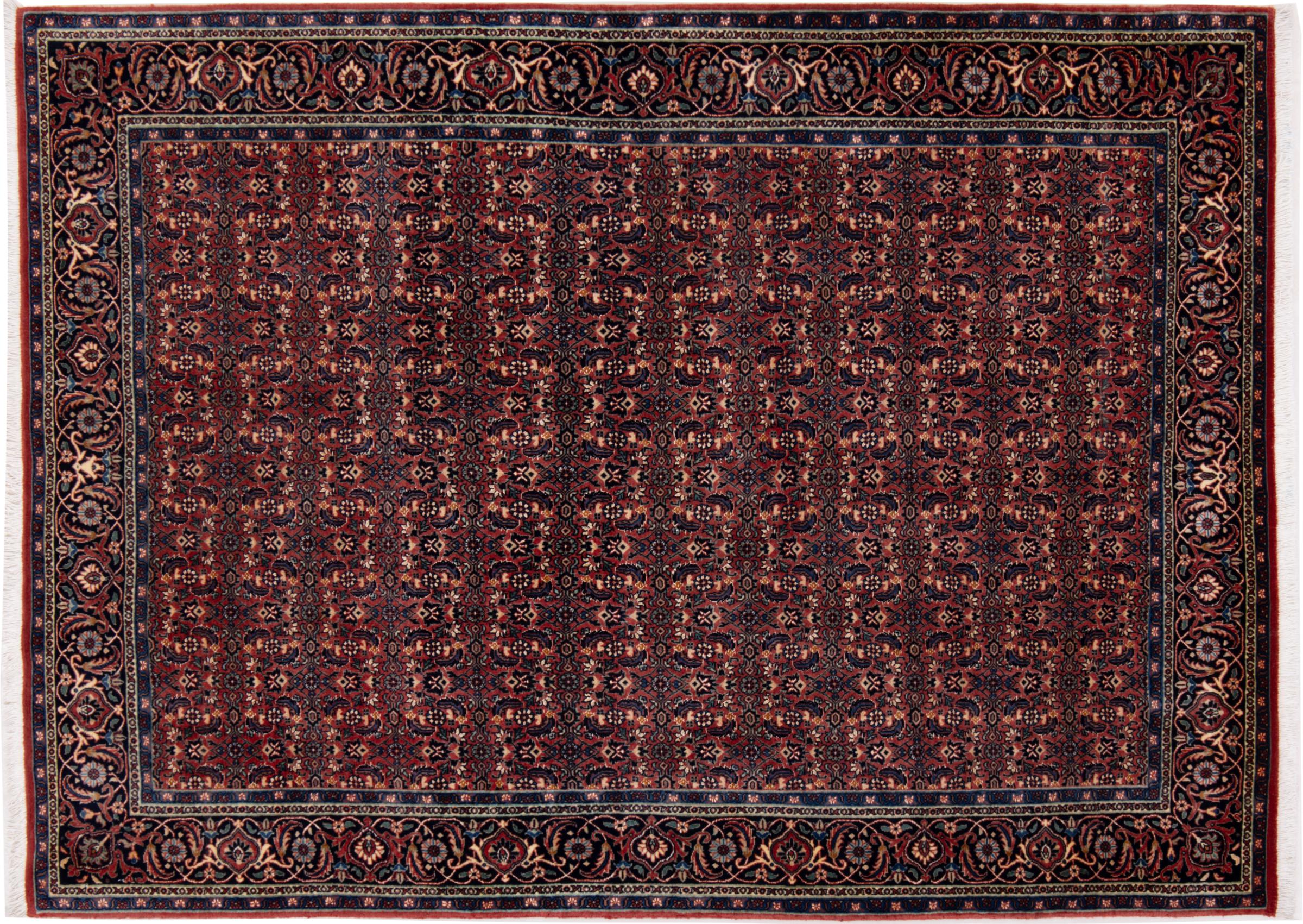 Dette persiske tæppe er håndknyttet i en lille kurdisk by i det vestlige Iran. Bidjar-tæppet står for enestående kvalitet. Den faste luv er kendetegnet ved sin kompakthed og dermed modstandsdygtighed over for slid. Ulden er presset så tæt sammen med en kam, at luven står næsten lodret opad. Det betyder, at grovere smudspartikler næsten ikke har en chance for at trænge igennem.