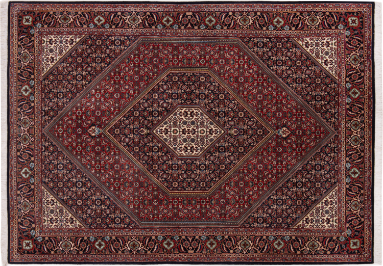 Dette persiske tæppe er håndknyttet i en lille kurdisk by i det vestlige Iran. Bidjar-tæppet står for enestående kvalitet. Den faste luv er kendetegnet ved sin kompakthed og dermed modstandsdygtighed over for slid. Ulden er presset så tæt sammen med en kam, at luven står næsten lodret opad. Det betyder, at grovere smudspartikler næsten ikke har en chance for at trænge igennem.