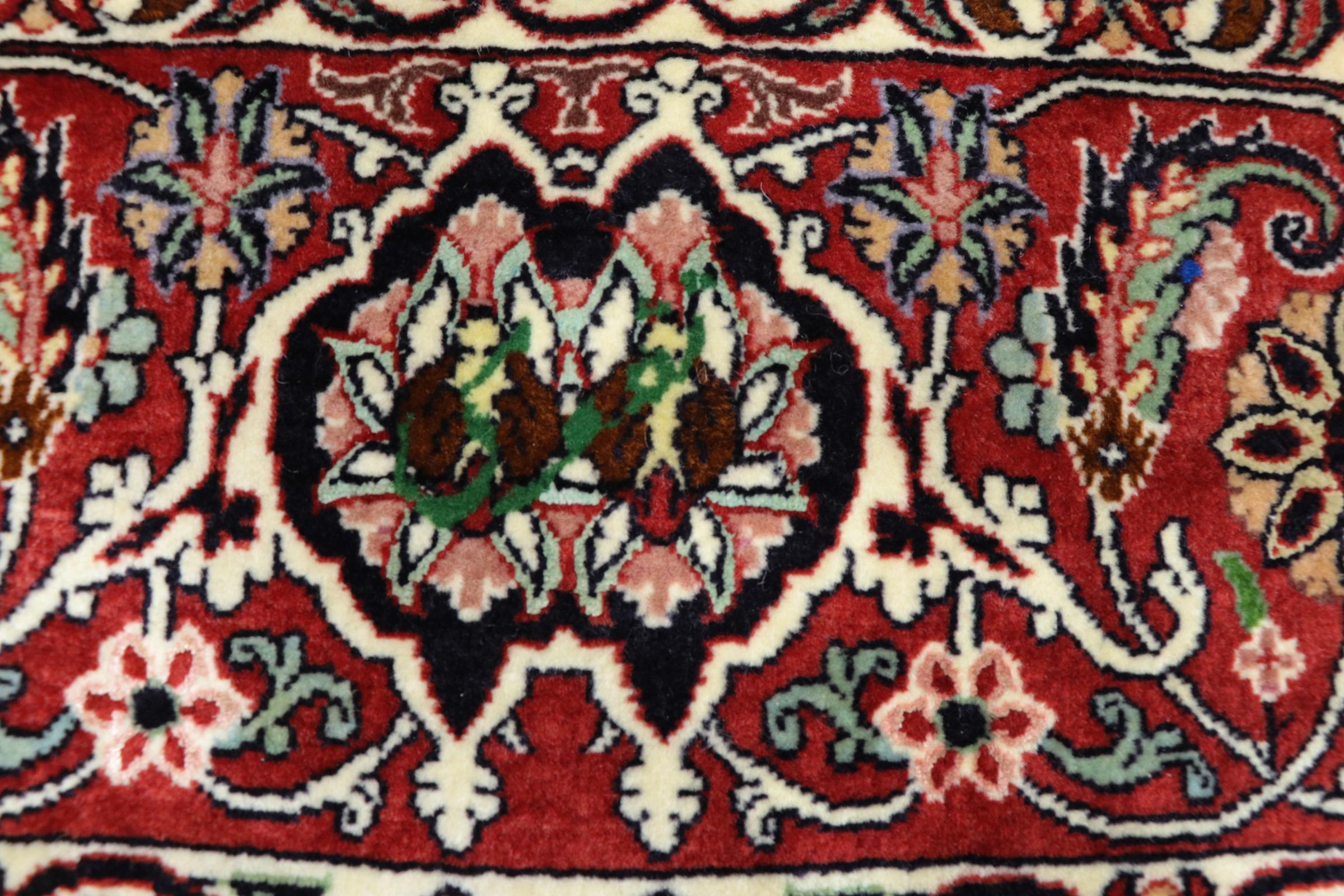 Dette persiske tæppe er håndknyttet i en lille kurdisk by i det vestlige Iran. Bidjar-tæppet står for enestående kvalitet. Den faste luv er kendetegnet ved sin kompakthed og dermed modstandsdygtighed over for slid. Ulden er presset så tæt sammen med en kam, at luven står næsten lodret opad. Det betyder, at grovere smudspartikler næsten ikke har en chance for at trænge igennem.