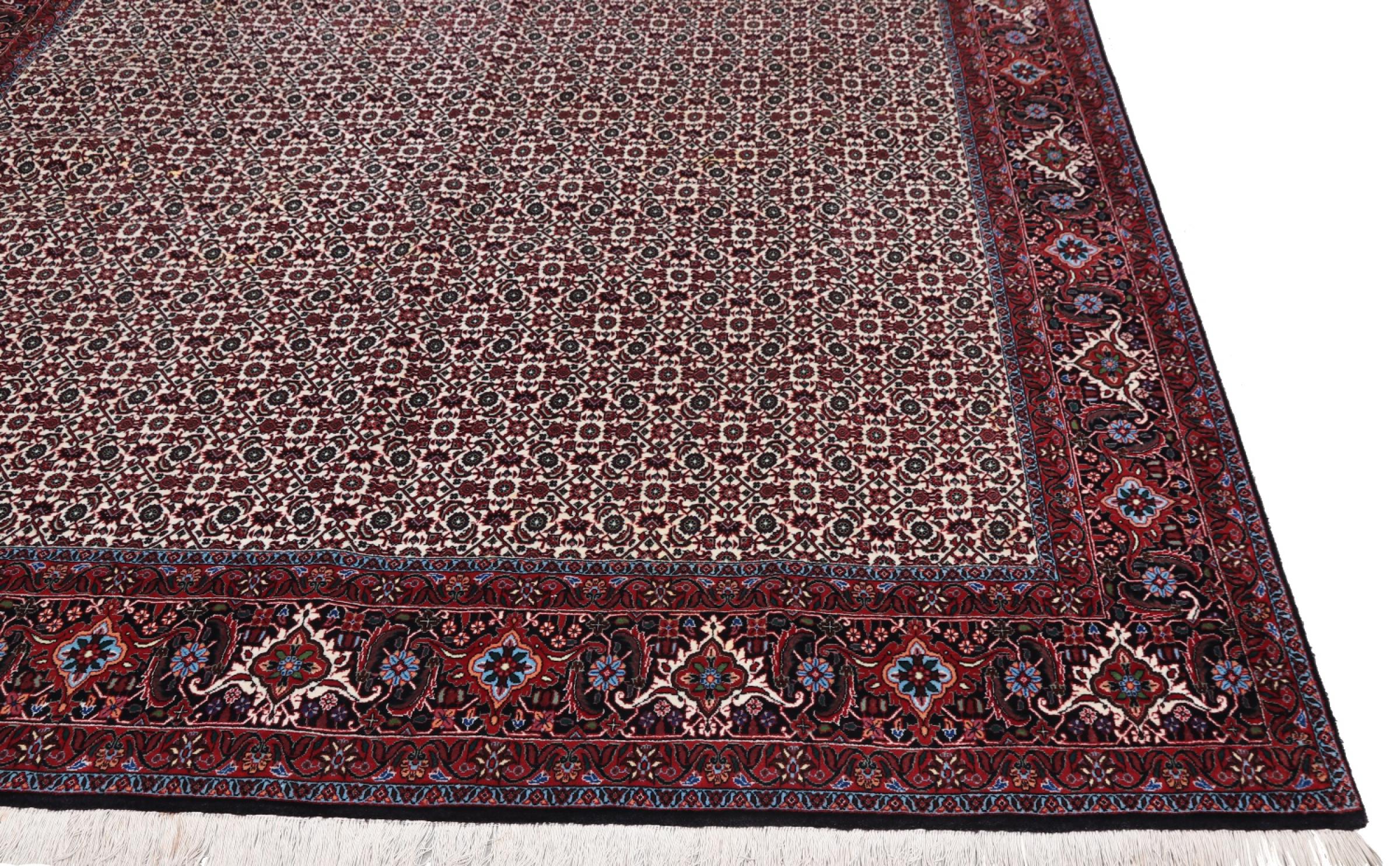 Dette persiske tæppe er håndknyttet i en lille kurdisk by i det vestlige Iran. Bidjar-tæppet står for enestående kvalitet. Den faste luv er kendetegnet ved sin kompakthed og dermed modstandsdygtighed over for slid. Ulden er presset så tæt sammen med en kam, at luven står næsten lodret opad. Det betyder, at grovere smudspartikler næsten ikke har en chance for at trænge igennem.