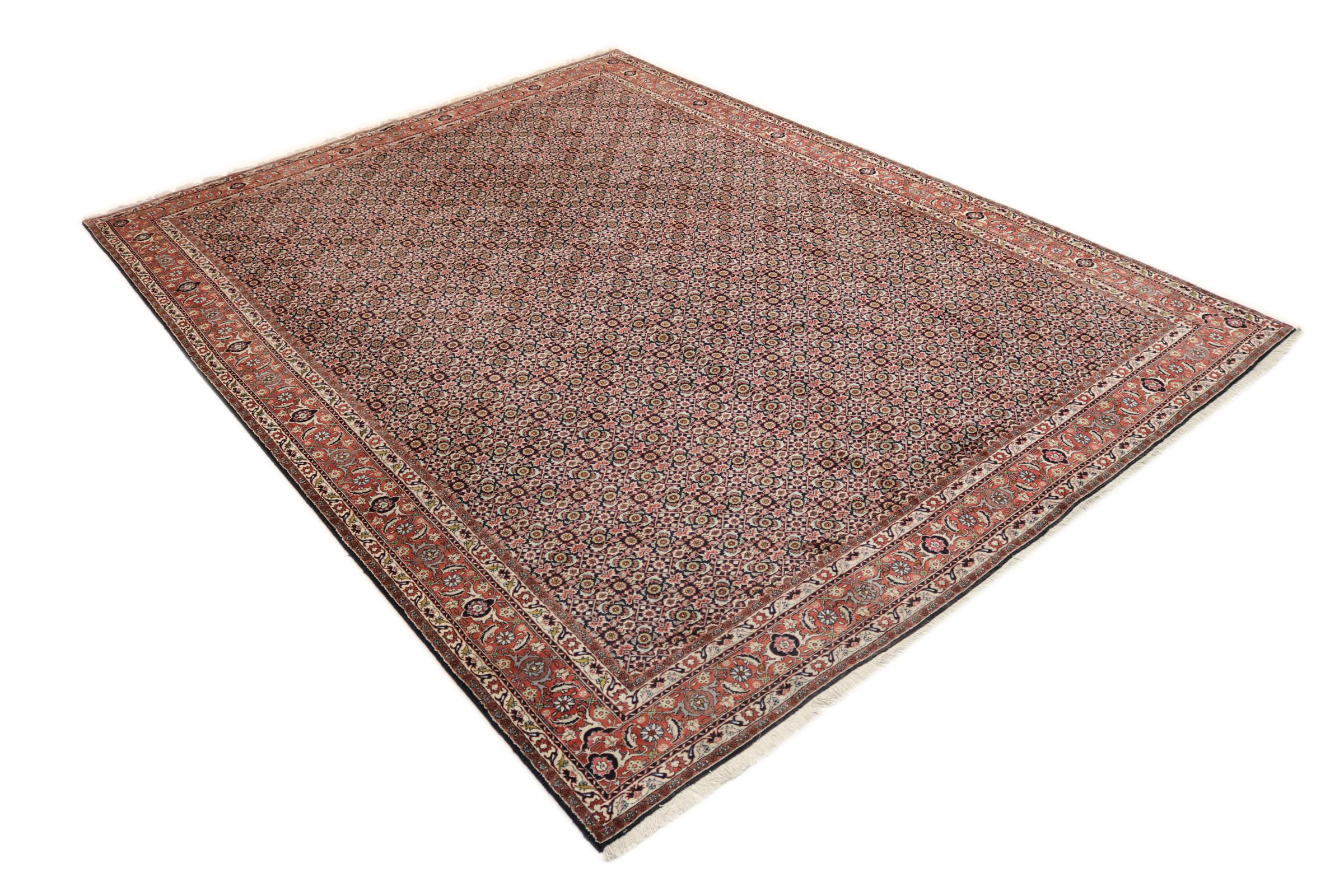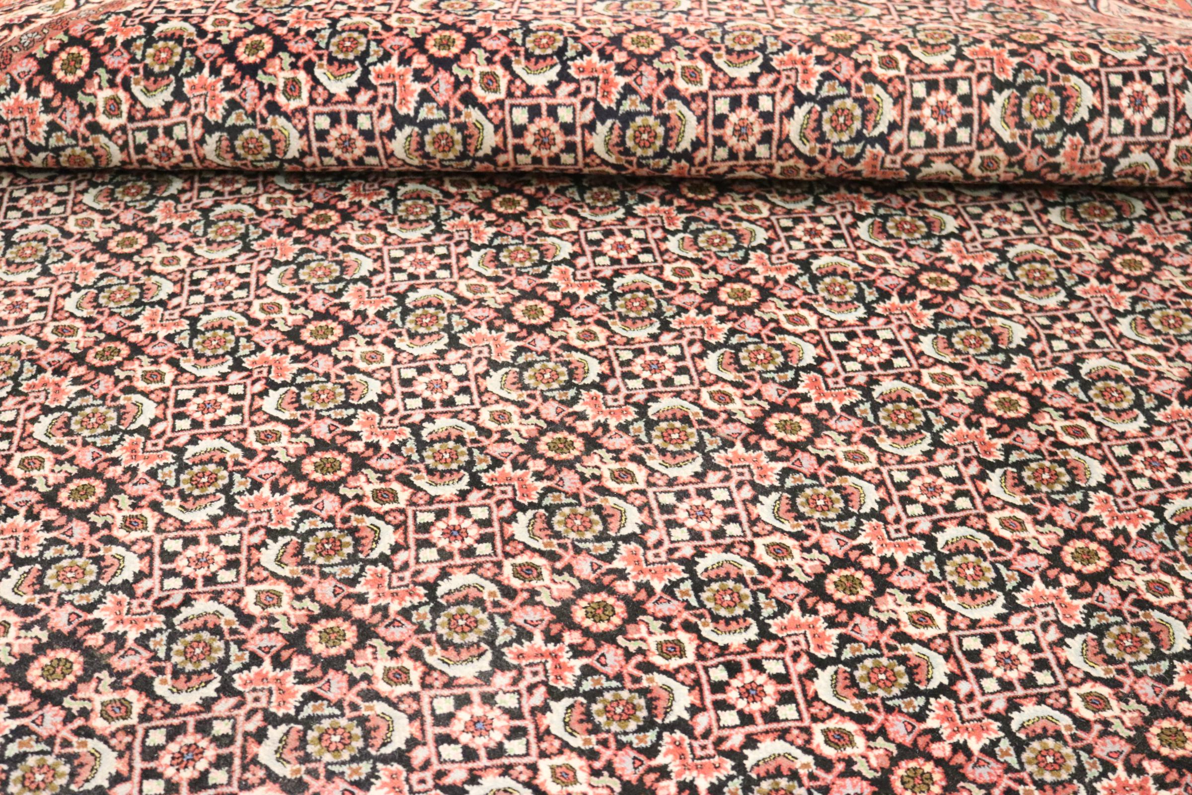 Dette persiske tæppe er håndknyttet i en lille kurdisk by i det vestlige Iran. Bidjar-tæppet står for enestående kvalitet. Den faste luv er kendetegnet ved sin kompakthed og dermed modstandsdygtighed over for slid. Ulden er presset så tæt sammen med en kam, at luven står næsten lodret opad. Det betyder, at grovere smudspartikler næsten ikke har en chance for at trænge igennem.