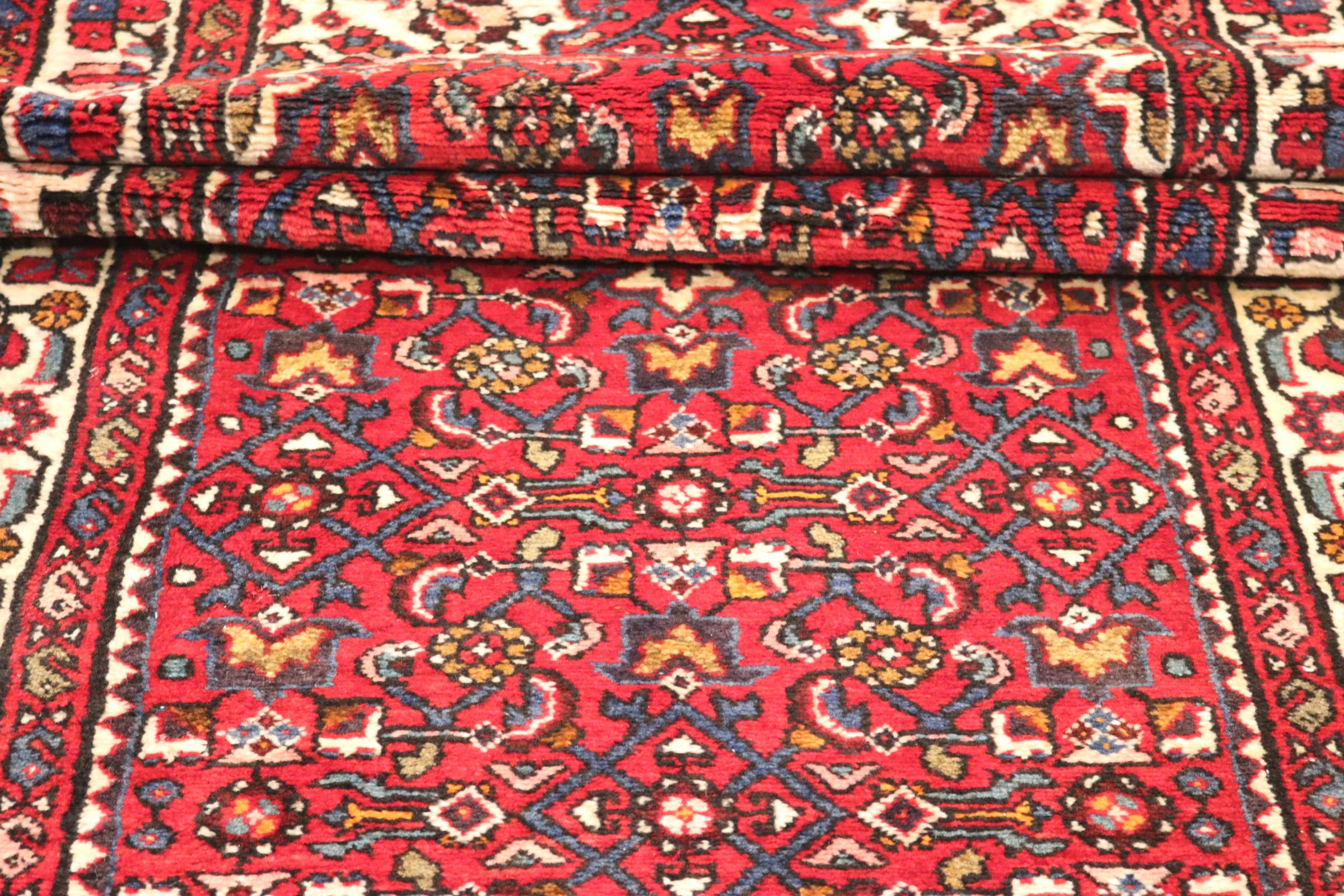 Dette Hamadan-tæppe er ikke efterspurgt i nye indretningskoncepter for ingenting. Det kombinerer en uovertruffen pris med exceptionel kvalitet. På grund af de stærke garner, der bruges i produktionen af Hamadan-tæpper, er dette persiske tæppe særligt holdbart. Det er håndknyttet i byen Hamadan. De ofte geometriske mønstre og ornamenter er tidløse og derfor ekstremt populære i skandinavisk interiør. De dristige farver bringer hygge og varme til dit rum.